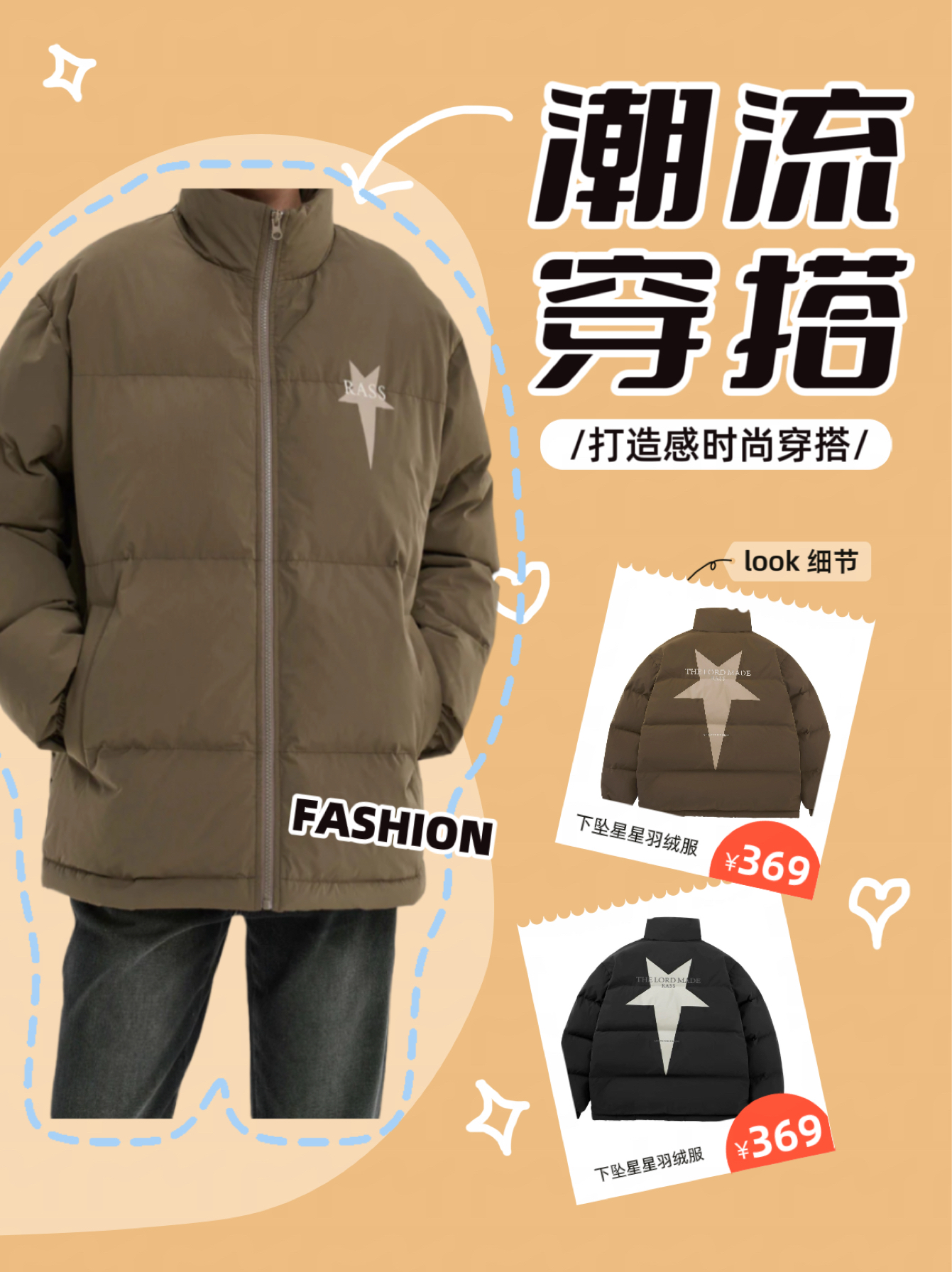 冬季来临,又到了羽绒服的主场。对于男生来说,美式和复古风格的羽绒服是不错的选择,它们既时尚又实用。下面就为大家推荐几款搭配建议。 Rass 2022AW 下坠星星无帽立领羽绒服 RS22442 褐 这款羽绒服采用优质面料,手感柔软舒适,具有出色的保暖性能。下坠的星星设计增加了时尚感,无帽立领则更加利落。搭配一条牛仔裤和运动鞋,就能轻松展现美式风格。 UNKNOWTAL 特殊纹路PU皮棉服 UNK9...