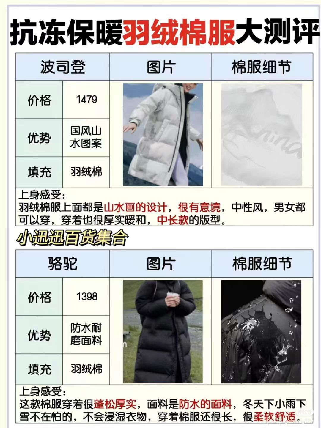 长款羽绒棉服测评来了!跟着这个选不踩。 是不是有很多很多宝子选羽绒棉服的时候都不知道怎么选? 首先一定要看好羽绒棉服的细节和自己的需求~不可盲目选择! 我总结了六款比较热门的长款羽绒棉服,穿着都很厚实保暖!大家 以参考入手~ 雅区黑金羽绒棉服 黑金保暖层!颜值很高,抗冻又好看!冬季必备~ <艾莱依羽绒棉服 立领保暖,防风抗冻,主要保护颈部~ 波司登羽绒棉服 国风设计,彰显文化,艺术气息满满~ 骆驼...