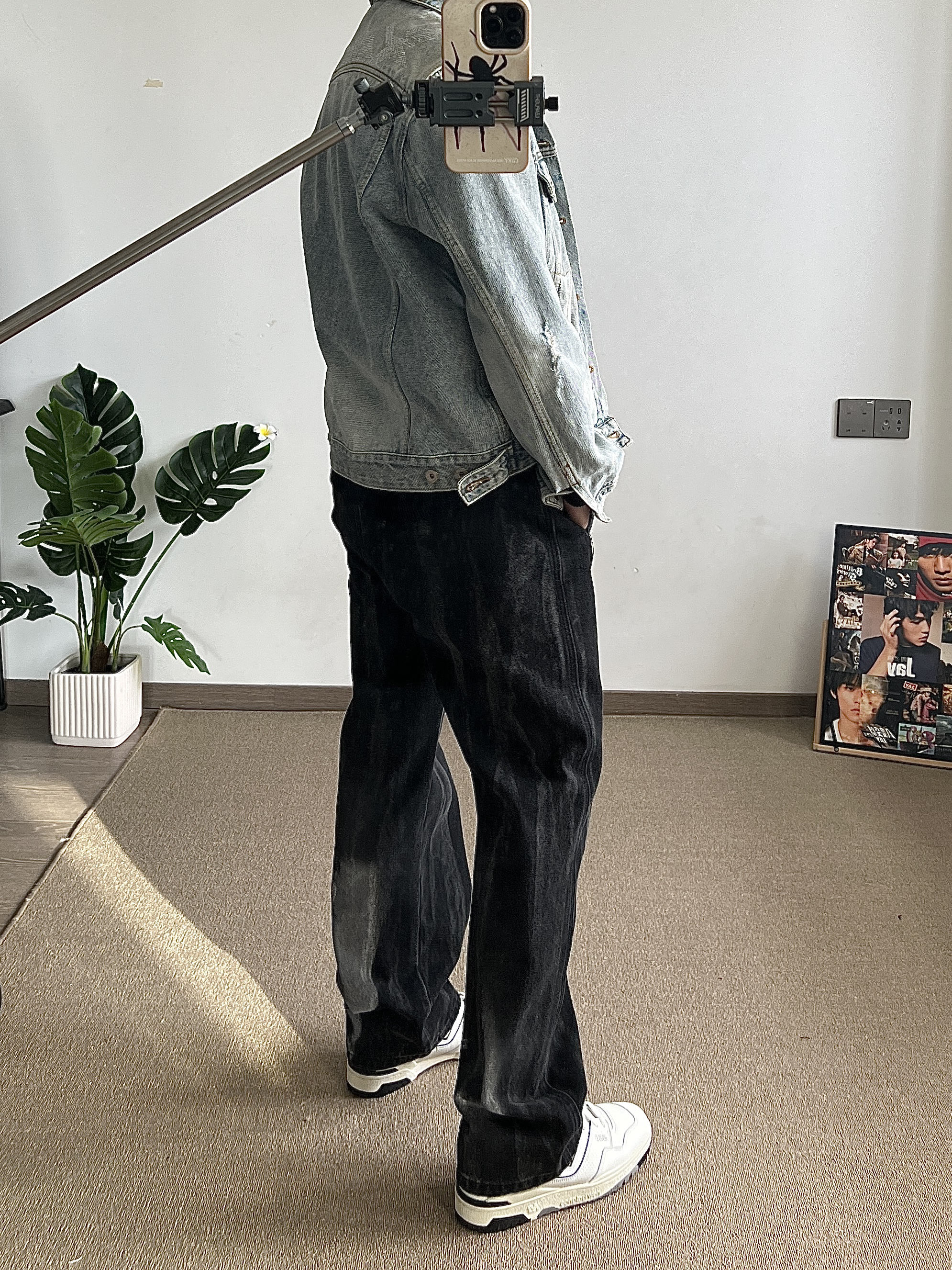 蓝牛仔夹克外套 水洗做旧牛仔裤 🍑🔗:CCCYH