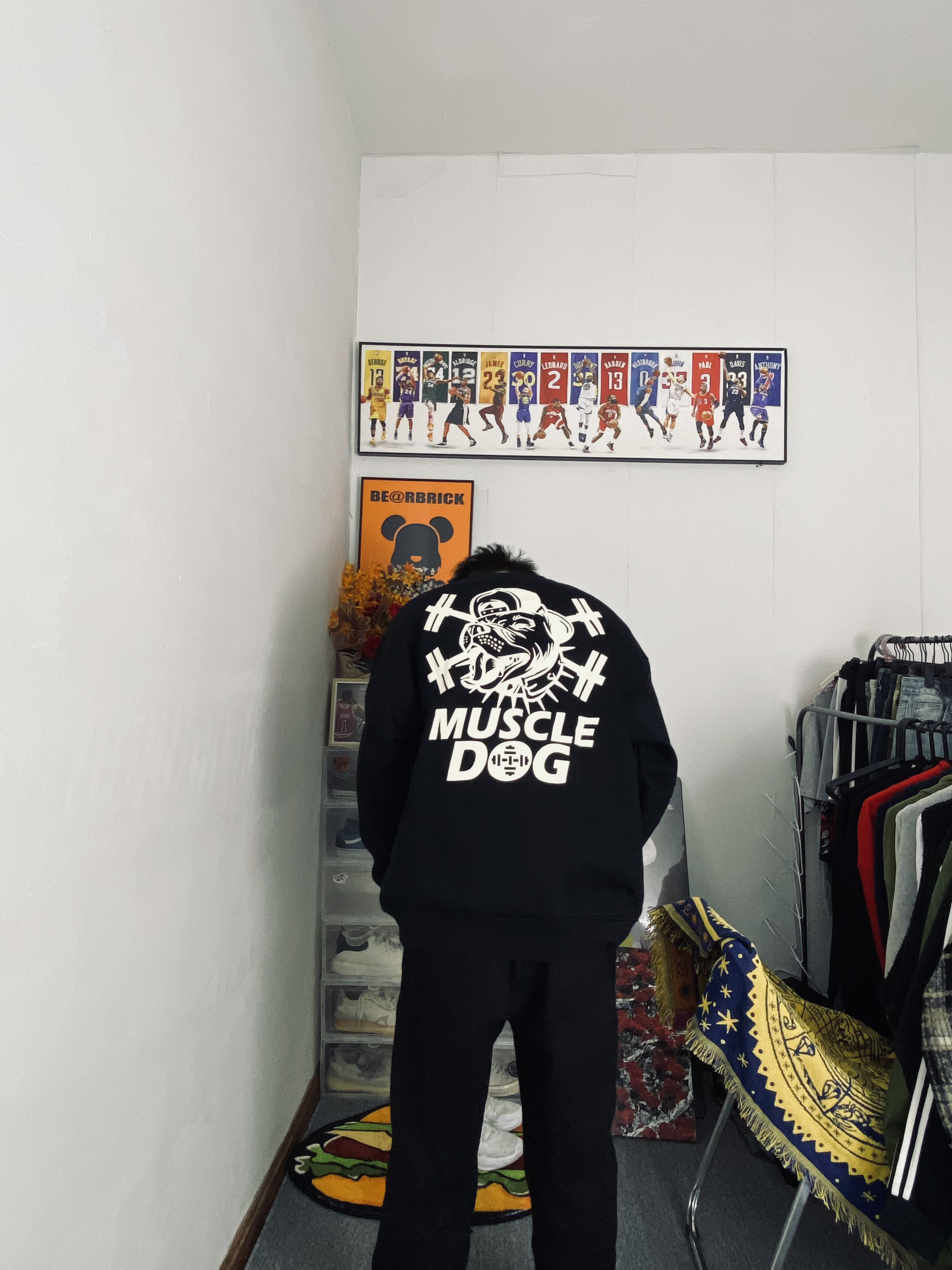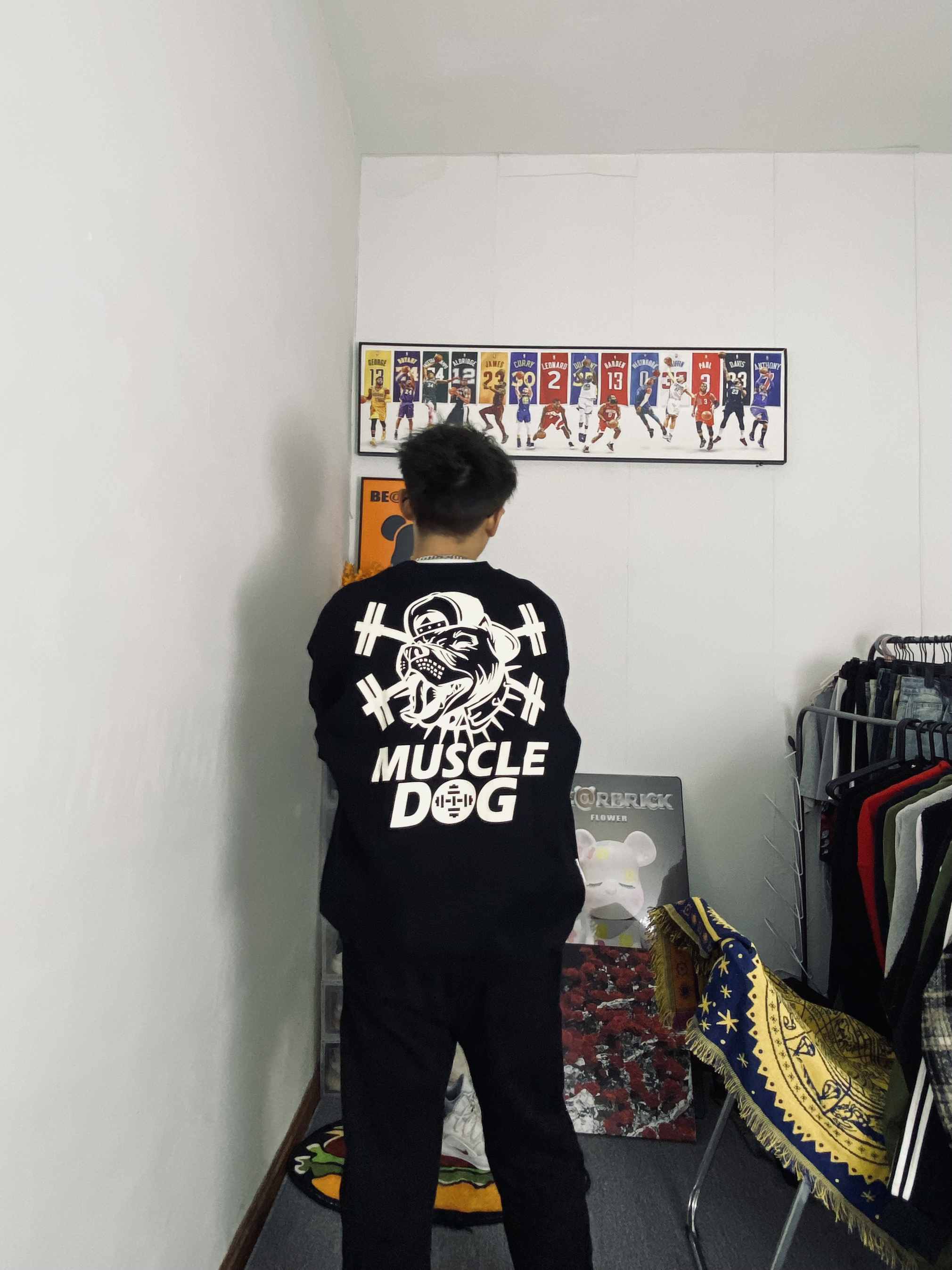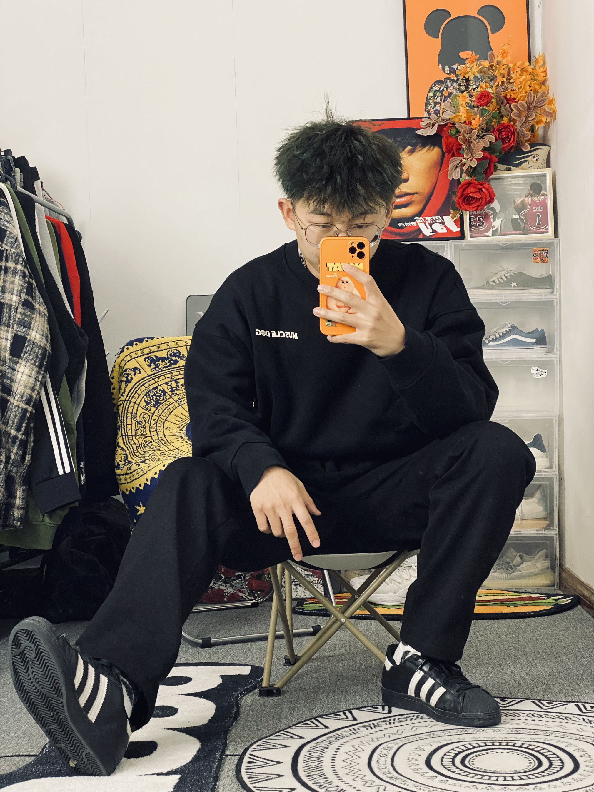 🌈今日冰美式穿搭 👔今天衣服上身的是一件黑色加绒保暖长袖冬日卫衣 我个人比较喜欢他叫背后的品牌印花logo好帅 衣服整体是偏宽松的里面有一层加绒增加保暖性 — 👖裤子的话就穿了一件黑色直筒裤 黑色比较百搭直筒裤的版型又能修饰我腿型 有时候不懂搭配我就一身黑🥹 身高/体重:178/130 👔xl