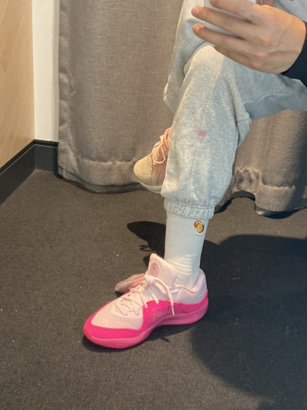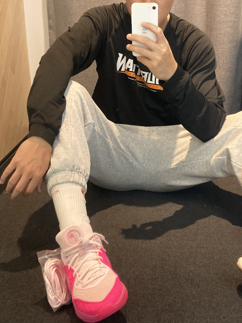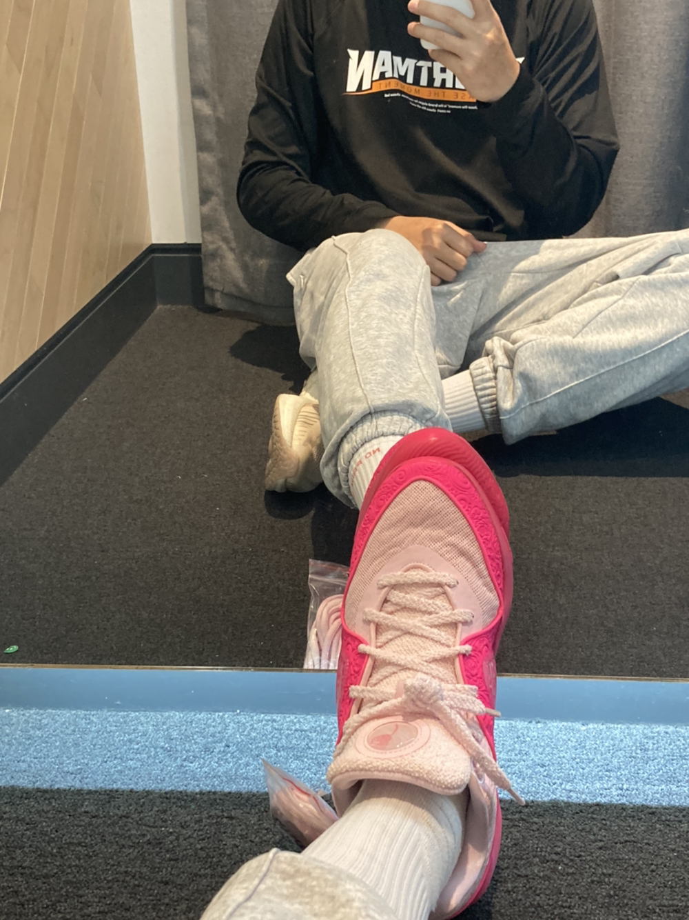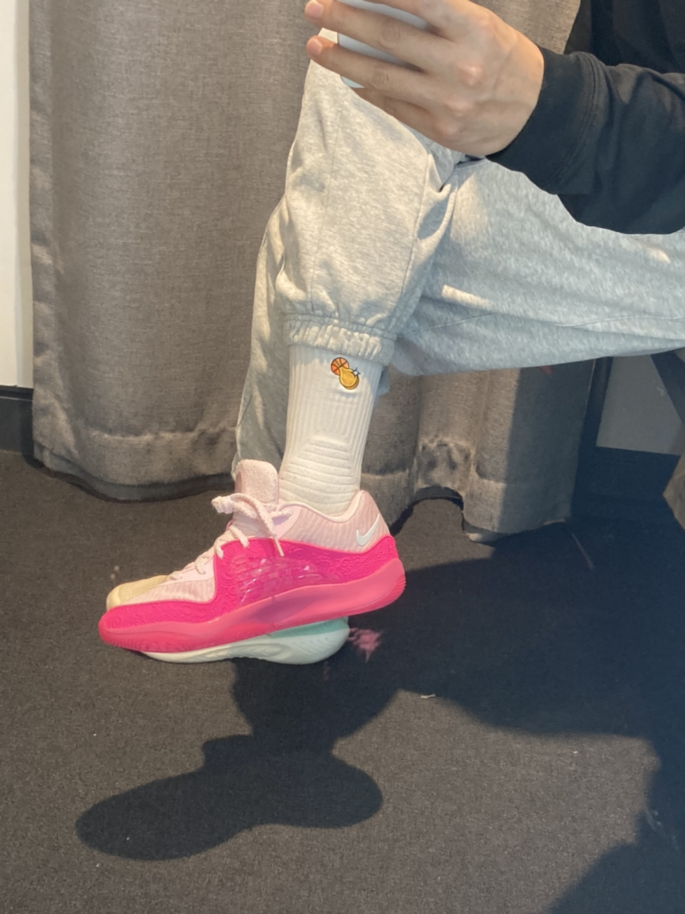 兄弟们kd16这次期中考试年级第一☝️ 我妈直接帮我拿下它 杜小帅的穿搭精髓我也已经掌握了 黑粉色yyds 搭配哥束脚运动裤码包工头气质出来了[大笑] 尺码何cut2一样兄弟们 骚粉色还是男生的最爱 脚感不错打爆校队没啥问题👌 训练卫衣是加厚的,适合秋冬穿保持身体热度