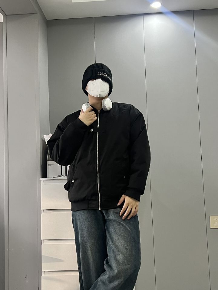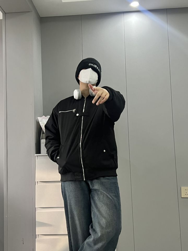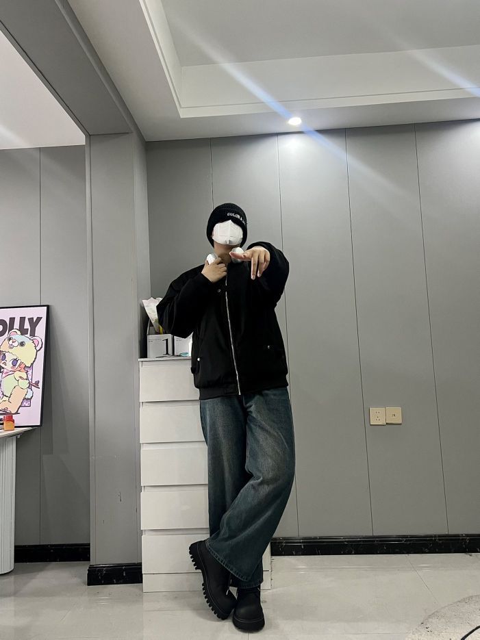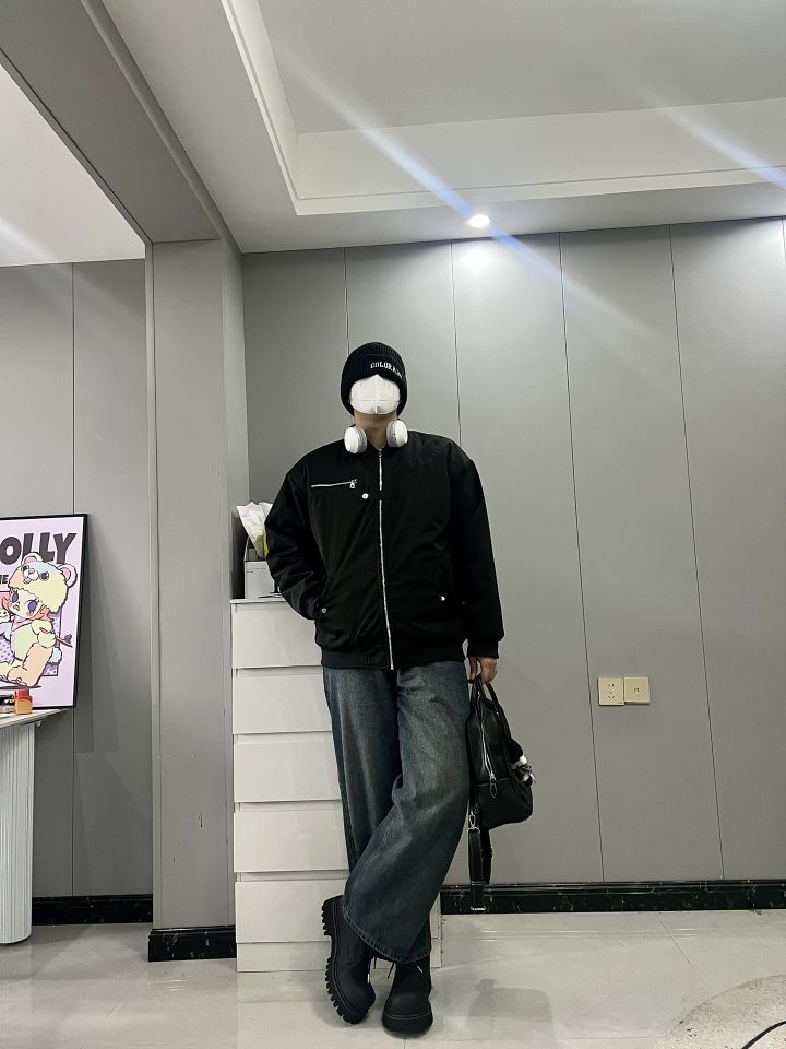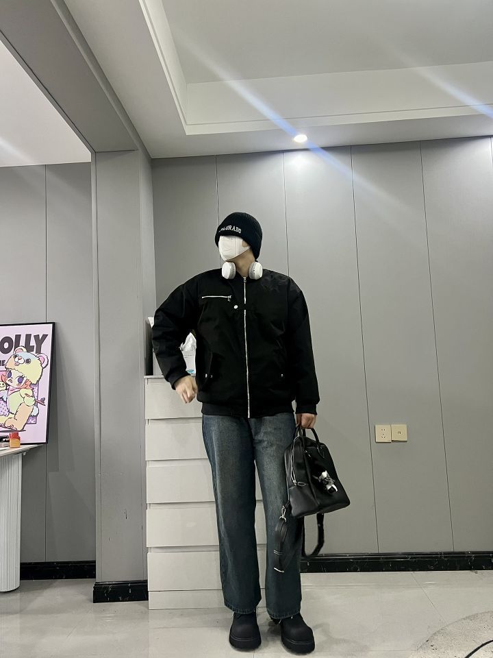 周末cleanfit简约干净出门!✨ 外套是dnnnnx家的飞行员棉服! 短款夹克的款式,Oversized版型!💫 细节处简约有型,黑色也十分干净! 胸口的纽扣设计是亮点,很潮流!👍 纯棉的面料秋冬穿也不会冷! 上身真的超帅,是我喜欢的cleanfit! 我183|80 穿2xl正好!☺️ - 下身搭配一条复古蓝色牛仔裤!👖 鞋子搭配HANQIAORIJI的厚底马丁靴! 周末就穿这一套出门,回头...