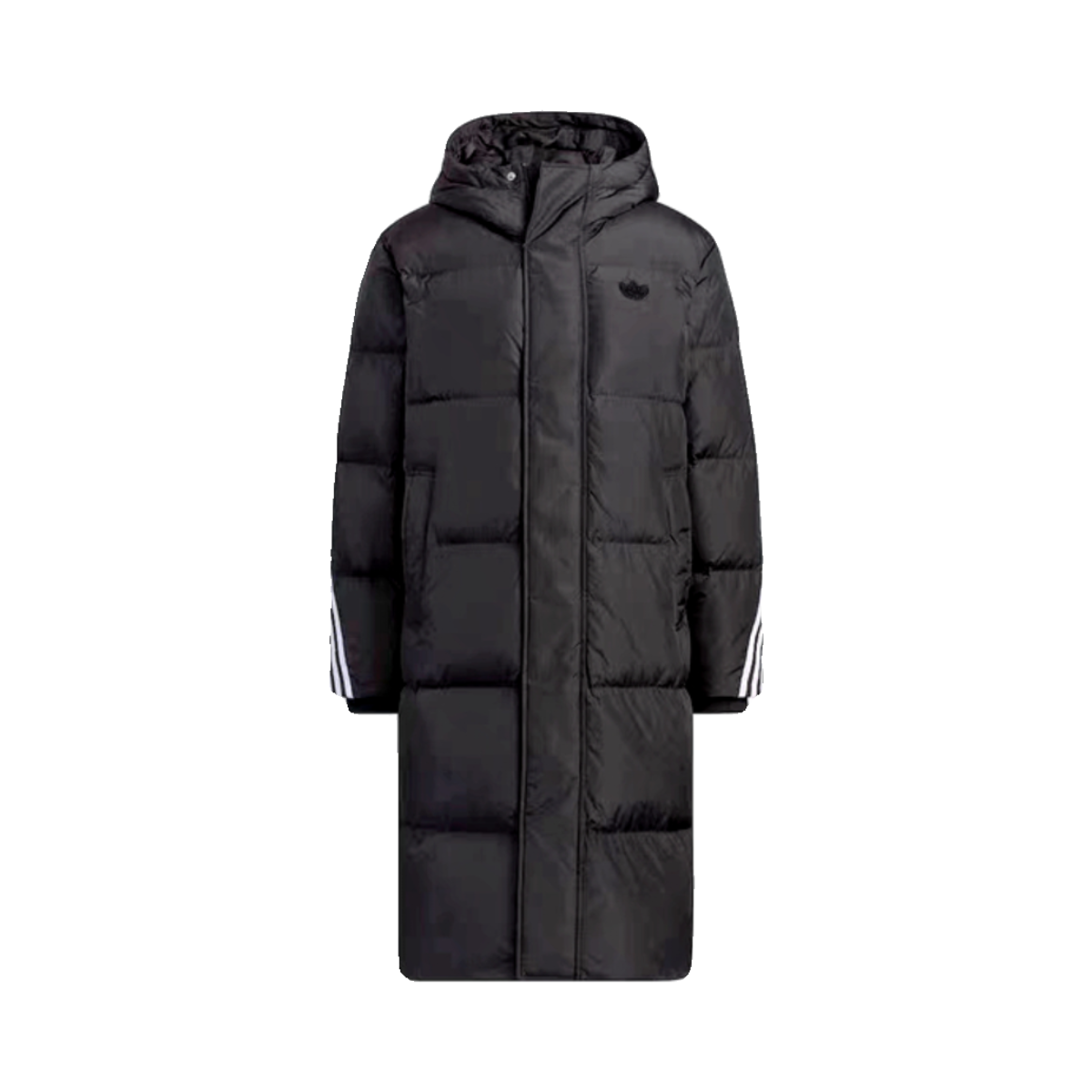 LONG DOWN JACKET 运动600蓬鸭绒羽绒服含再生和可再生材质的羽绒夹克外套 这款adidas夹克外套,以数十年的传统积淀为灵感。沿袭经典羽绒款式,含加衬绗缝、拉链口袋和拉绳下摆。缀标志性三条纹和运动风按扣,助你轻松打造摩登潮酷造型。 含再生和可再生材质混纺面料。 • 常规版型 • 全按扣连帽 • 再生聚酯纤维 • 填充物:鸭绒;绒子含量:80% • 拉链口袋 • 弹力袖口 PUFFY...