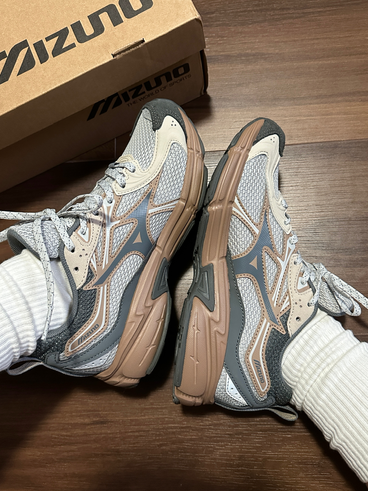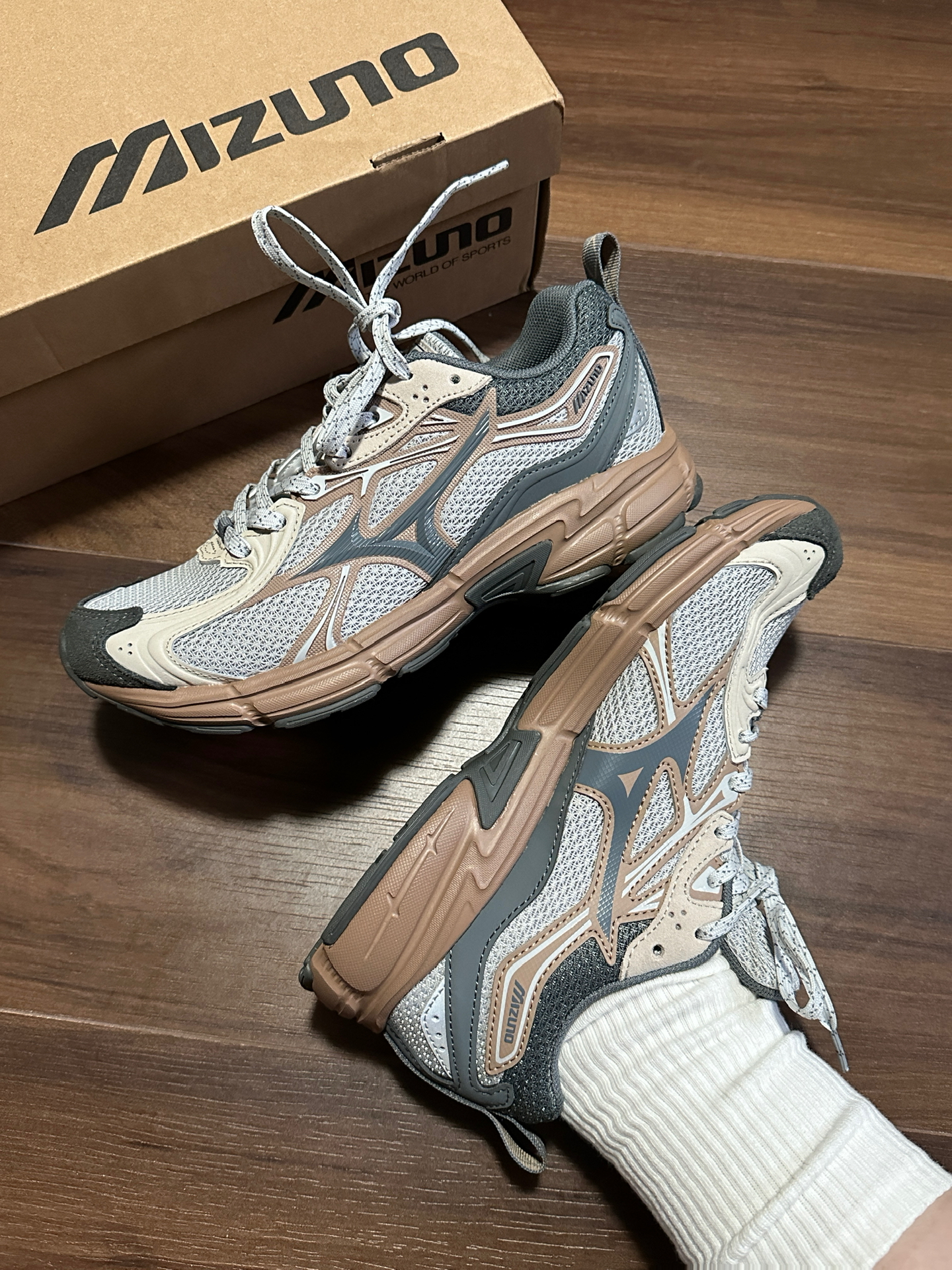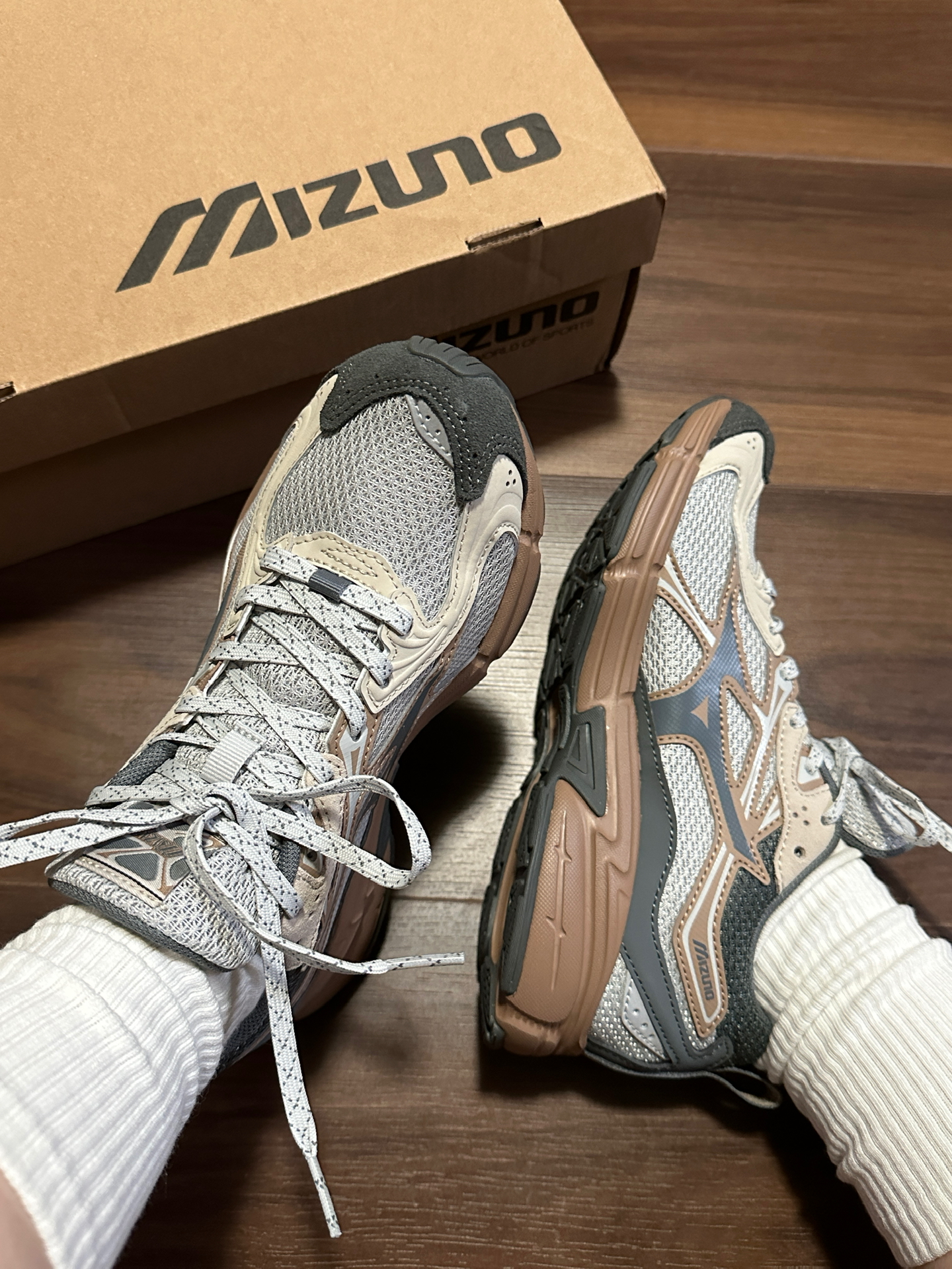美津浓的复古慢跑鞋一直是我的爱!鞋型挺好的,还是比较洋气,穿起来可日系可韩系,这次一眼就相中了新配色,“奶茶色🥤”中底是棕色🏾还是很独特的,绝对不会撞鞋哈~ 鞋子一如既往的轻便!网面材质透气性也不错😌个人觉得码子还挺正的,不偏码☺️ #Mizuno #全款拿下这双鞋 #新品跑鞋我来评 #圣诞出街穿这双 #心动跑步鞋 #双旦礼物选哪双