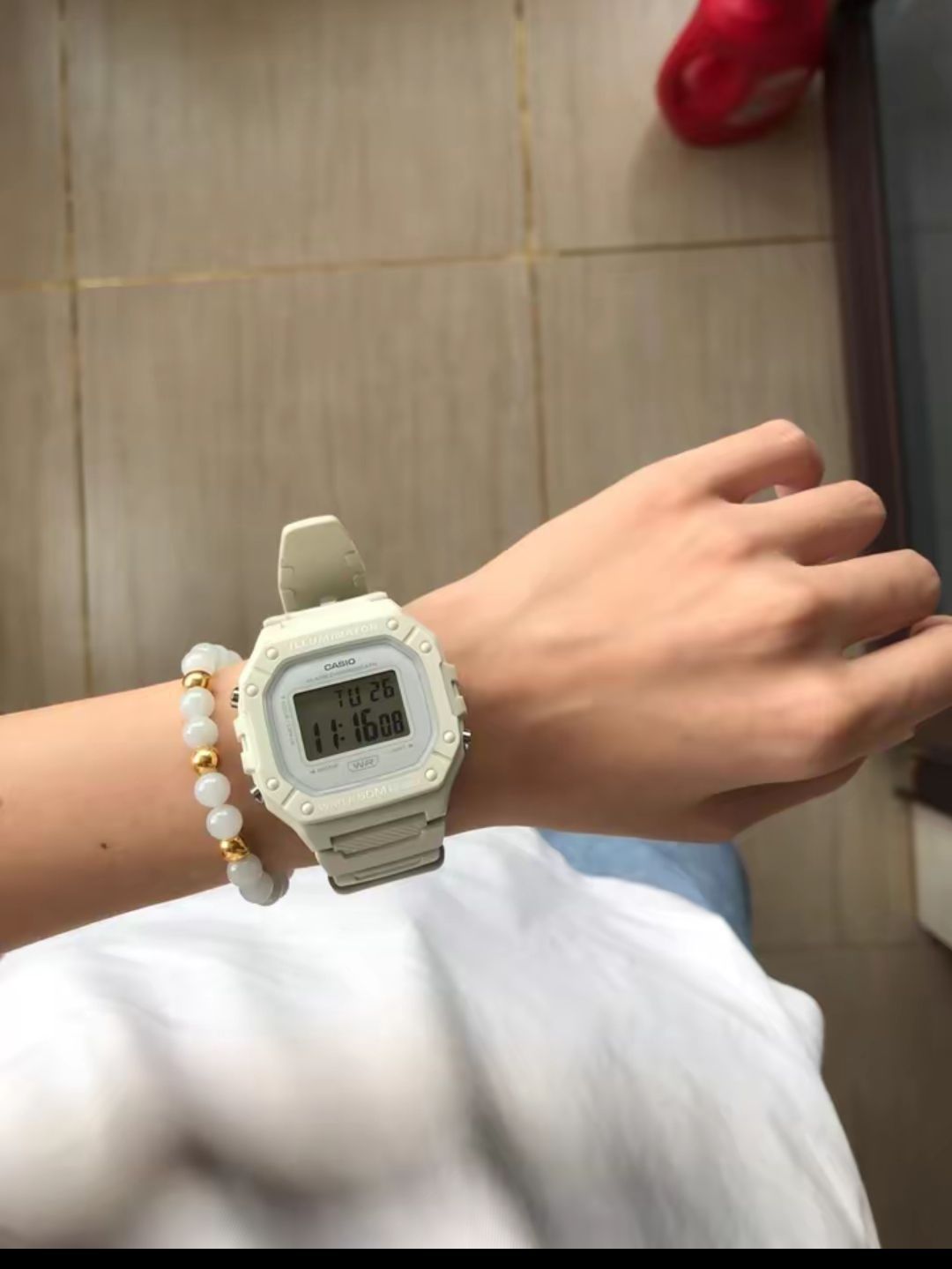 本篇笔记关联了Casio/卡西欧 DIGITAL系列 树脂表带时尚潮流运动数显防水小方块石英女士手表 米色 W-218HC-8AV等商品,为用户提供真实的使用体验和购买参考。