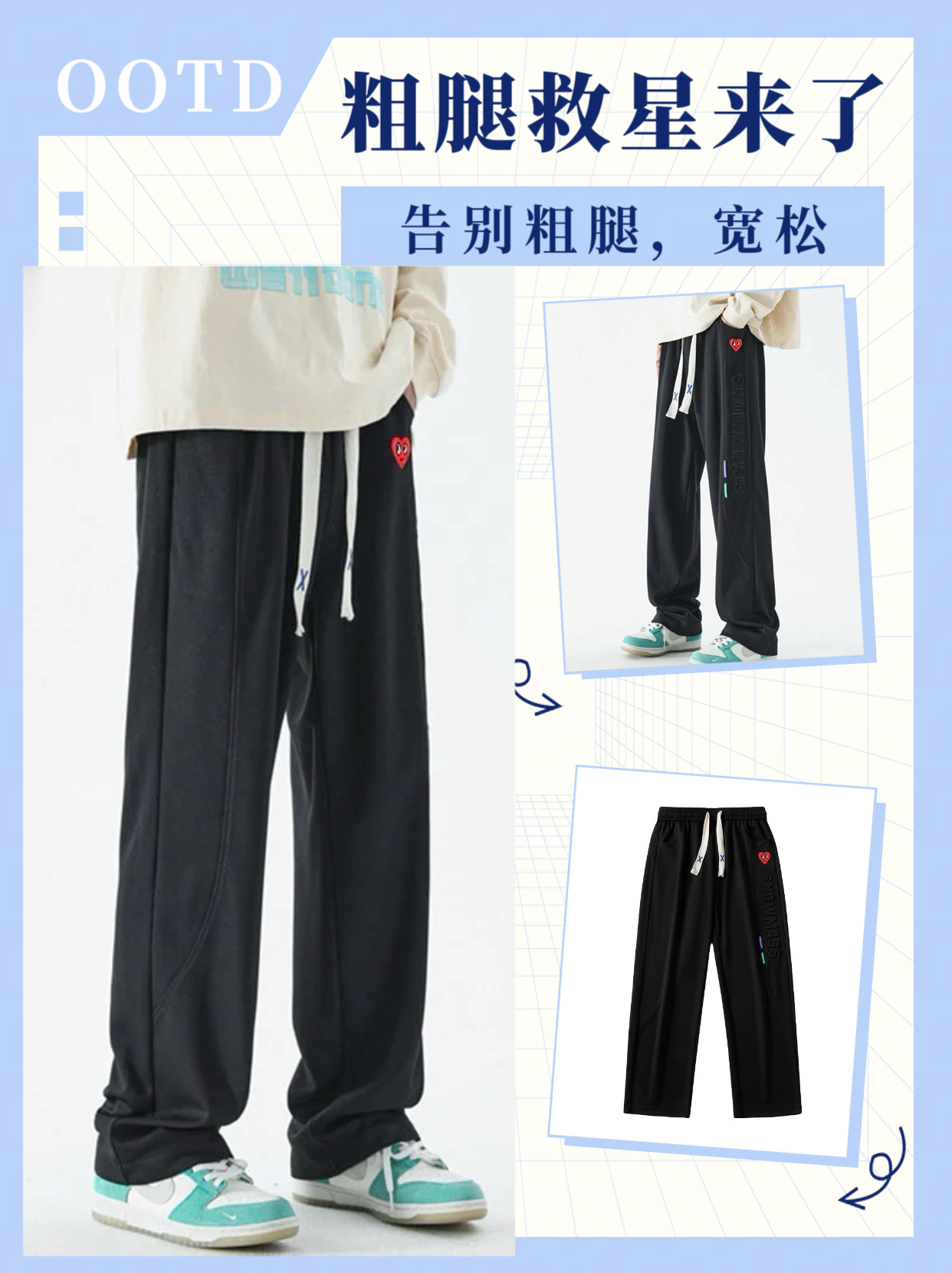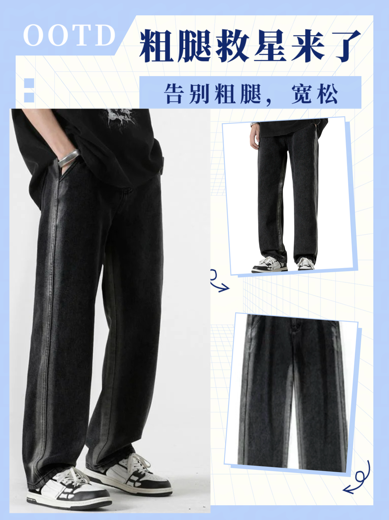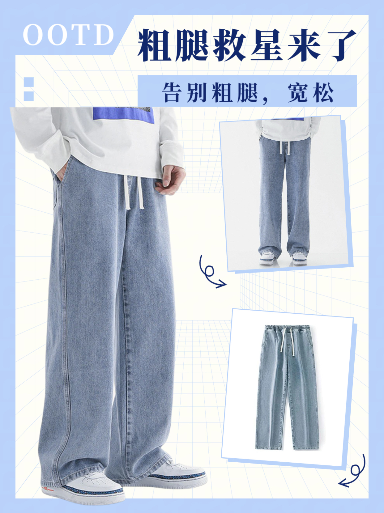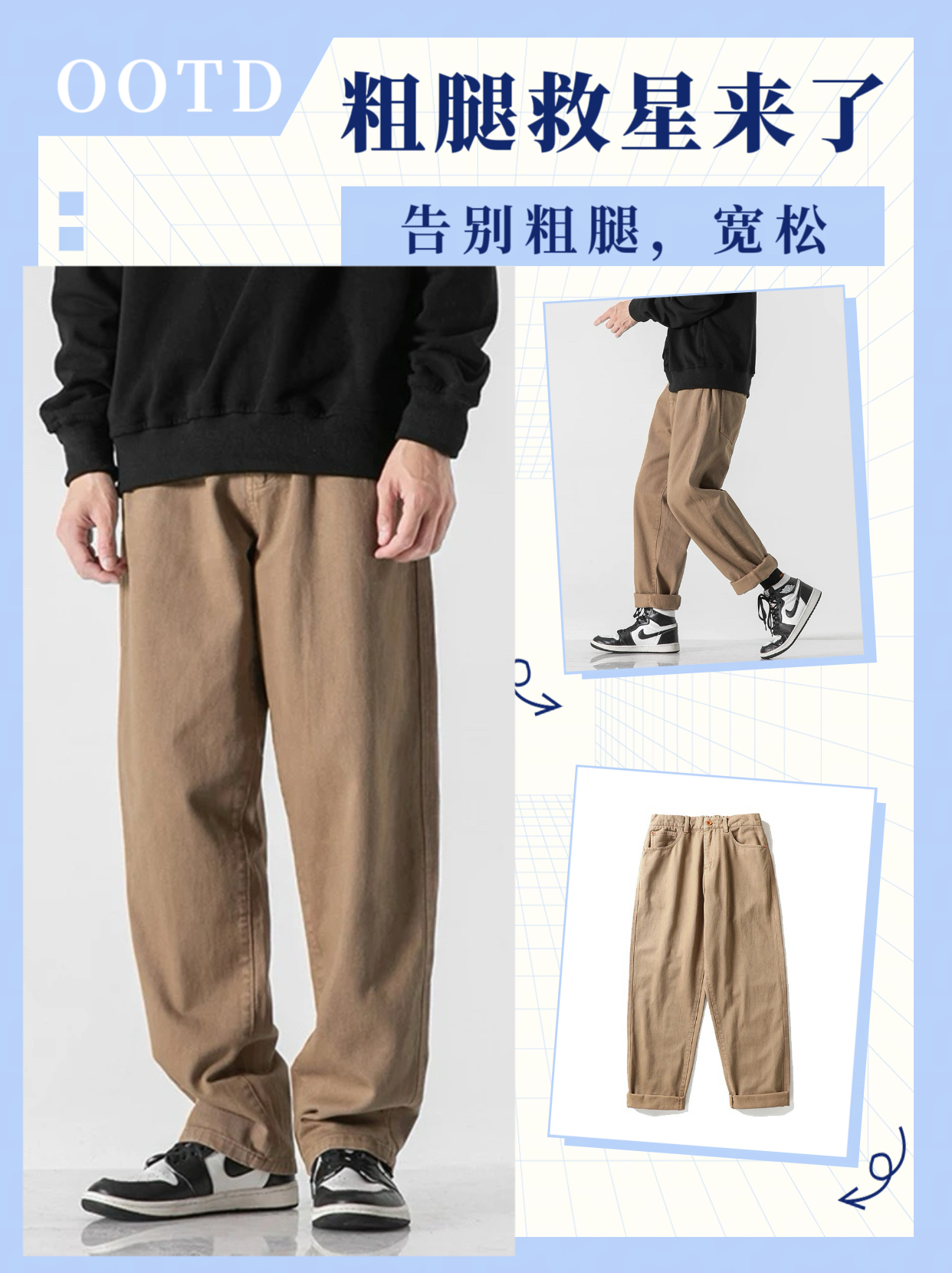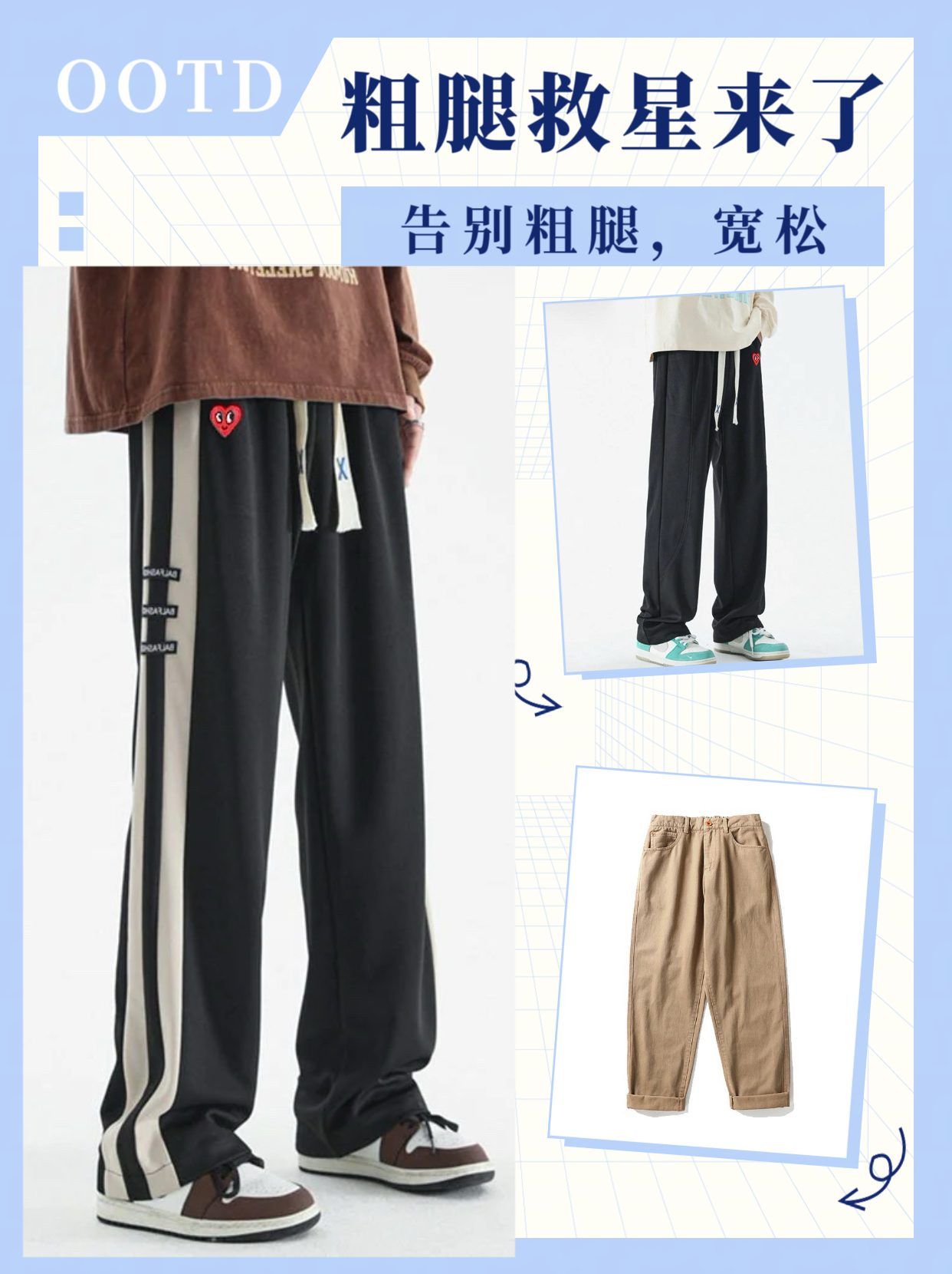 🌟哈喽,小哥哥们~ 双12来啦!今天分享一期粗腿救星的长裤合集,有牛仔裤、运动裤、休闲裤...等等,都是比较宽松的版型,不会紧紧地贴着大腿,穿上之后视觉效果超棒! 🌟VIISHOW的阔腿牛仔裤是我首先推荐的,它的裤管宽度适中,不会显得过于臃肿,浅蓝色非常清新,搭配毛衣、衬衫都很好看。而且还有抽绳设计,可以根据个人喜好调整腰围大小。 🌟另外,VIISHOW的阔腿运动裤也非常受欢迎,整体风格偏美式高街...