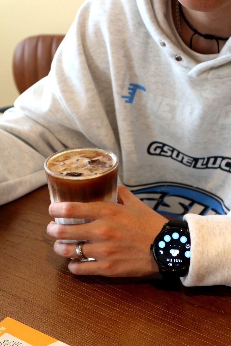 什么打工人周末还要在咖啡厅工作,真的服了 🔘上衣: #CHINISM 🌟这款智能手表陪伴了我很很久了,可以说是我工作的得力助手🥰因为它功能太强大了:支付、蓝牙、NFC、运动测心率、打电话几乎代替了日常手机的使用☑️续航能力也很不错,最重要的是它很好看,可以迎合各种商务工作场合,性价比很高🥰