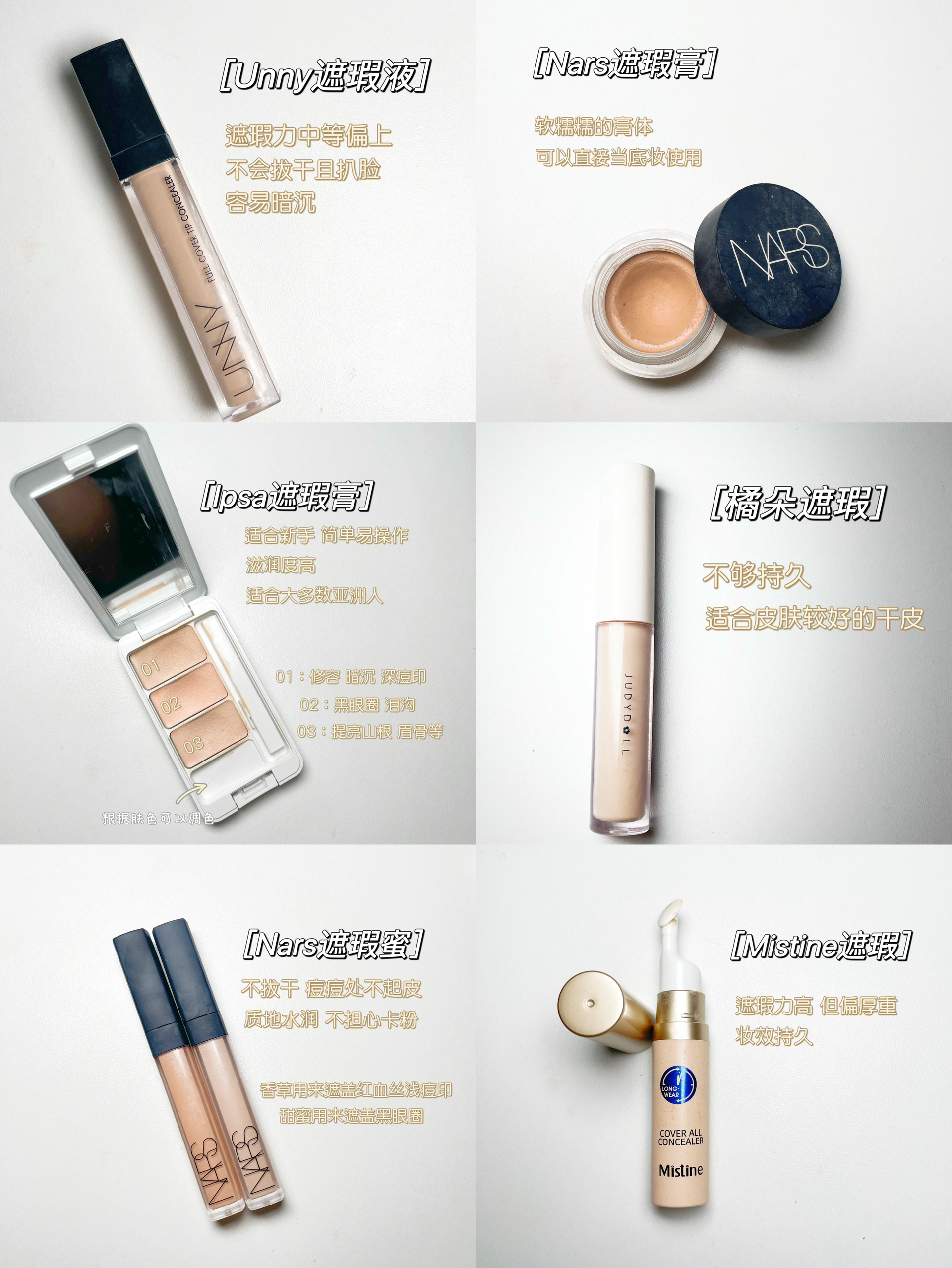 肤质:油痘肌 轻微敏感 泛红 😯痘痘肌的姐妹选遮瑕一定不要盲选遮瑕且控油的~因为长痘痘的时候痘痘表面很容易卡粉哦! 我平时上班来不及精致上妆的话就会只涂遮瑕出门~ 👾Unny遮瑕 这款真的褒贬不一耶,我觉得很好用啊,就是不拔干又扒脸,唯一的缺点就是暗沉了吧,在这个价位真的无法批评它了!听说新版在这方面有改进~会回购试试 👾Nars遮瑕膏 遮瑕效果很好~膏体很顺滑!深瑕疵用遮瑕刷点涂,大面积的话可以...