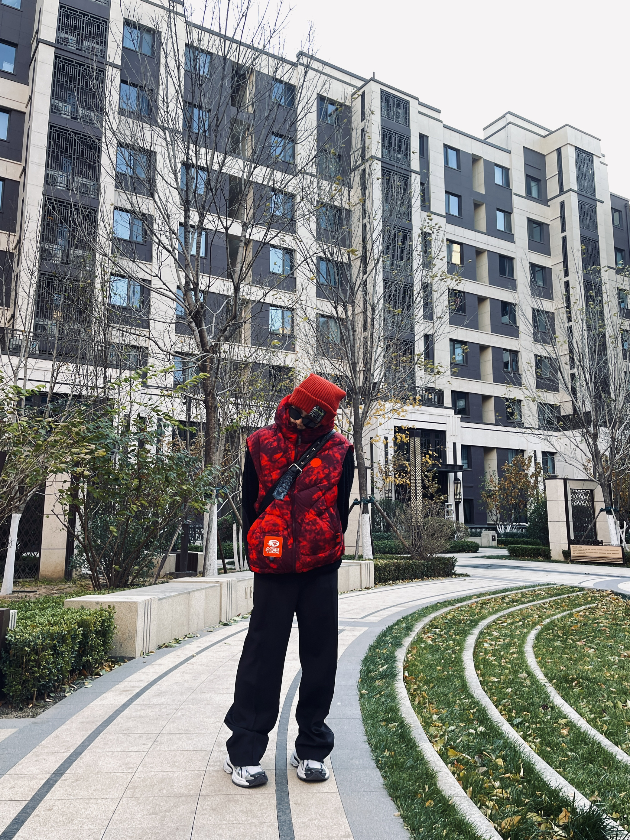 下雪了❄️雪地OOTD玩耍了❄️ AAPE的羽绒马甲是够大的,大到把人包住啦! Old Order涡轮鞋是更大的,大到不怕裤腿踩地了!
