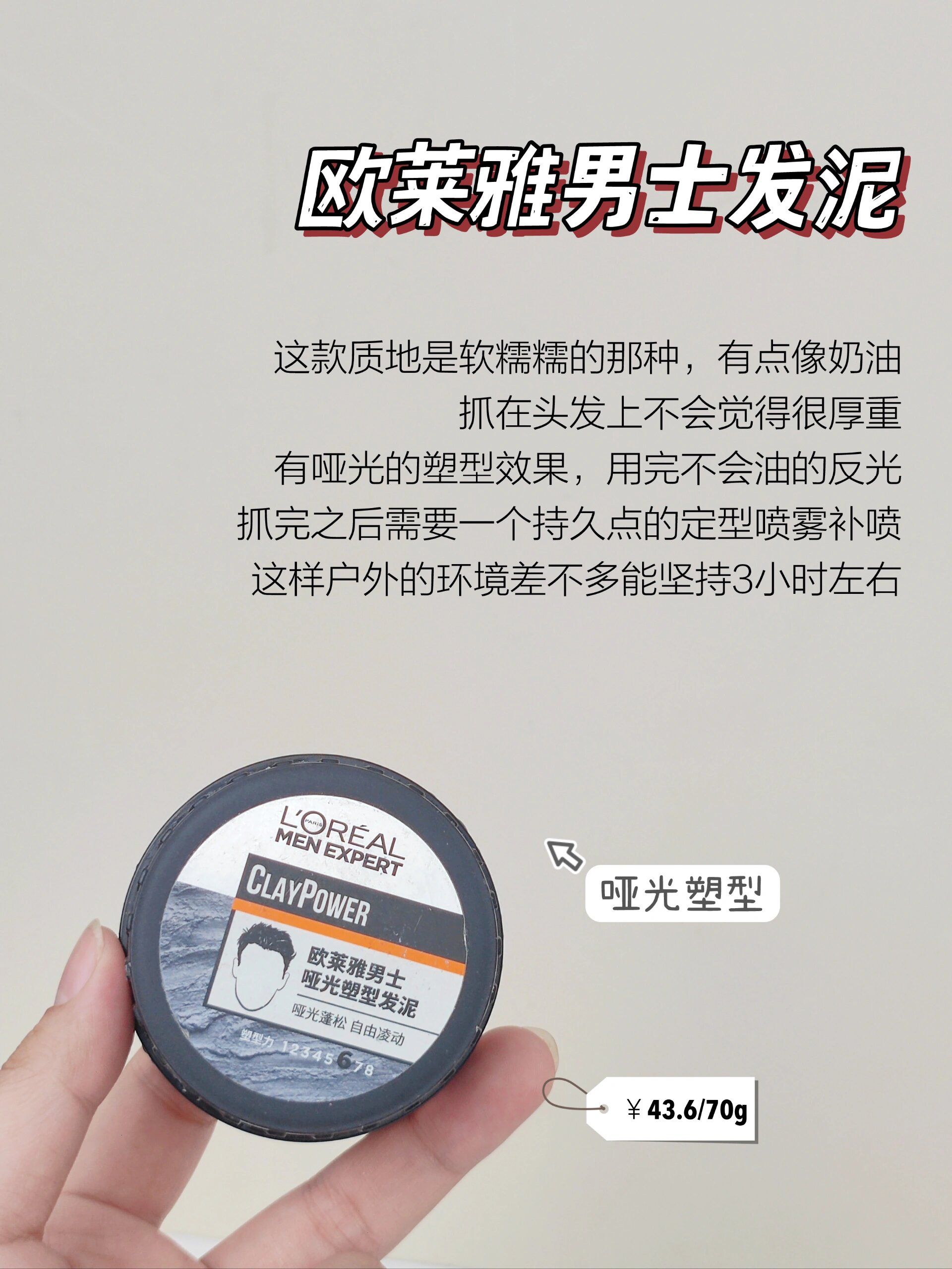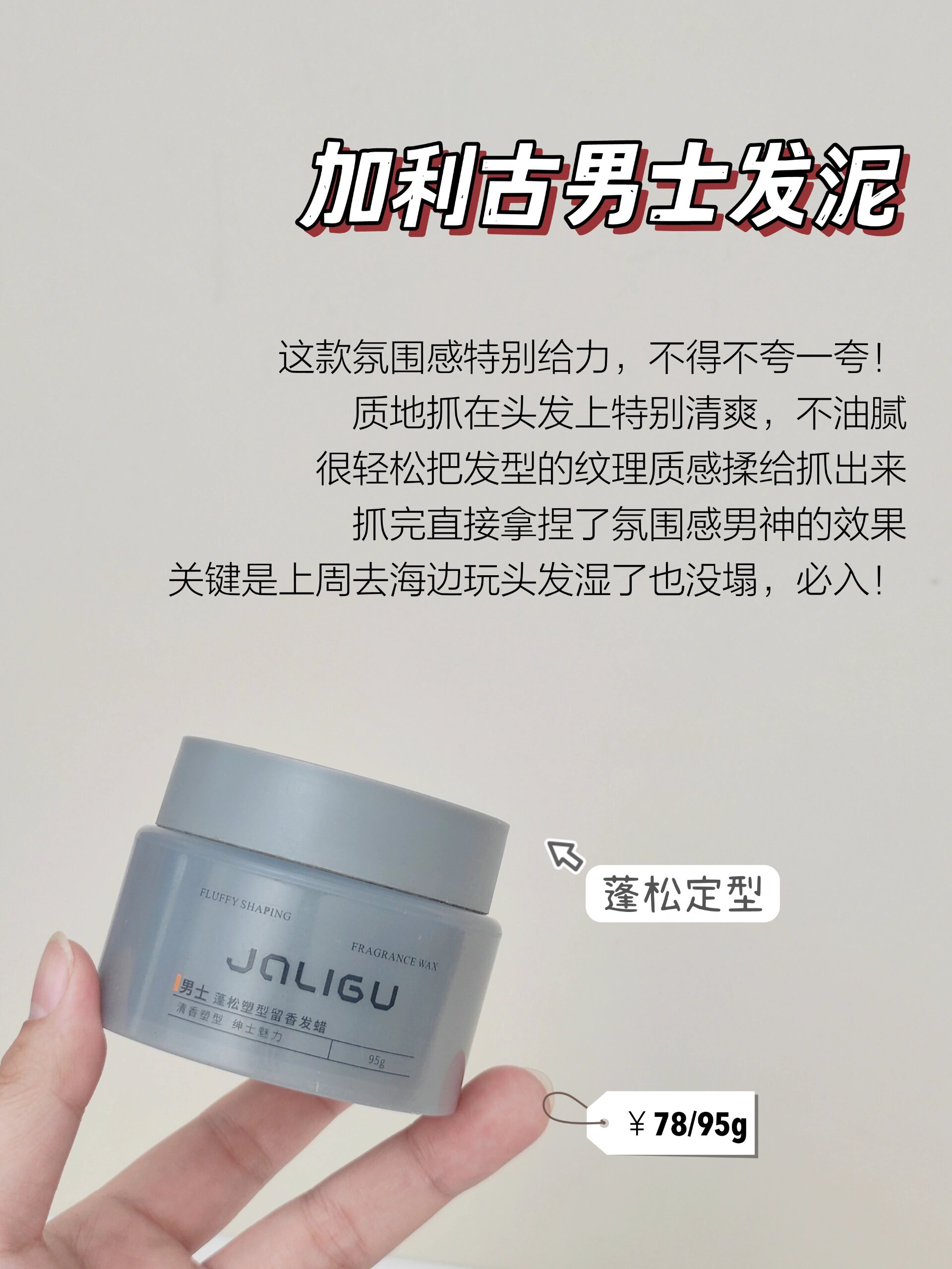 本篇笔记关联了【男士专用】L'OREAL/欧莱雅 塑性发蜡 清爽控型造型持久 哑光塑型、【男士专用】沙宣 质感蓬松款发蜡 自然持久定型 凌乱动感、丝蕴 持久定型发蜡 强力定型 持久定型发蜡等商品,为用户提供真实的使用体验和购买参考。