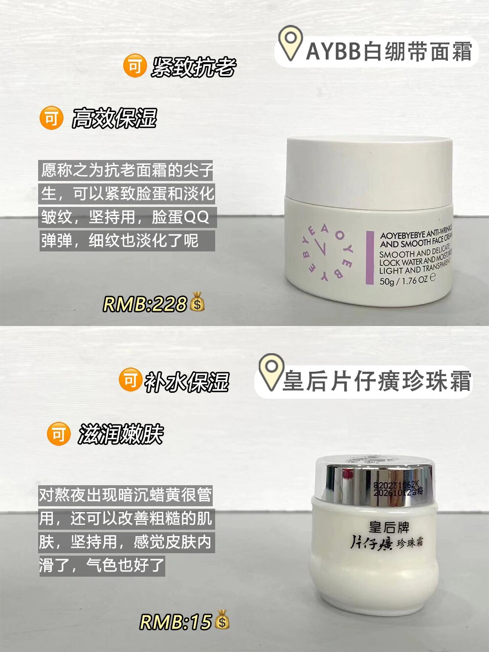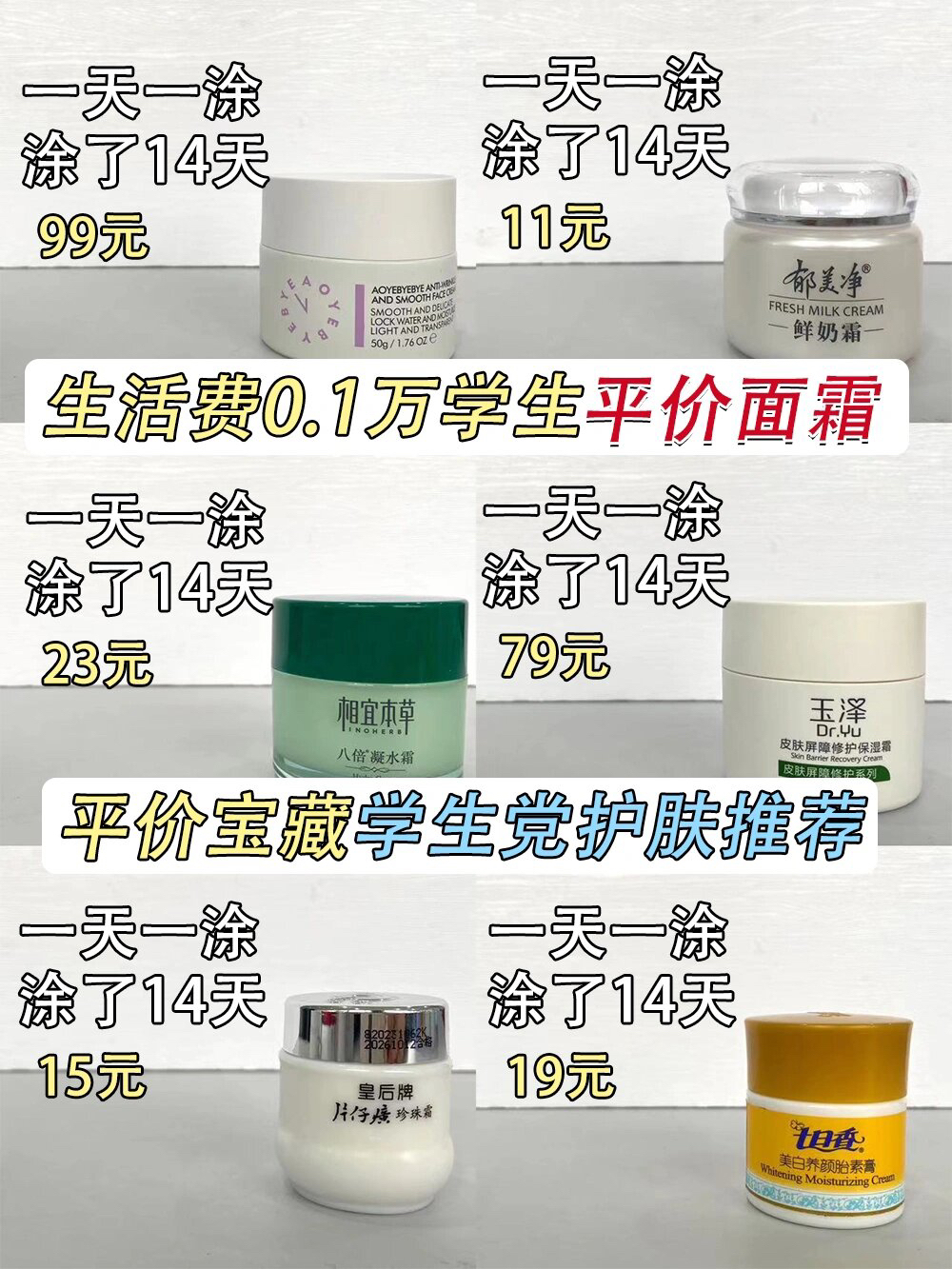 本人学生党就是又穷又爱护肤,说白了穷精致! 之前买护肤品花了我不少钱, 基本每个月最近几天都靠馒头维持。 近期的79事件,国货崛起, 也为我省下了不少钱! 自从我也把护肤品换成国货后, 生活费突然就充裕了起来。 而且你别看国货都很便宜, 但是效果老好了, 换了便宜护肤品之后后我的皮肤反而更好了, 今天就分享一下目前在用的国货面霜, 大家有需要的码住!!! . 1.AYBB白绷带面霜 2.玉泽修复保...