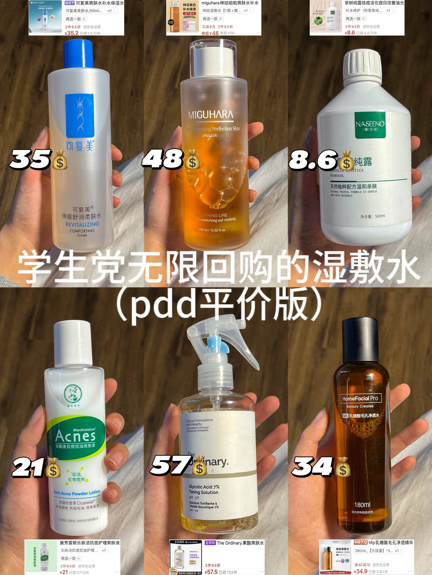 选好用的爽肤水总是跟风可是不行的哦! 今天给大家盘点了几款报恩湿敷水 每一款的功效都不一样 大家理性种草哦~[吐舌头H][吐舌头H] —— 1.Ve湿敷水:这款水也不知道用了什么黑科技,脸上能插秧的毛孔都能给敷没了 2.茵芙莎流金水:这款水的质地很清爽,它能给肌肤补充水分,经常敷,皮肤还能提亮一个度 3.HFP果酸水:它的多酸水,在清洁肌肤这方面还是有一套的,皮肤敏感的需要建立耐受后使用 4.肌活...