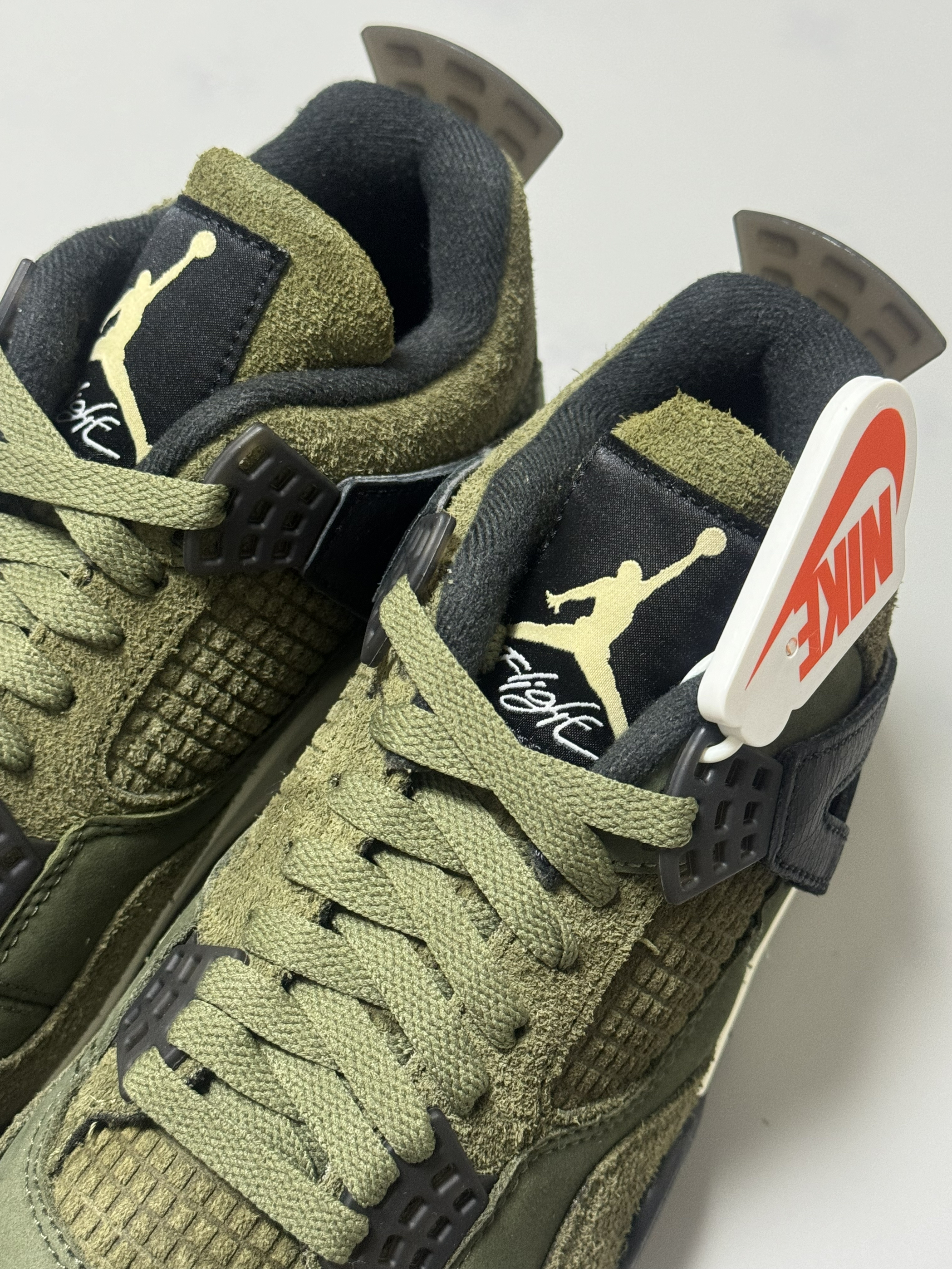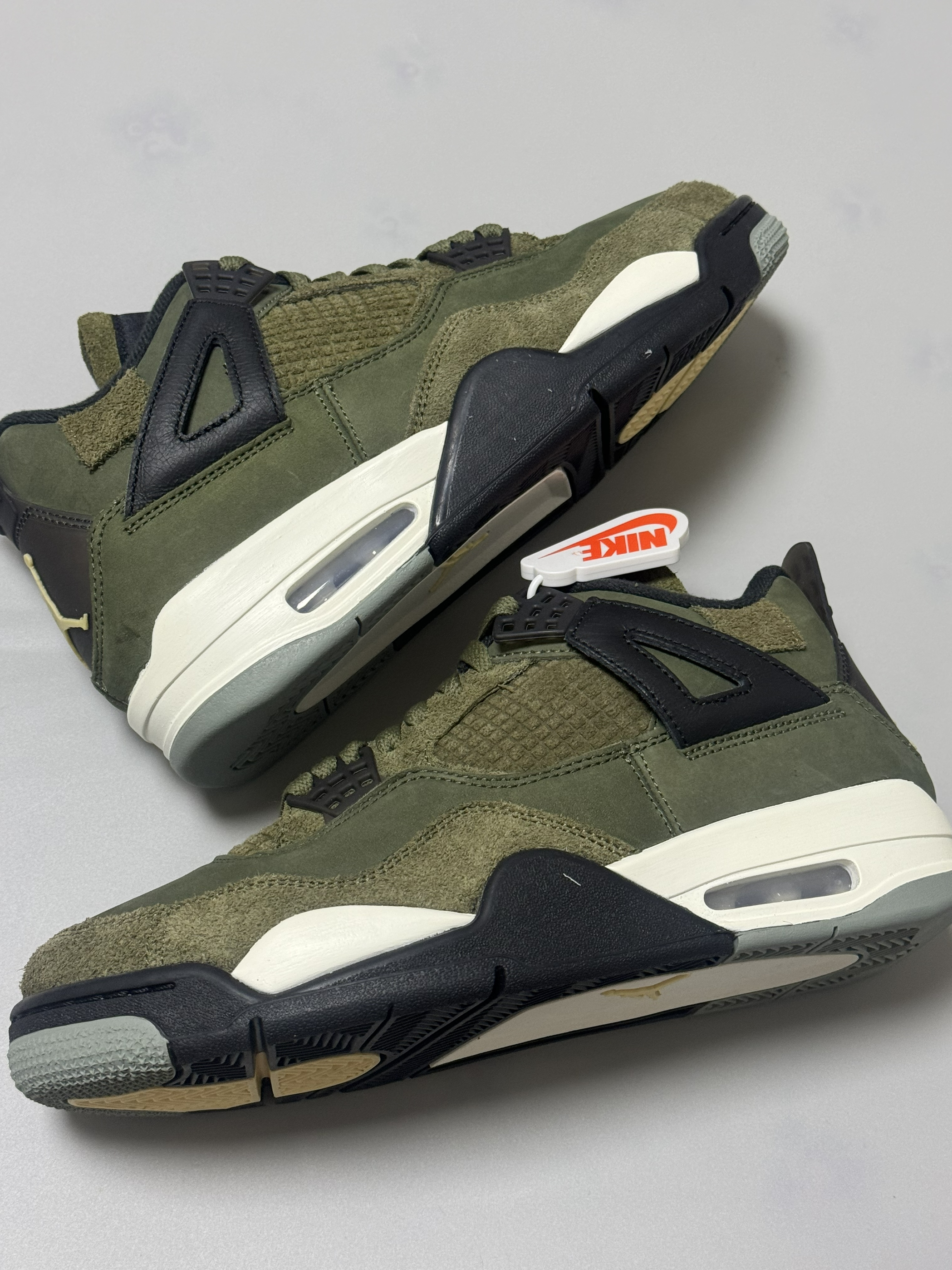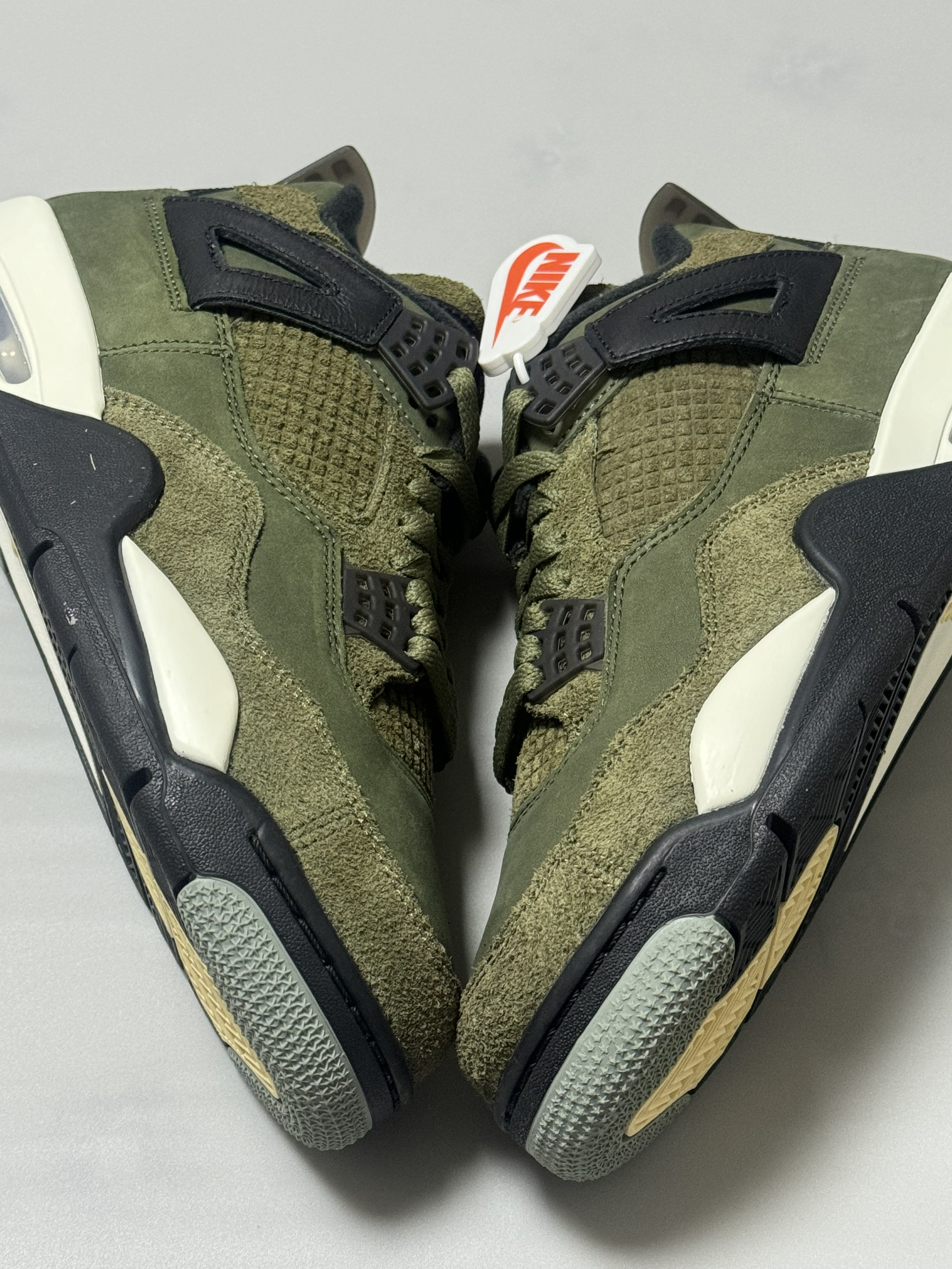 halo 阿迪来了,本期分享的潮鞋是这双aj4 “Olive”Air Jordan 4 Craft Medium Olive 麂皮拼接 整双鞋采用A做|日白色中底搭配黑色外底,鞋带孔等细节部分用黑色点缀。深浅两种绿色为主色,开窗式 Air Max 气垫搭配黑色外底。鞋面采用两种不同鞋材的麂皮拼接,橄榄绿妆点鞋面用帆布鞋材打造。UNDEFEATED 的墨绿色点缀,后跟部分用 Jumpman Logo...