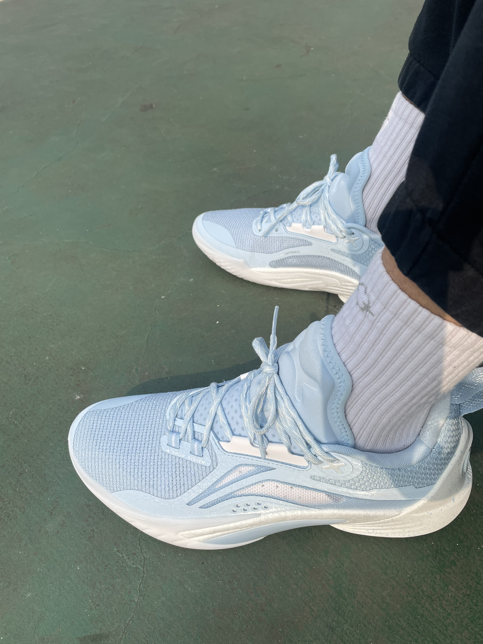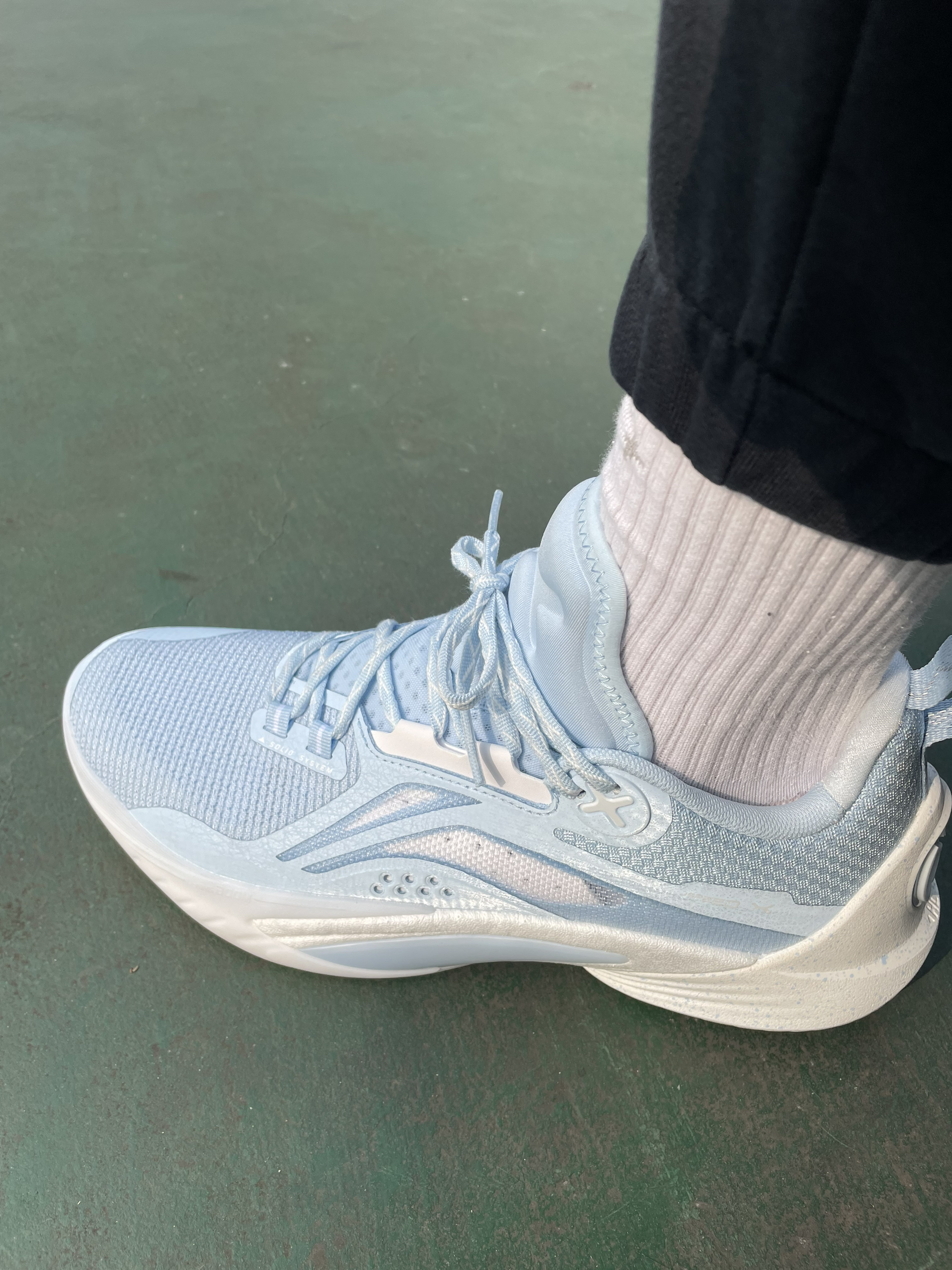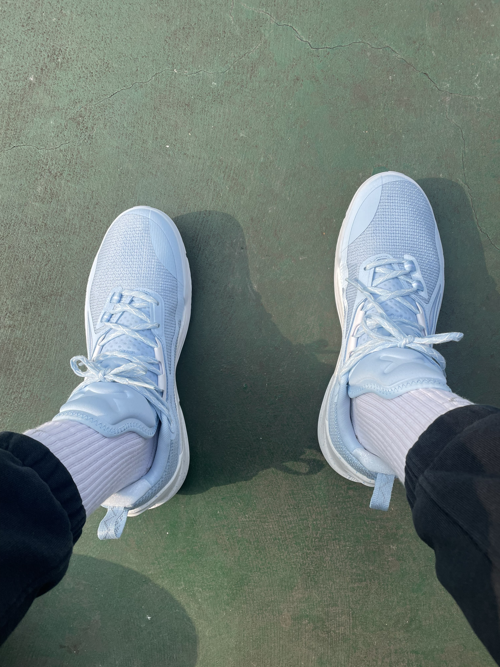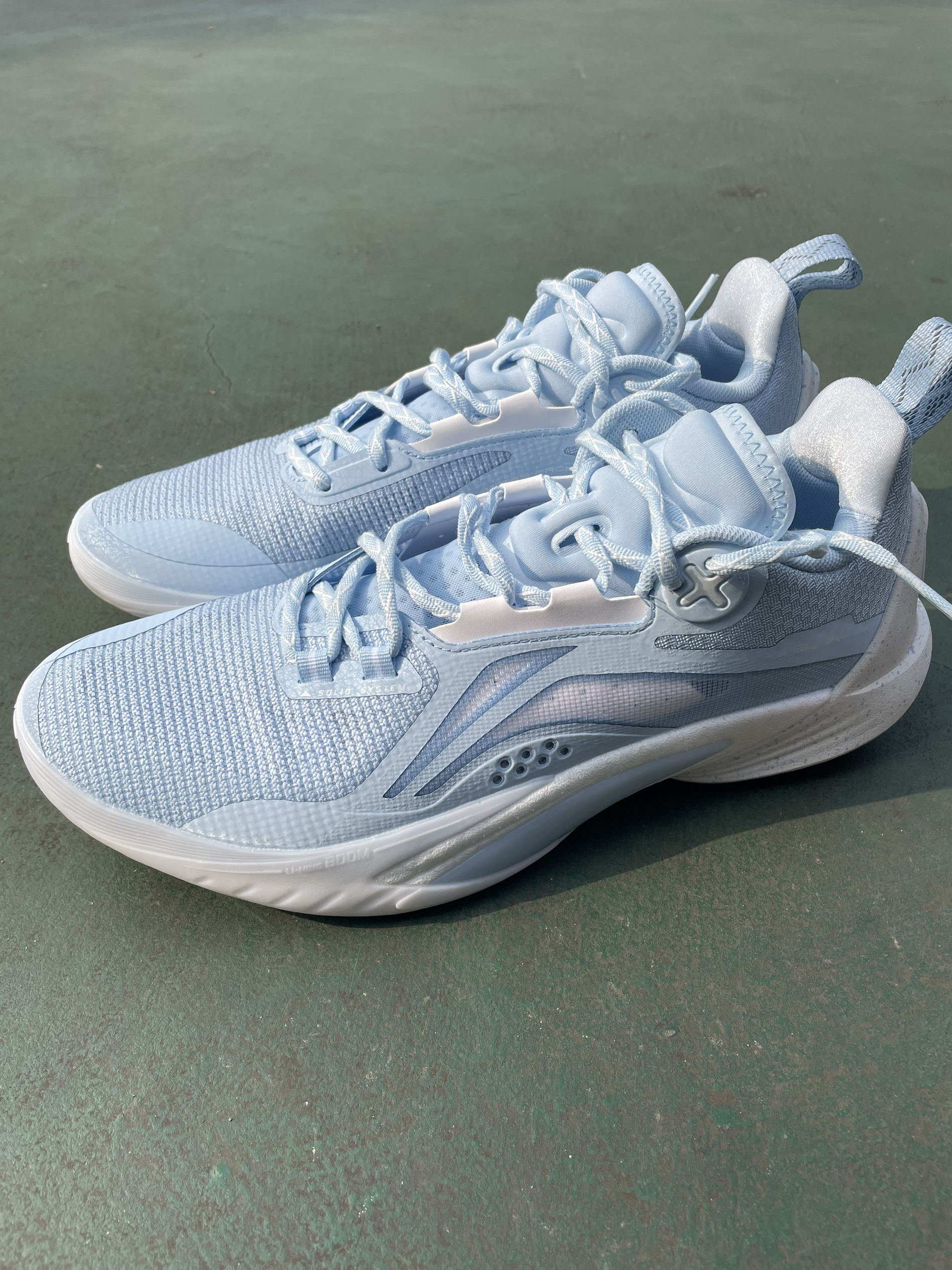 LiNing李宁 闪击10 白蓝 颜值方面比起上一代还是有所提升哦!穿搭非常帅气! 鞋面为织物鞋面结合热熔胶的补强,鞋面包裹支撑都还不错,不过鞋楦偏小,宽脚和高脚背的朋友需要注意买大半码,我属于正常脚型,前掌弯折处有点卡脚,磨合了20分钟后有所改善,鞋舌为天空棉材质加上后跟填充后厚实,我穿上还没有出现过点根现象。 中底方面全掌䨻科技,脚感不错,我75kg穿起来缓震够用,没有出现不适感。同时...