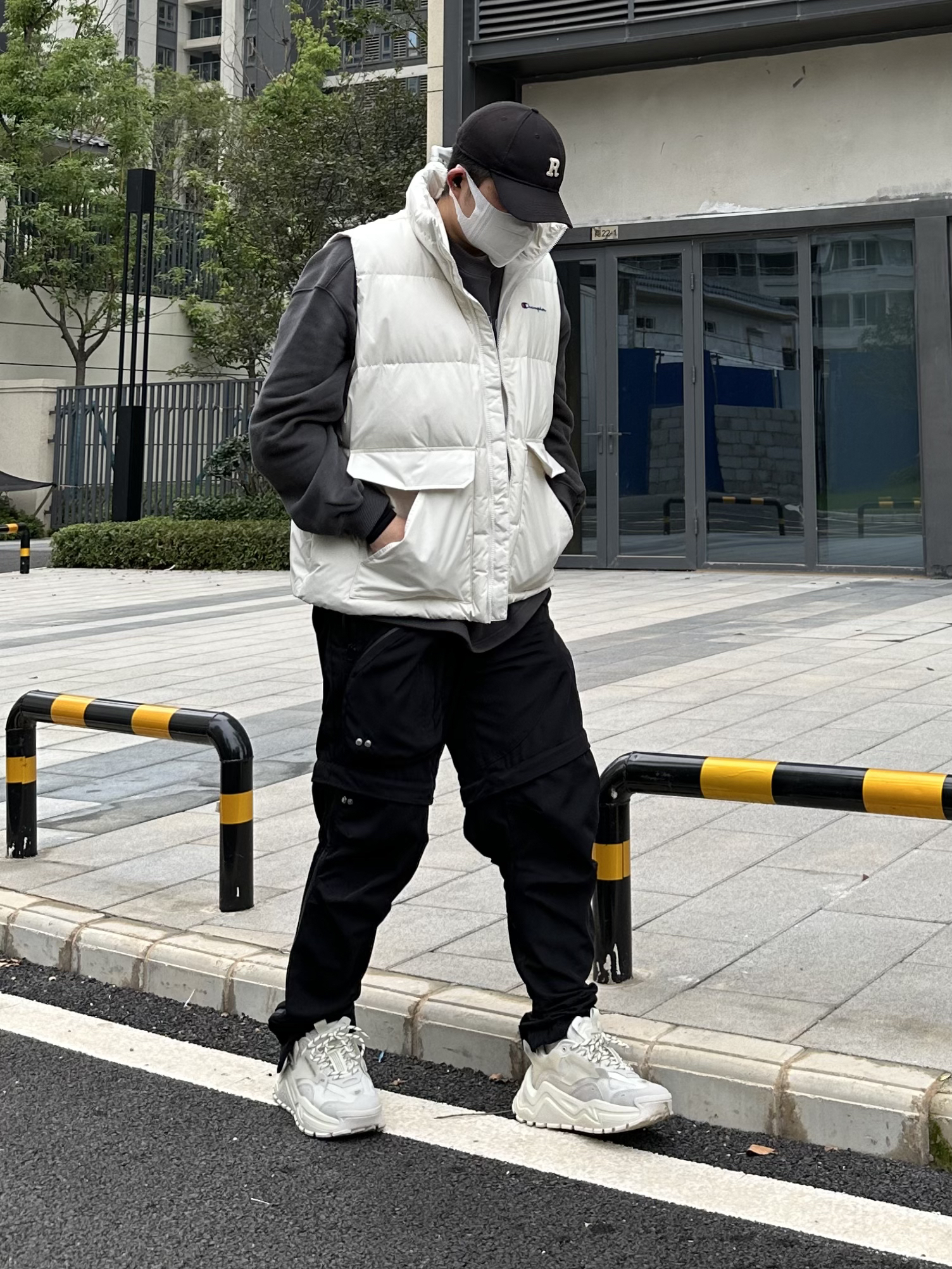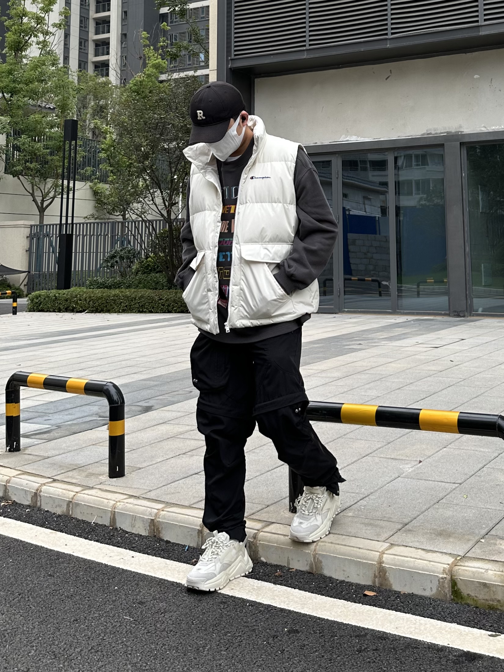 冬季日常 白色呼应很吸睛 选择羽绒马甲和加绒卫衣的叠穿 不仅有风格有层次 而且还不必担心白色羽绒服袖口容易脏的问题