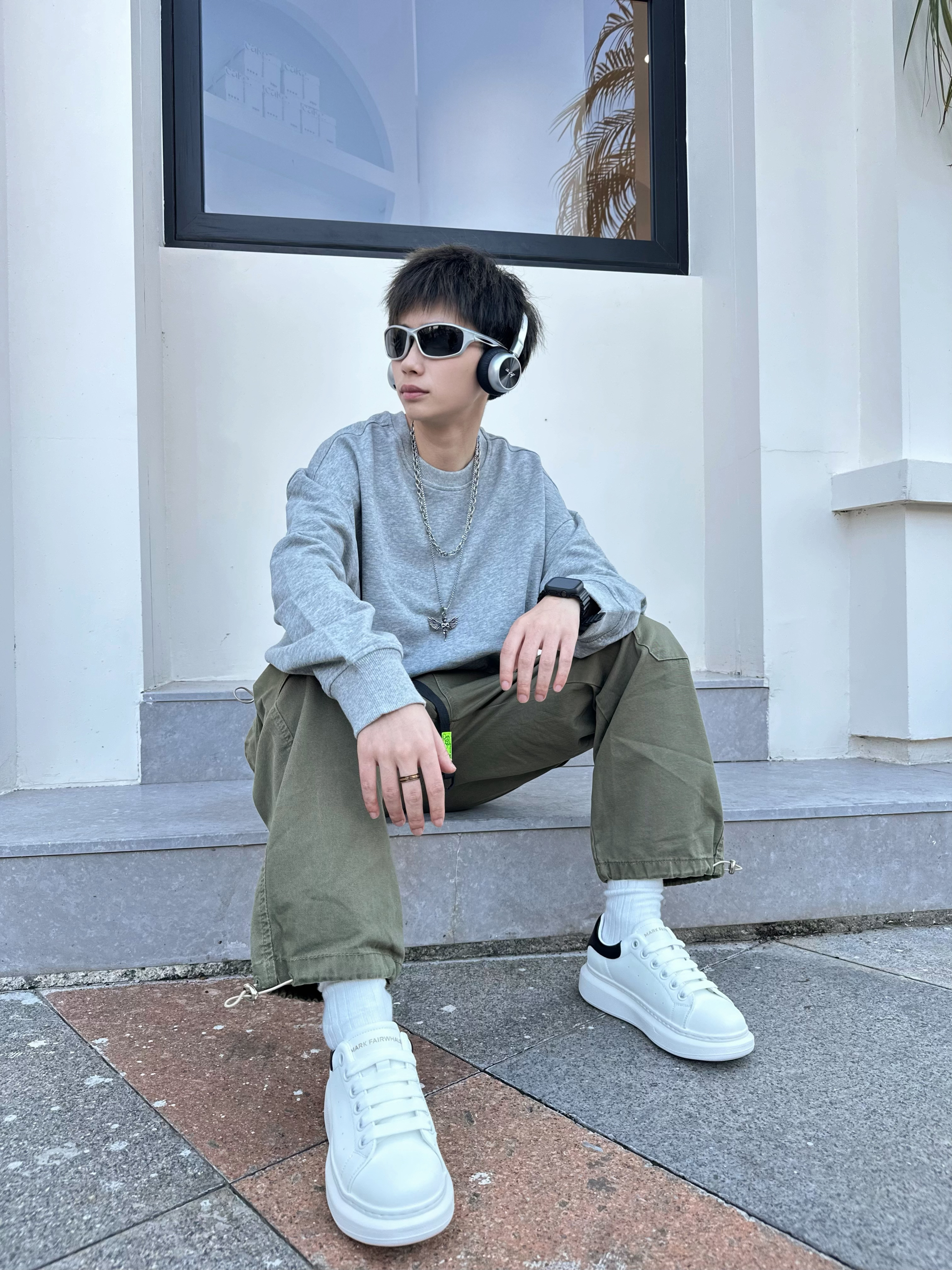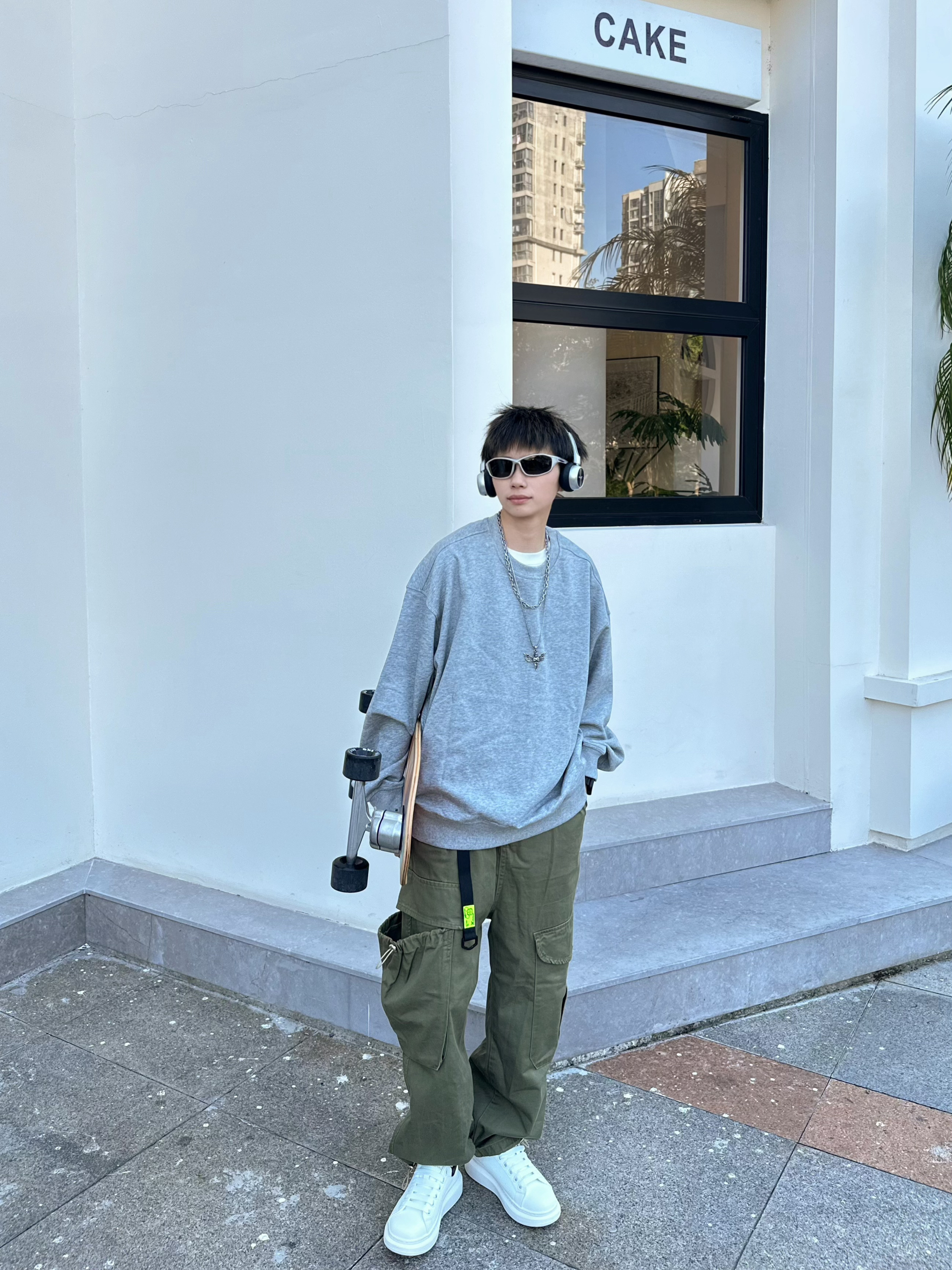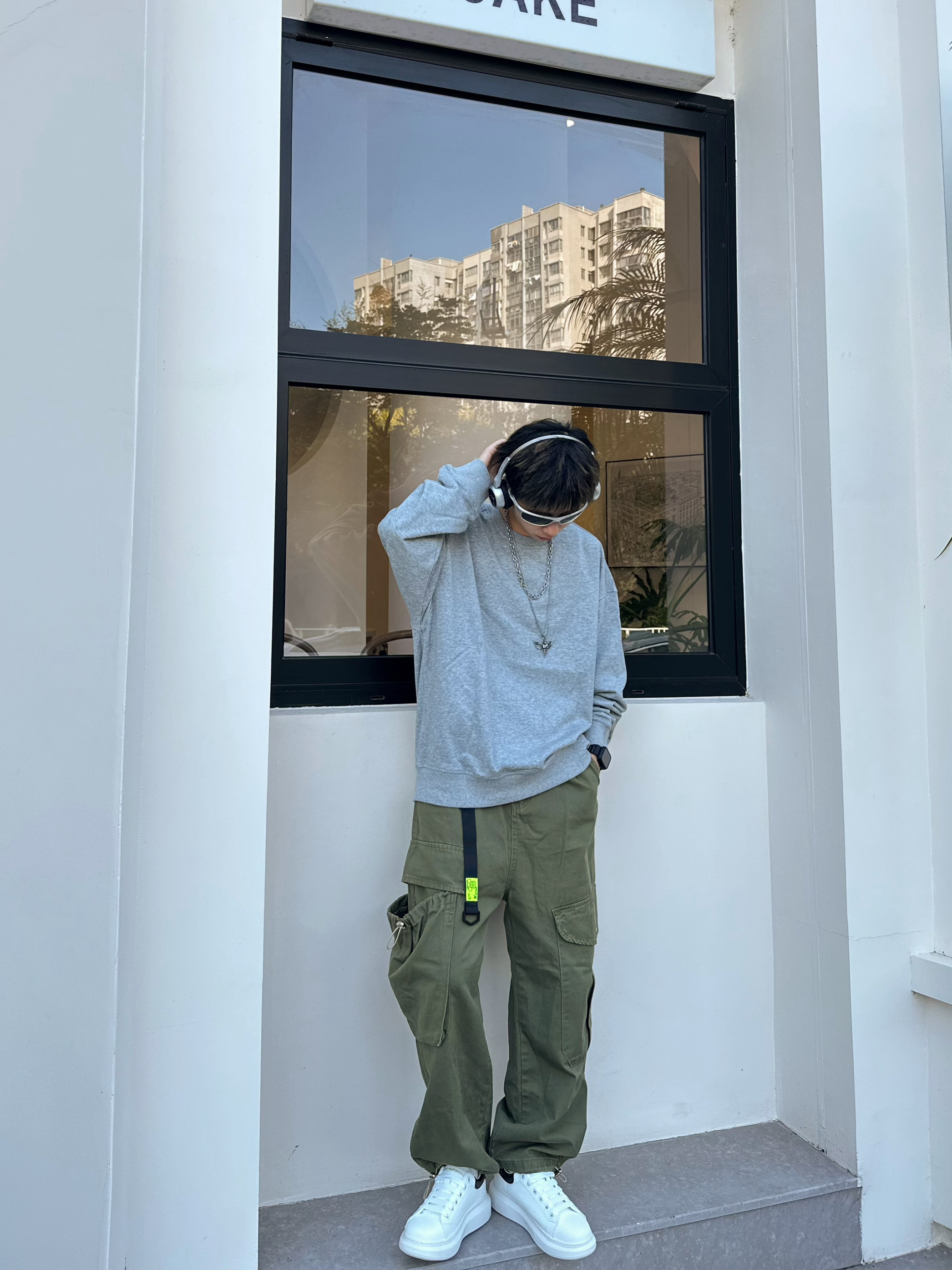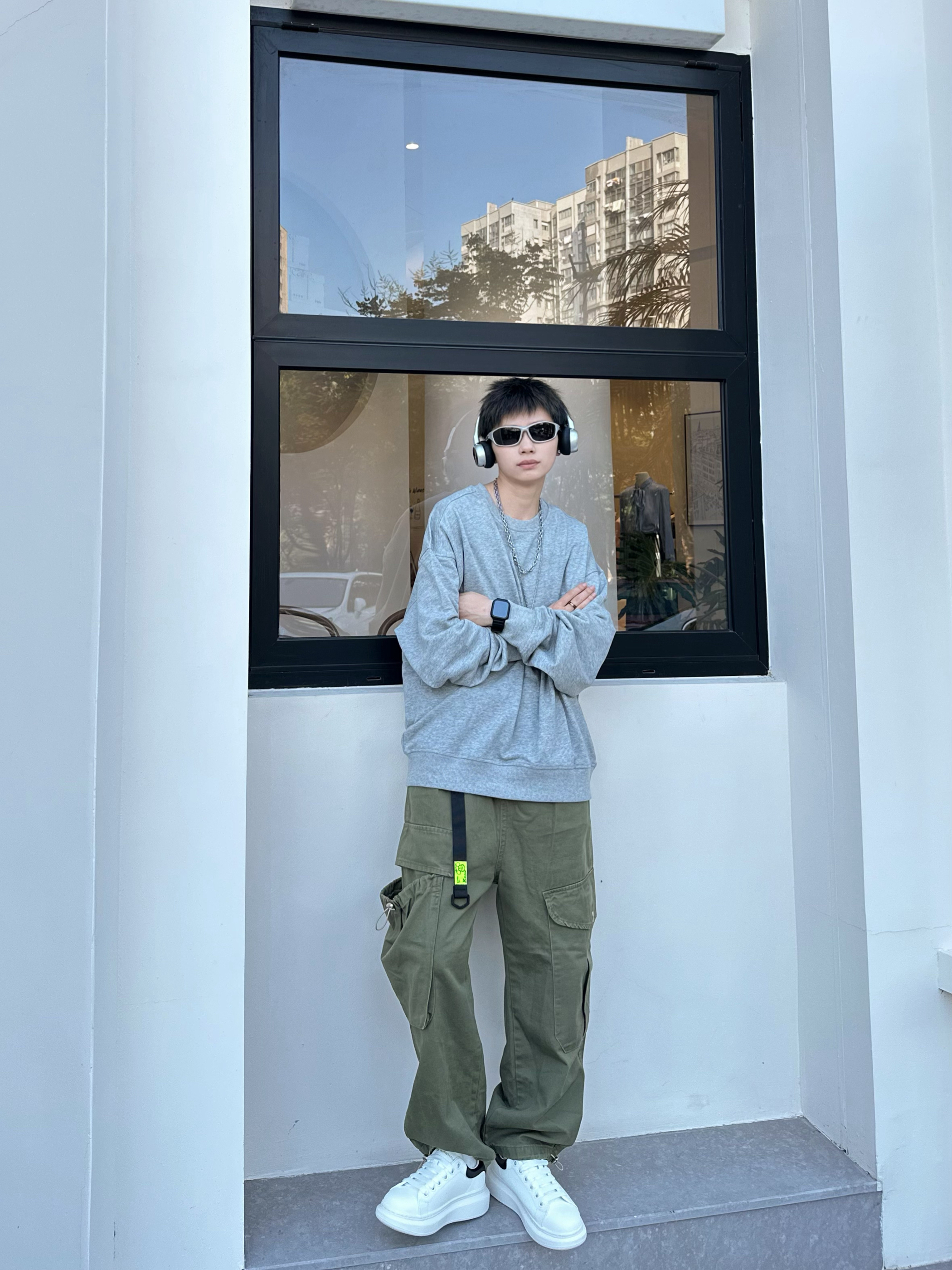 halo这里是嘎嘎的日常穿搭分享🥳 - 纯灰色的圆领卫衣,容错率高不会出错 宽松的版型,能够快速出门的干净简约风 单穿或者内搭都很可 纯棉的面料➕加绒内里冬天穿也很暖和 叠戴双层项链,增加层次感 下身选择一条军绿色工装裤 垂感和阔腿的效果很nice 抽射的裤脚设计,根据穿搭调节束脚or直筒 最后搭配一双小白鞋 白底黑尾的拼接设计,日常通勤穿搭都很百搭 发泡厚底,上脚轻便舒服 自带的增高效果对小...