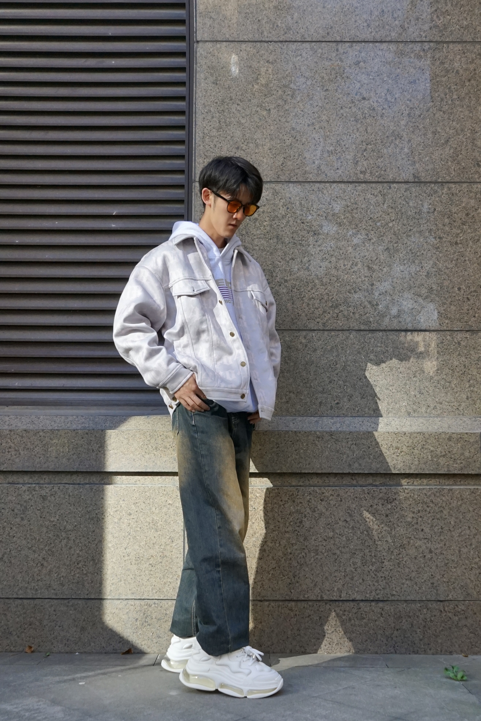 没想到麂皮夹克那么有质感!还好发现的早 今天和大家分享这款 404MOB GANG 复古的字母印花LOGO也是很有设计感 浅色的麂皮夹克上身效果真的很赞 麂皮绒棉柔软细腻,自带复古风 版型很经典,上身也不挑身材 低调的浅灰色简约百搭 搭配深色牛仔裤或者休闲裤 轻松拿捏男生穿搭的氛围感了