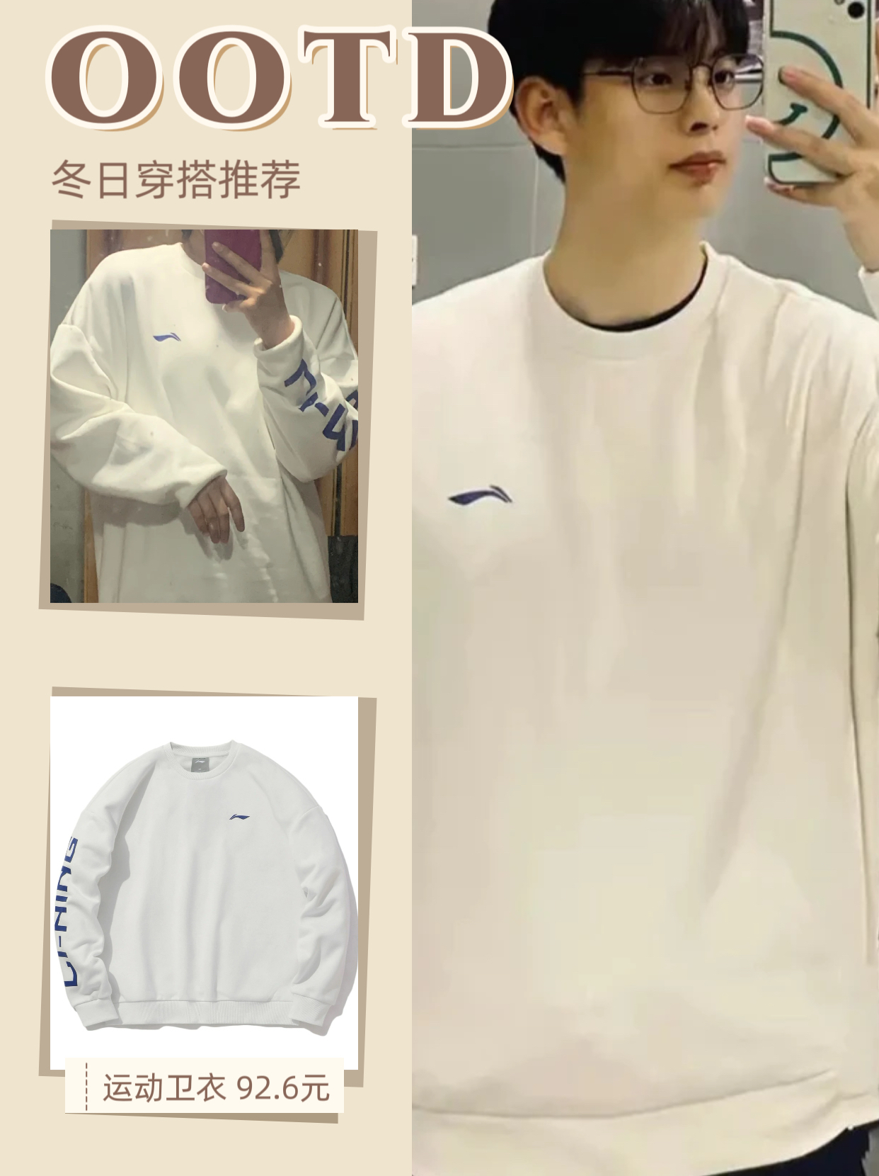本篇笔记关联了Li Ning 运动时尚系列加绒圆领套头长袖卫衣 AWDQB71 加绒/白、Li Ning/李宁 运动时尚系列棉质针织保暖长袖连帽套头衫卫衣 AWDQ831 雀褐色、Li Ning 运动潮流系列运动时尚系列加绒保暖套头连帽长袖卫衣 AWDR857 黑加绒等商品,为用户提供真实的使用体验和购买参考。