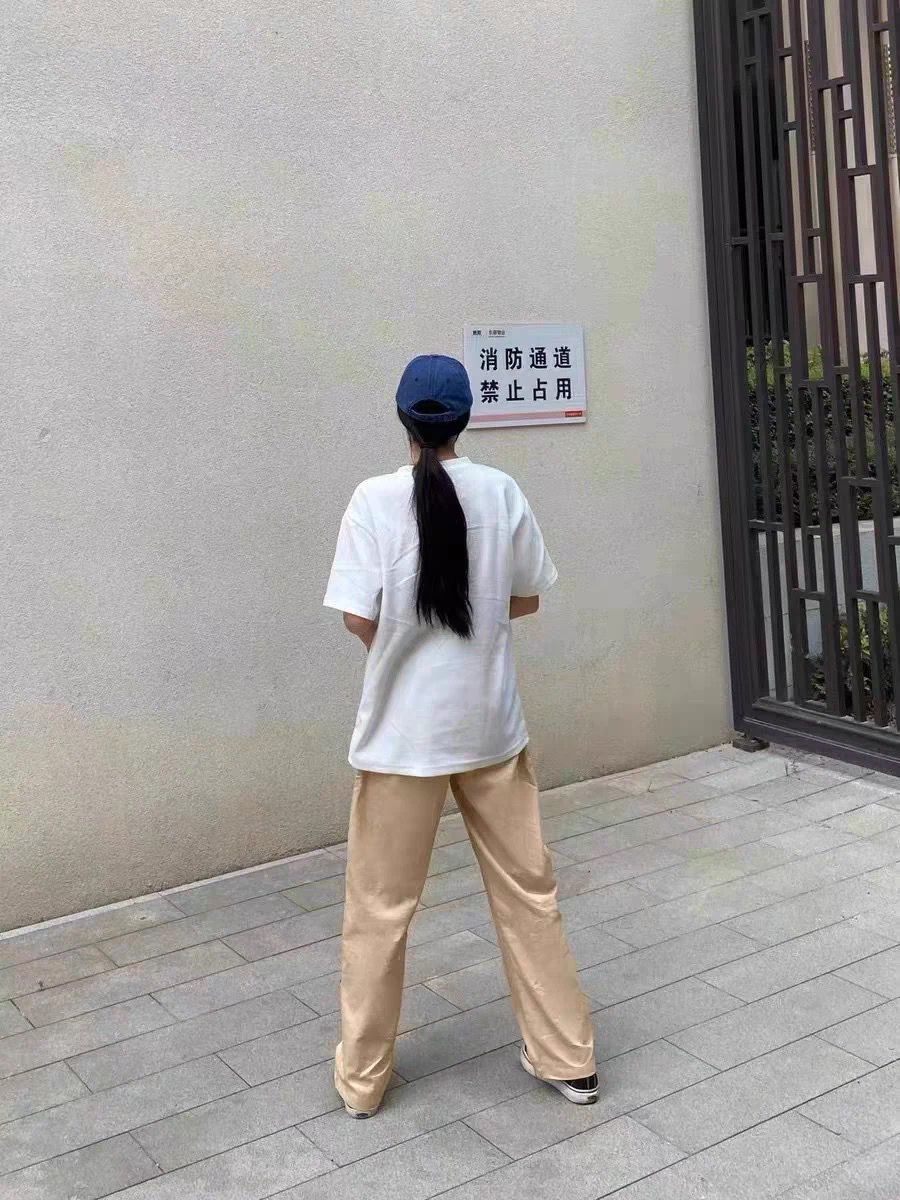 我又来分享日系裤裤了❄️ 集美们谁错过这条裤裤我都会很伤心 🆒上身版型巨能遮肉肉那种!! 面料是那种风衣面 太适合夏天了 搭配一件T恤就可以日系感直接拉满☺️