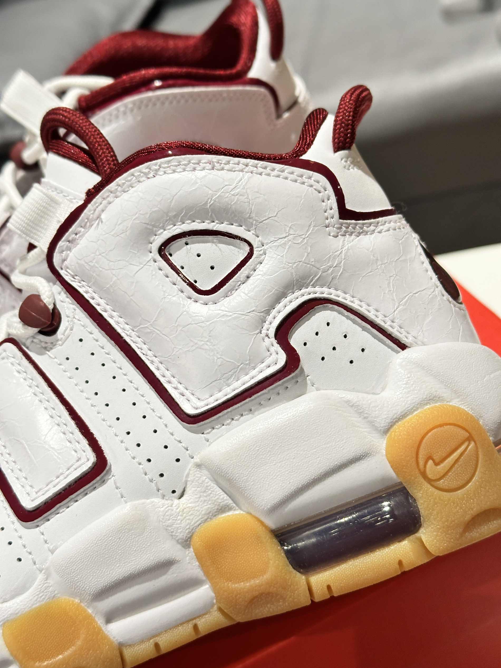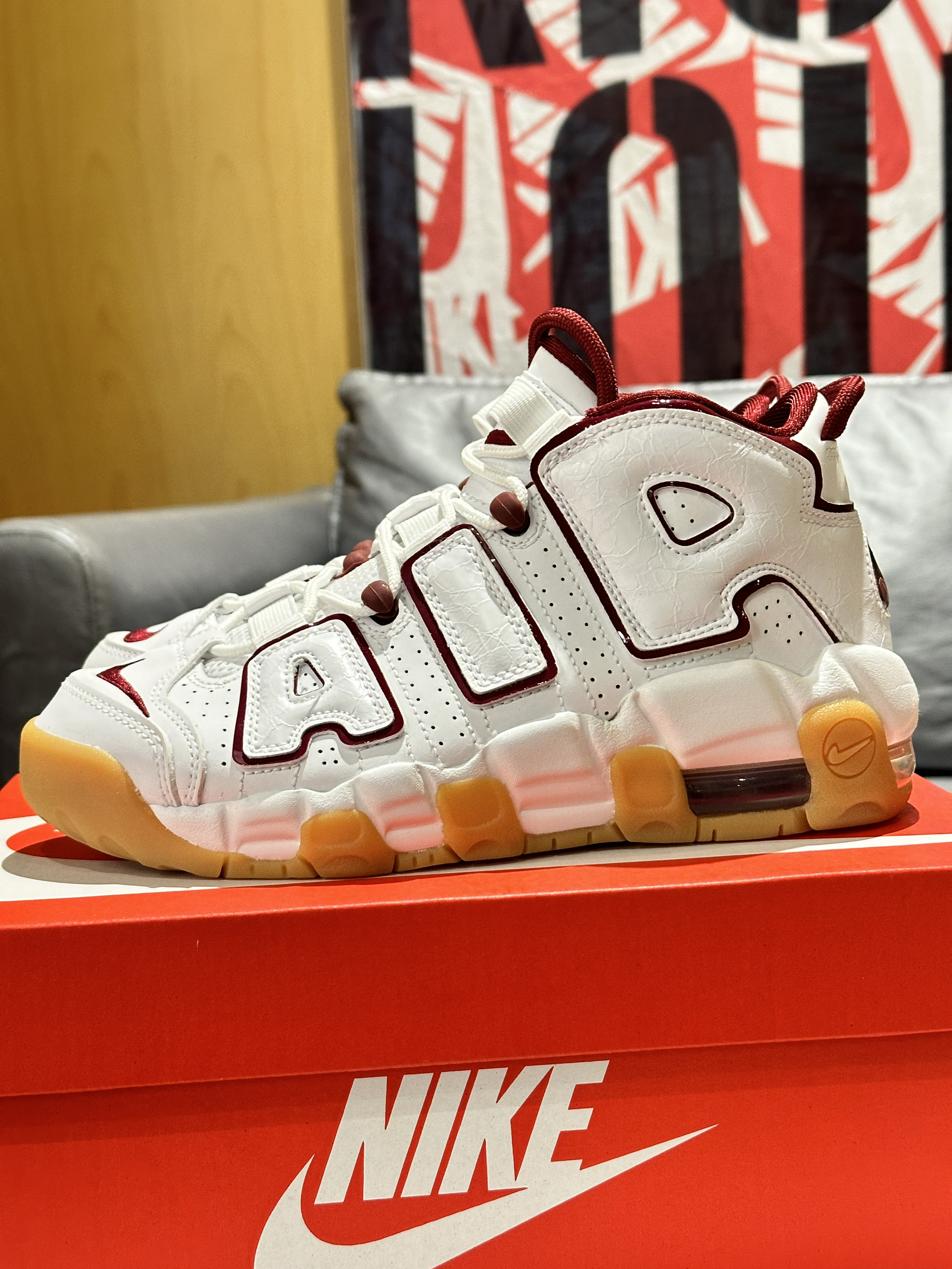 本篇笔记关联了Nike Air More Uptempo 皮蓬大Air 缓震 复古 防水 百搭 防滑耐磨 运动休闲鞋 GS/白色/酒红等商品,为用户提供真实的使用体验和购买参考。