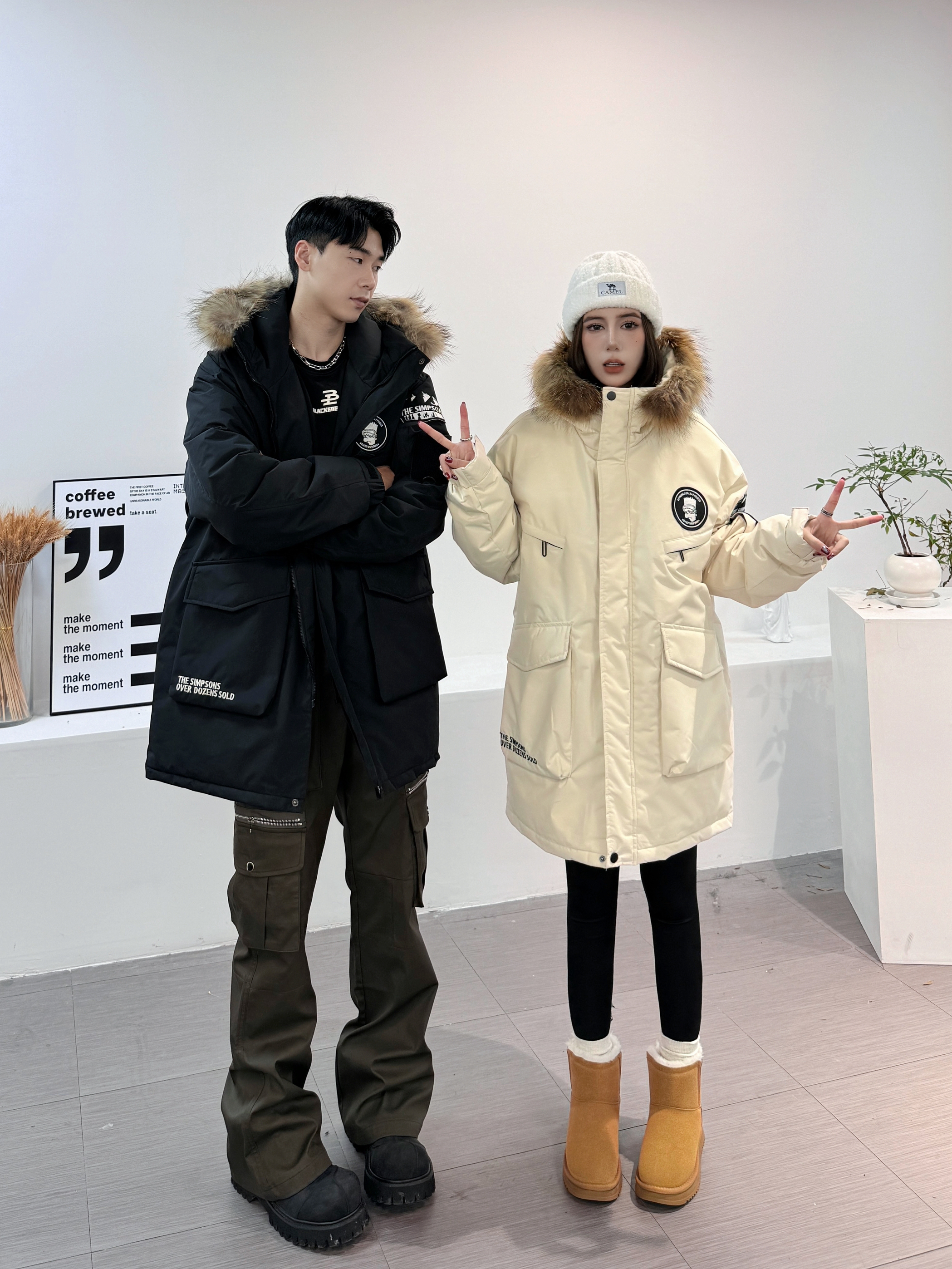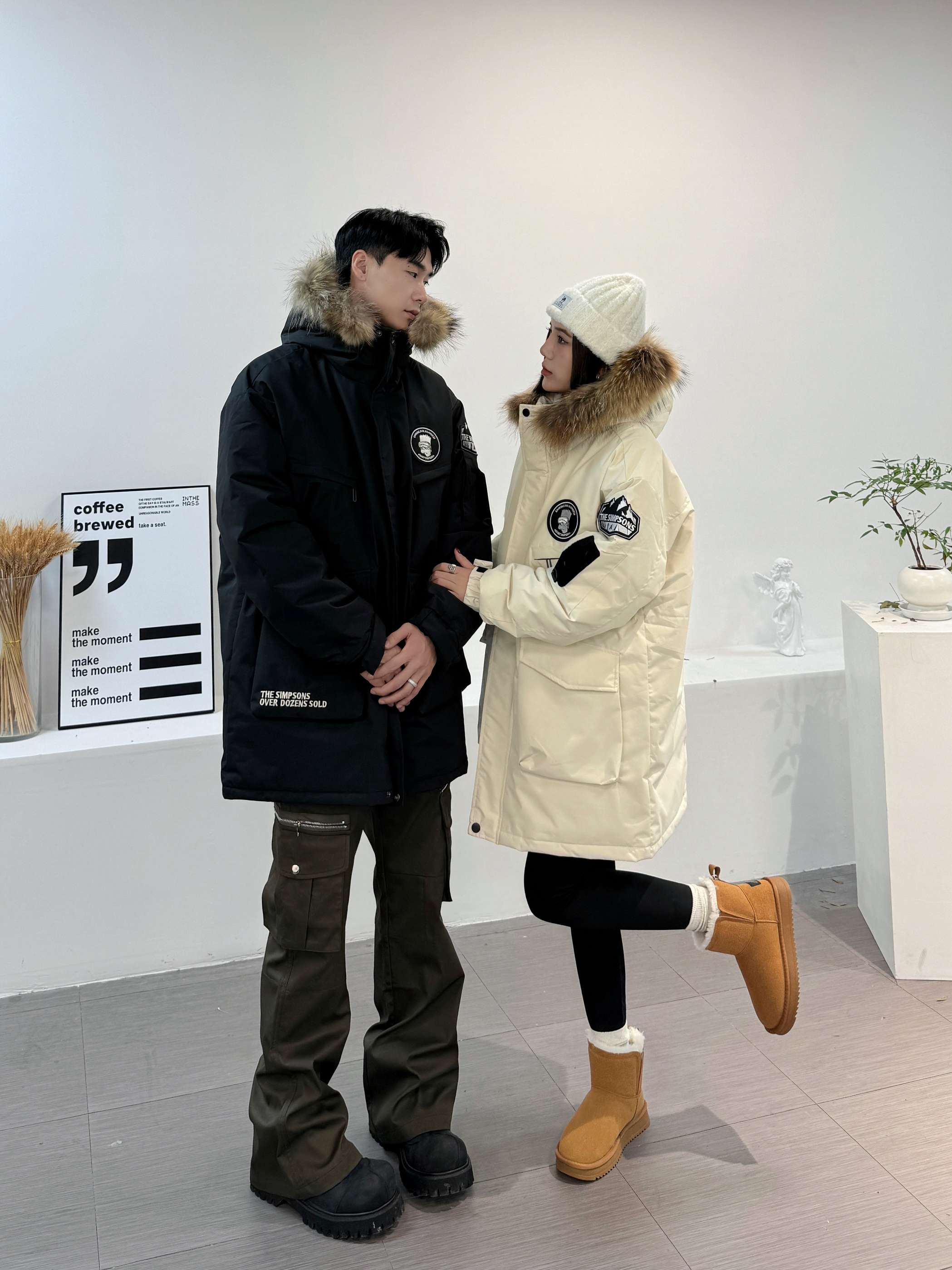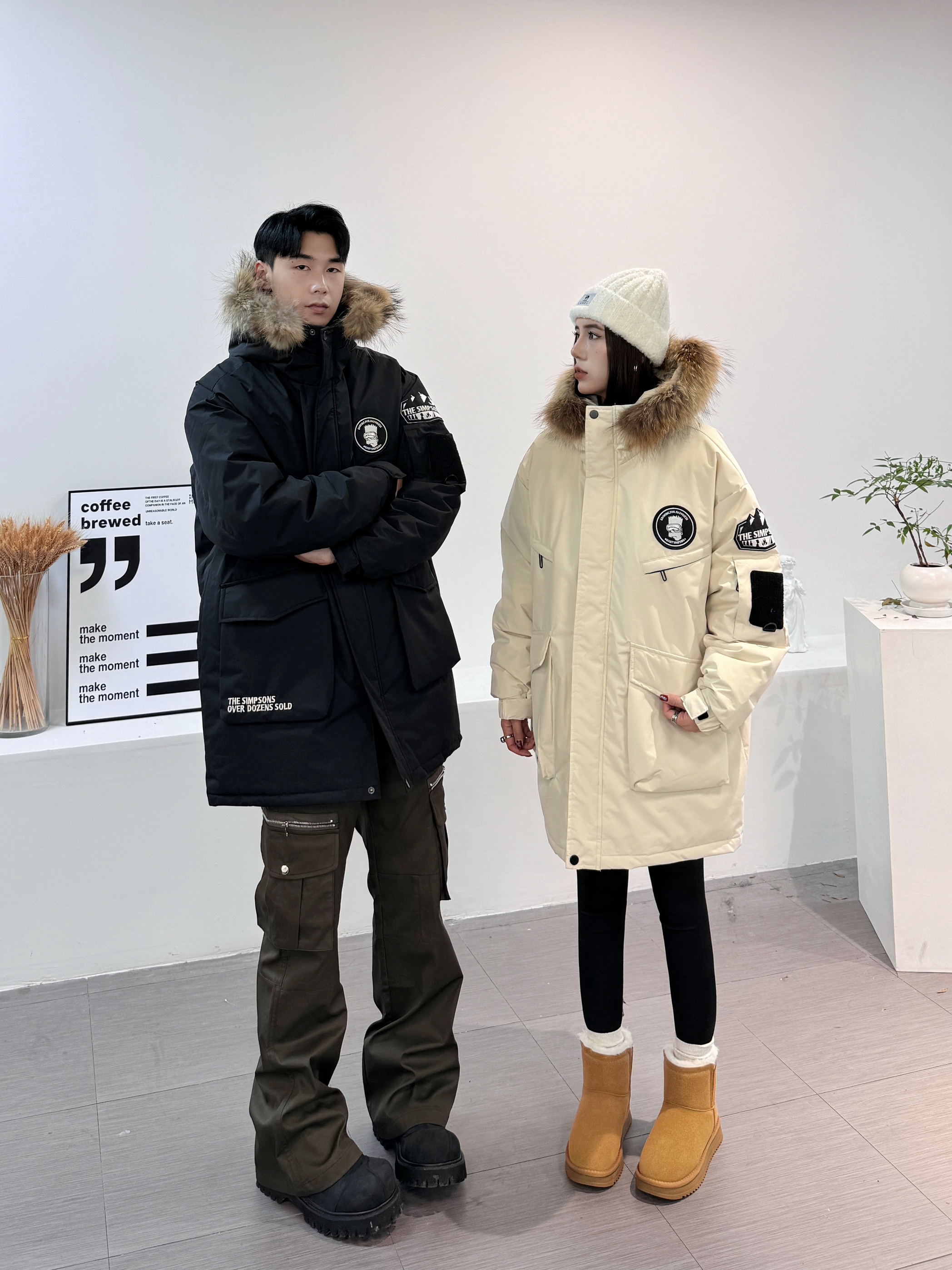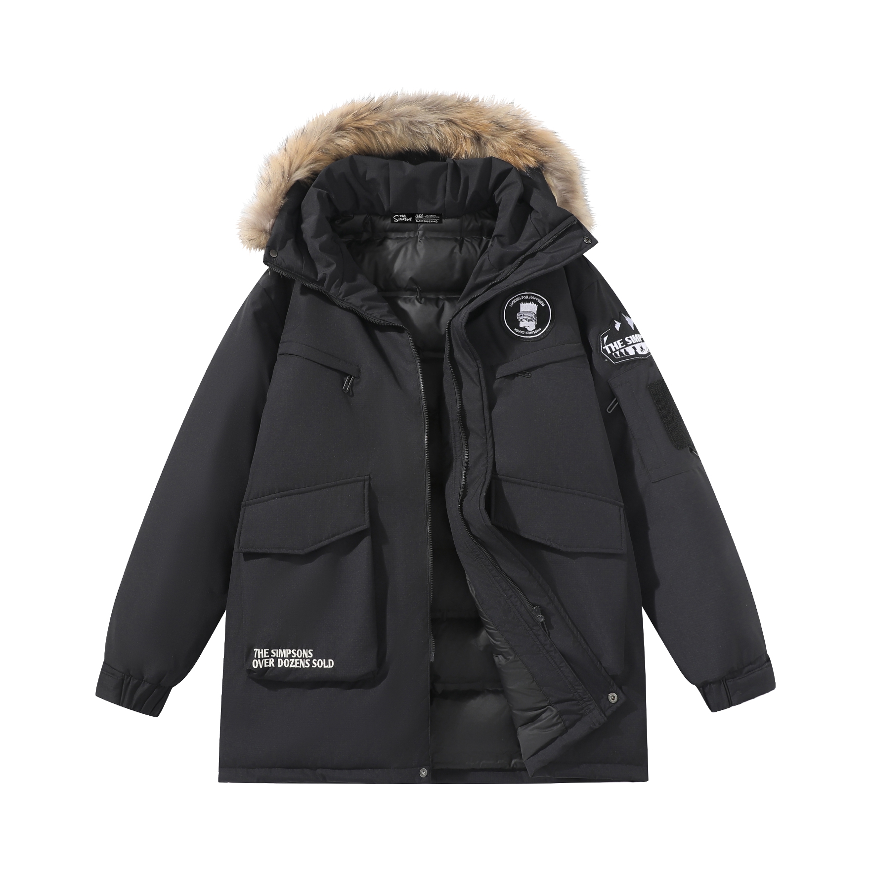 工装长款羽绒服保暖又好看 一件过冬没问题啦 太适合降温的地区啦 工装大口袋设计 立体刺绣很有质感 帽子大毛领设计更暖和很适合穿去滑雪啦 👔: The Simpsons/辛普森一家 👖:XXBZ ————
