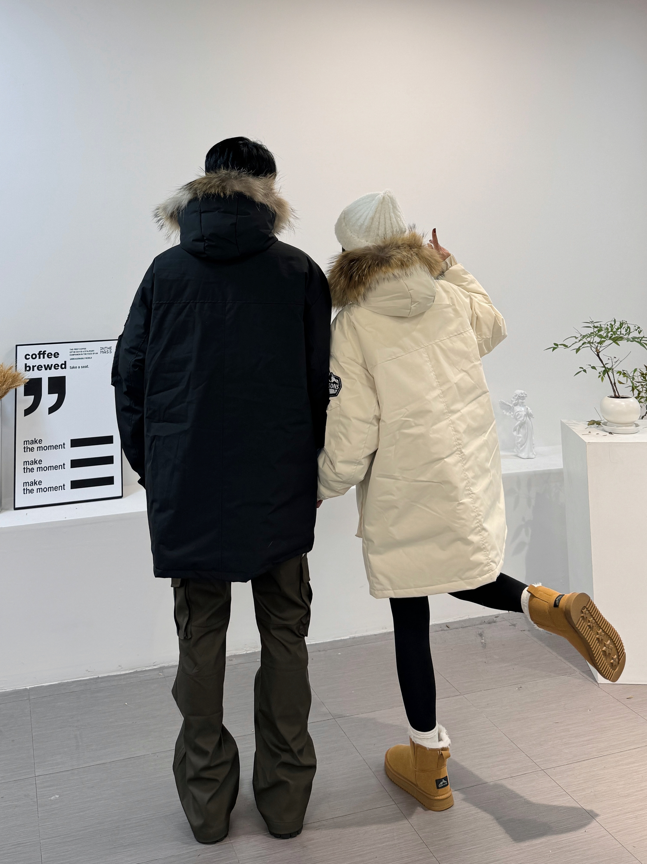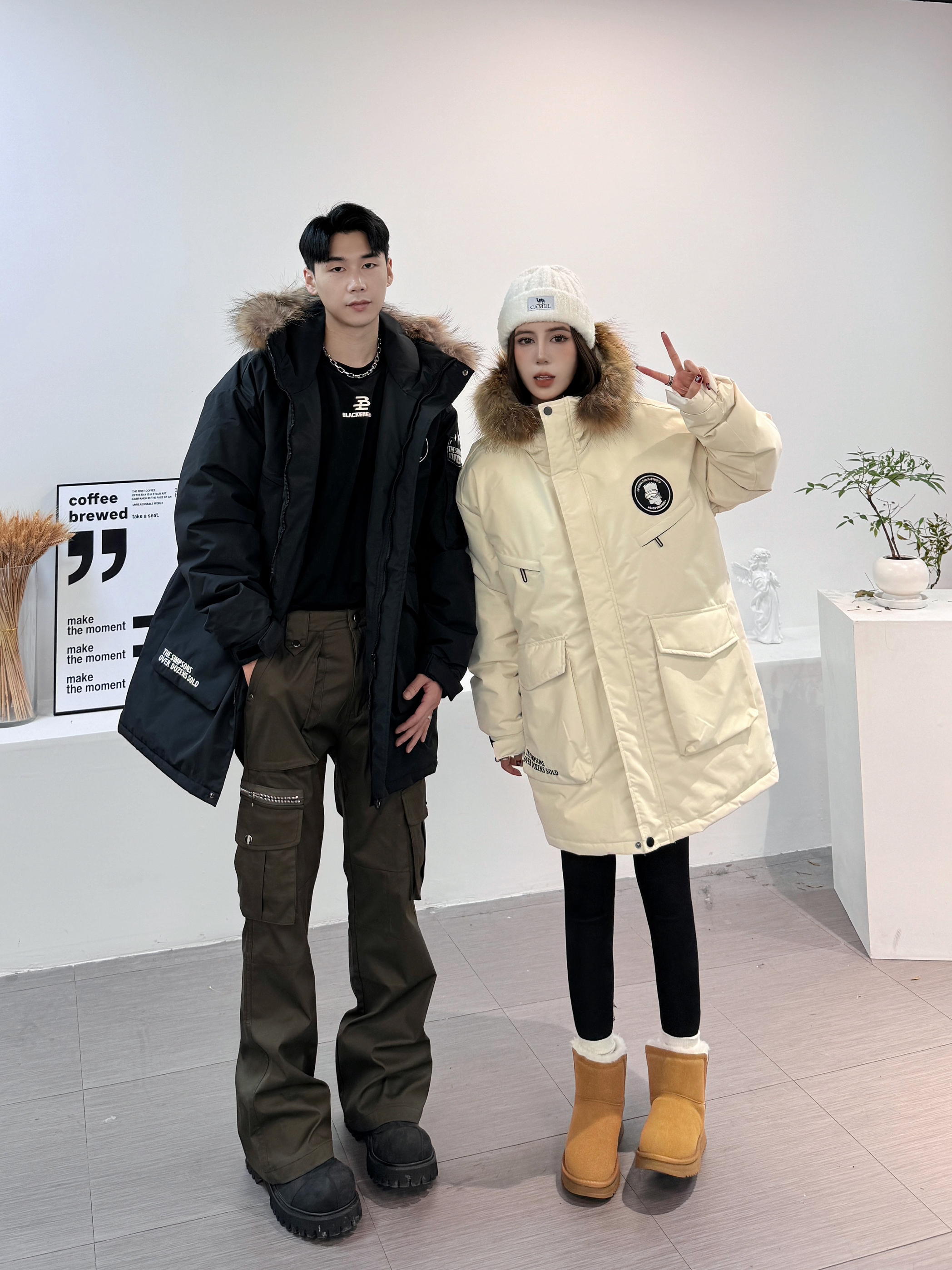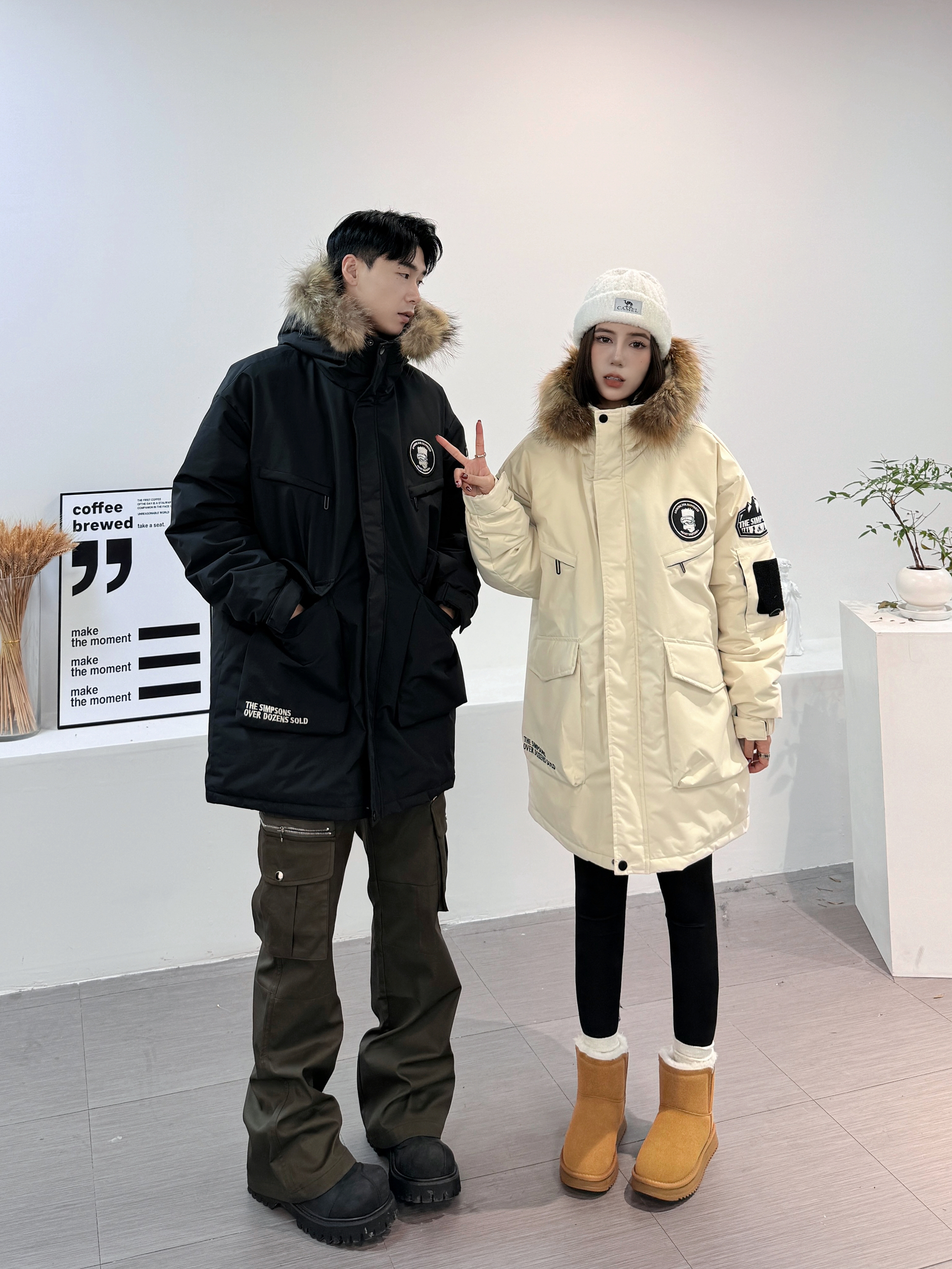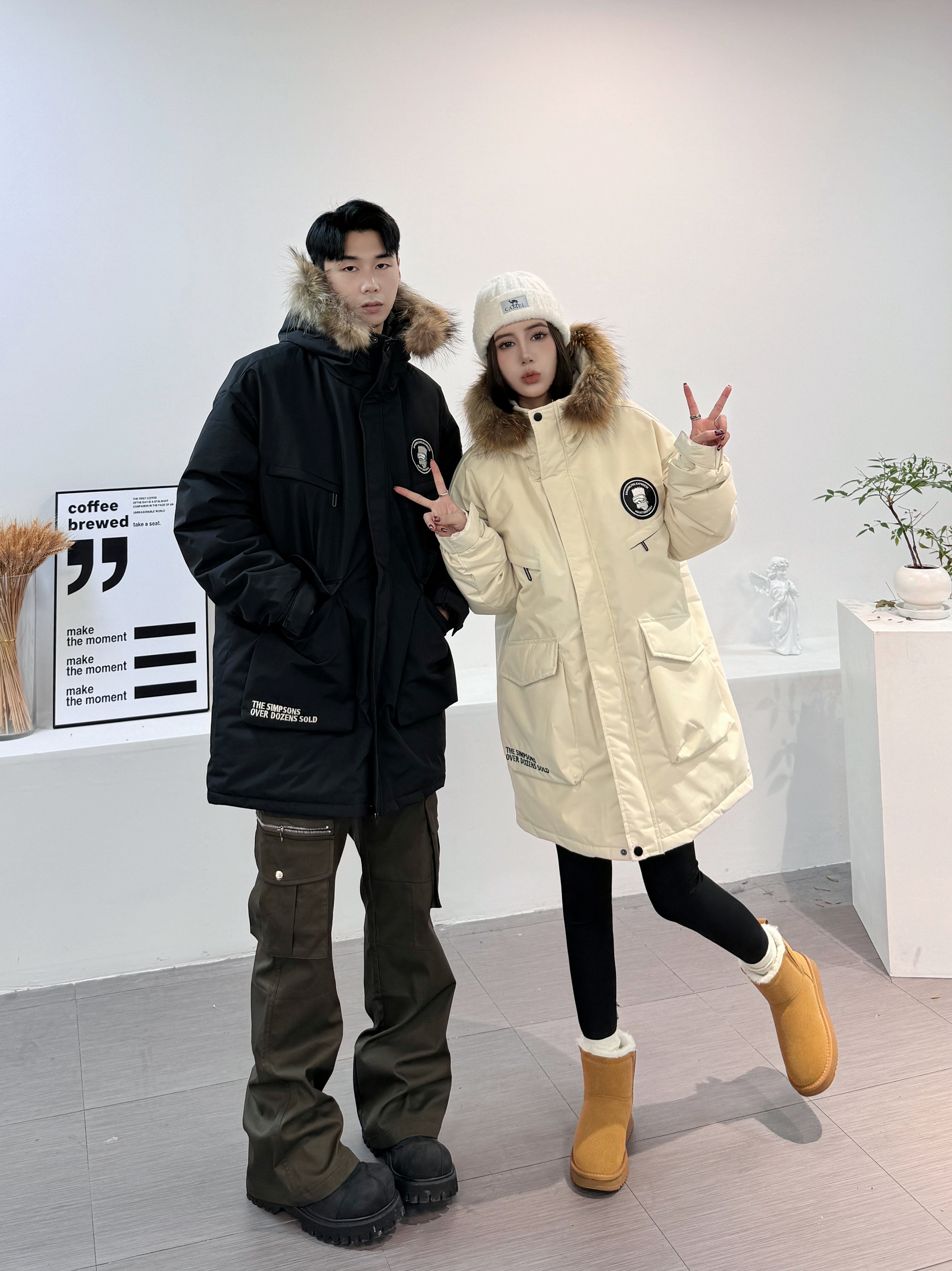 工装长款羽绒服保暖又好看 一件过冬没问题啦 太适合降温的地区啦 工装大口袋设计 立体刺绣很有质感 帽子大毛领设计更暖和很适合穿去滑雪啦 👔: The Simpsons/辛普森一家 👖:XXBZ ————