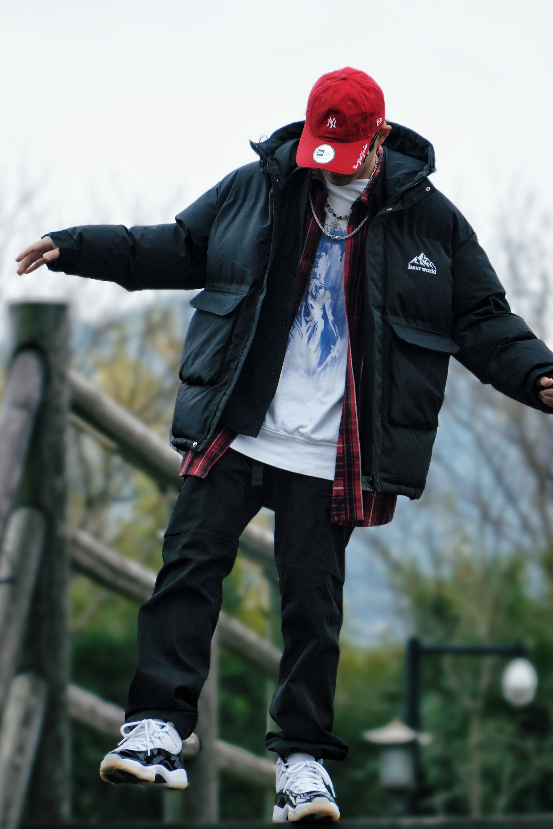 秋冬叠穿 记得先选一个基础色调❗ - 今天主打的是黑色⬛ 厚实的保暖外套➕红色衬衫➕白T 配合黑色系的休闲裤 视觉上看起来既有层次感 又不会过于凌乱复杂 潮流时尚感很在线哦 - 鞋子选择和服装相互呼应的色彩✔️ 经典的黑白撞色运动鞋可以降低踩雷率 小厚底的鞋型上脚很软乎轻便🥰 而且鞋面设计很简洁 日常驾驭起来适配度可以说是很高的了。 - #入冬穿搭