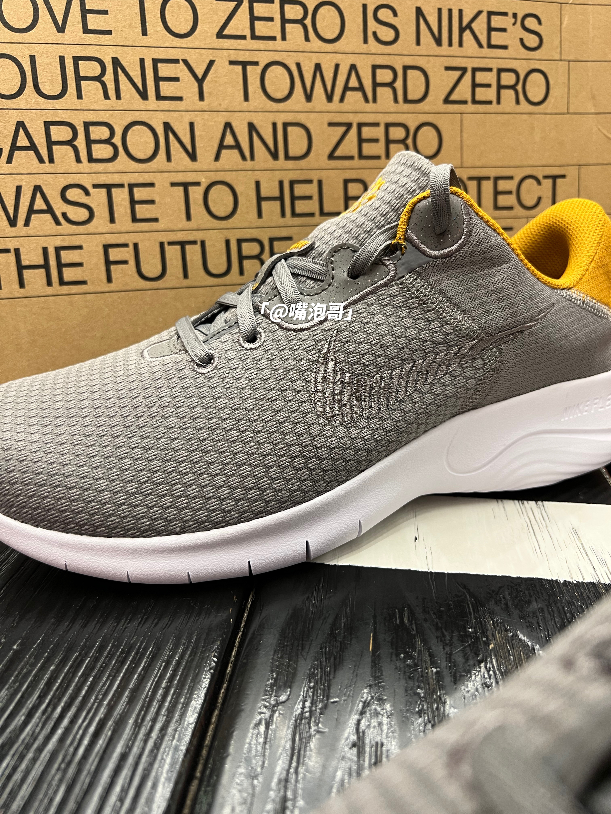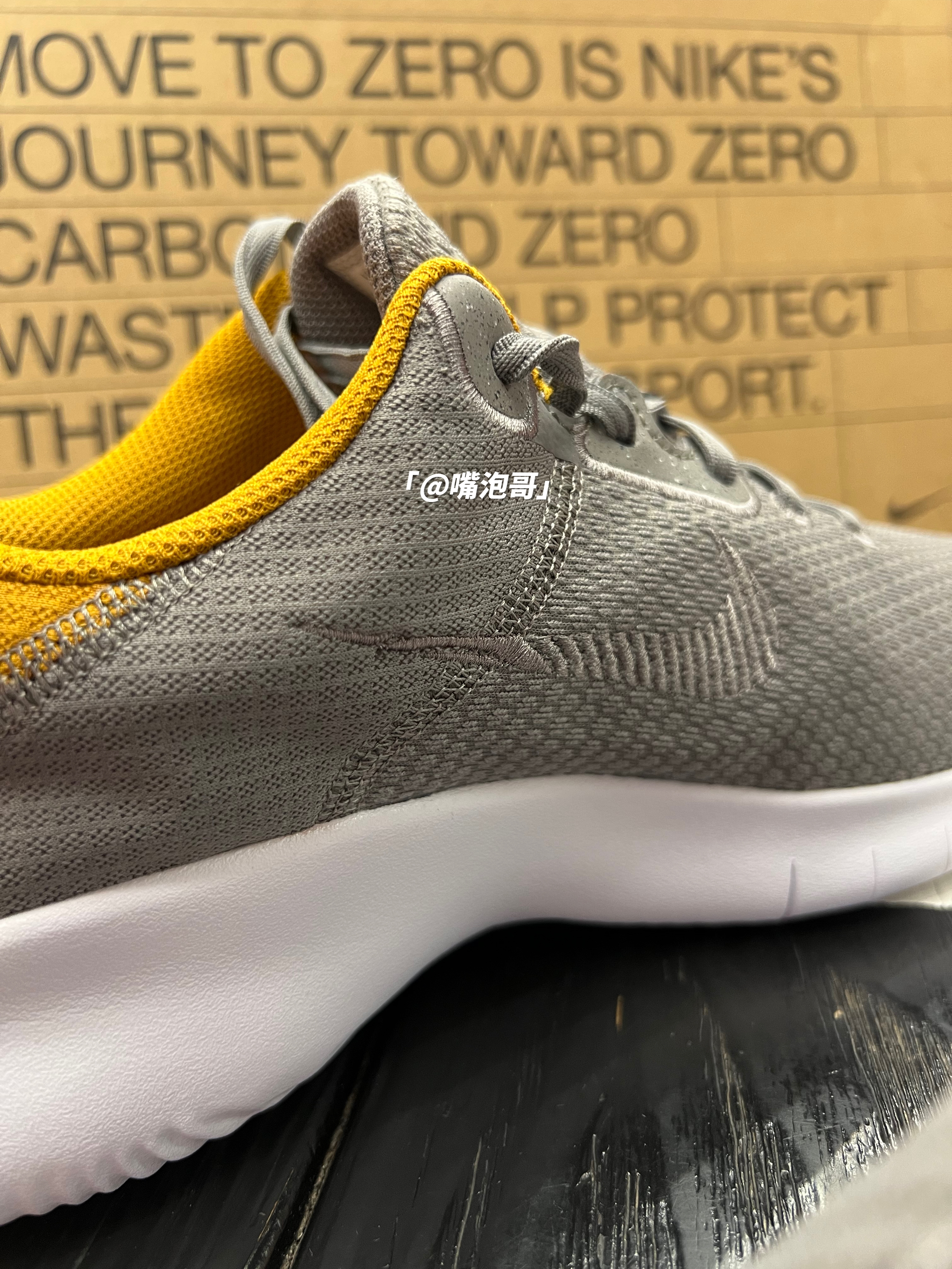 👟:FLEX Experience Run 11 Next Nature 灰黄色 简介: 鞋款是为日常通勤及运动所设计打造,整体选用了多种可回收材料制作,选用了灰色作为主色调,辅以黄色点缀,轻柔的复合织物布鞋面搭配上一体式的中大底,使整体的上脚感受很是轻便。 细节: 鞋面选用了复合织物布材料制作而成,两侧的swoosh以灰色刺绣呈现,与鞋面相融合,鞋带孔位置使用车线加固,后跟处运用了黄...