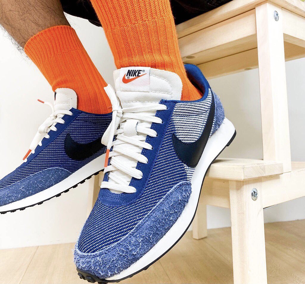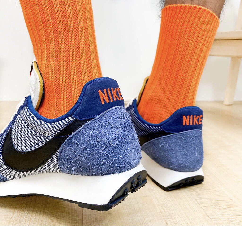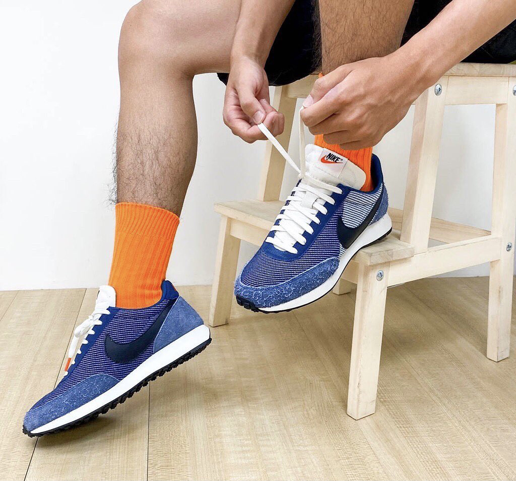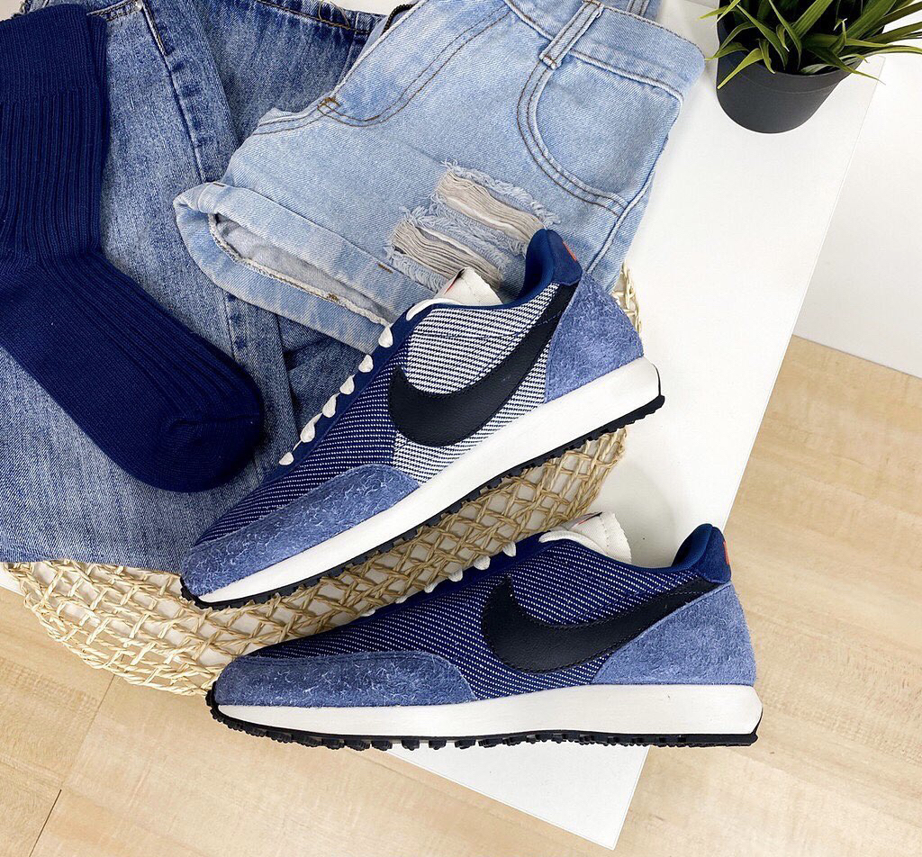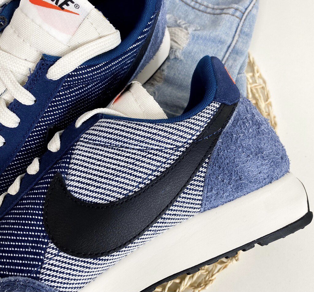 鞋名:Air Tailwind 79 SE 牛仔蓝 外观及细节: 鞋子外观上以蓝色呈现,鞋面是使用了牛仔布打造而成,给鞋子增加了不质感,鞋头及鞋后跟上使用了蓝色的磨毛麂皮包裹,增加了耐磨性,鞋舌是选用了白色的皮革,两侧的swoosh使用了黑色的光面皮革,中底是白色的缓震泡棉,大底为黑色的华夫格大底。