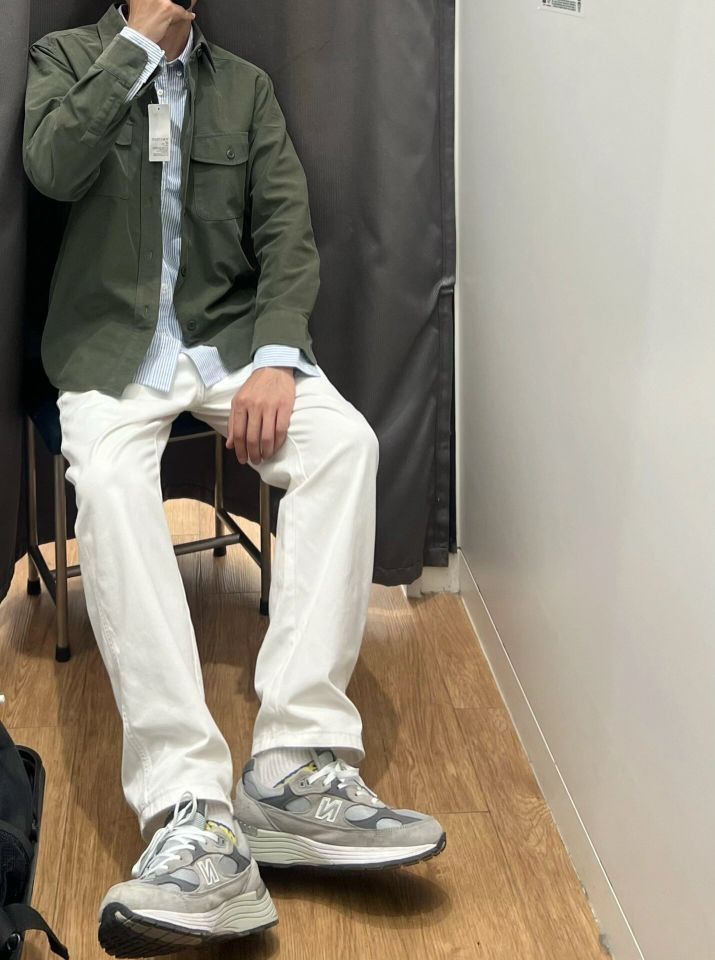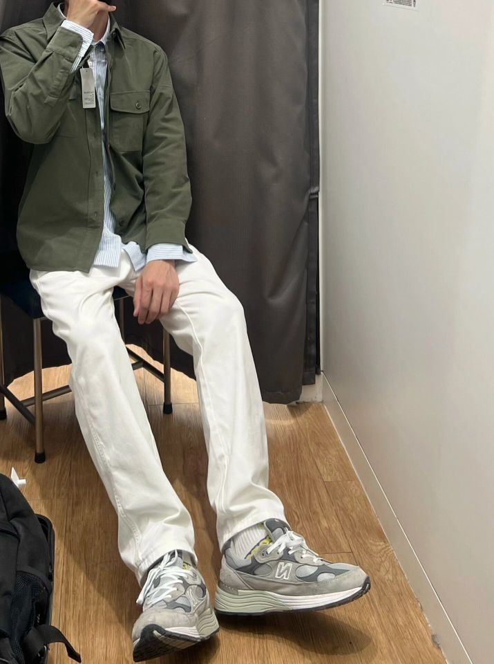 🌈尽管白色裤子容易脏,但它绝对是个帅气的选择!这款修饰腿型的小直筒版型,男女穿起来都好看。 ❤️搭配一件工装衬衫外套,内搭一件浅蓝色条纹衬衫,出街简直轻松!🔥 ✨这款直筒裤的版型设计非常巧妙,能够修饰腿型,让你的腿部线条更加流畅。无论你是瘦子还是胖子,都能穿出好身材!白色裤子给人一种干净利落的感觉,让你看起来更加精神焕发。 (图片来自博主:Ohsiling)