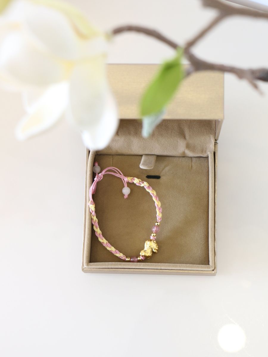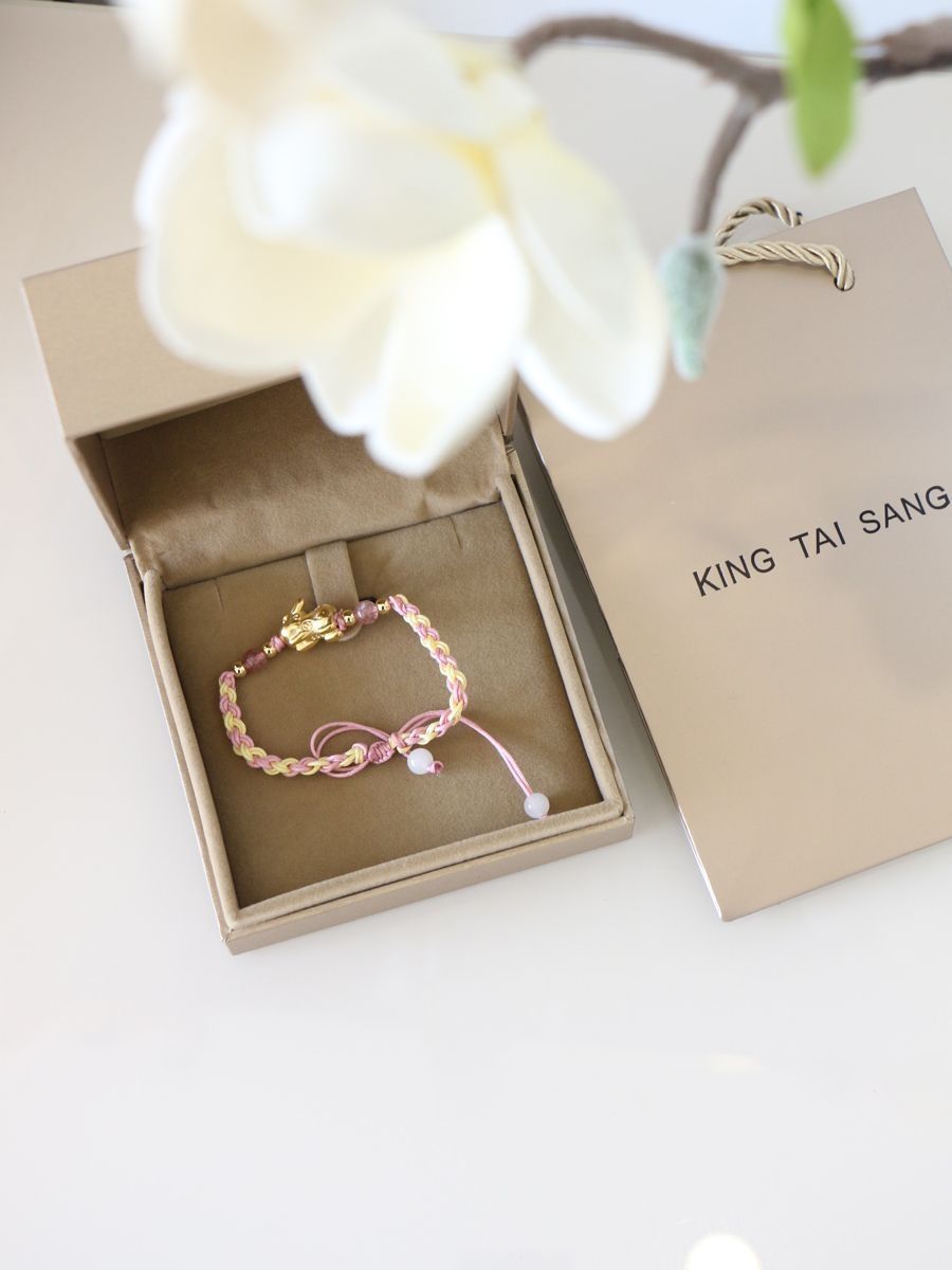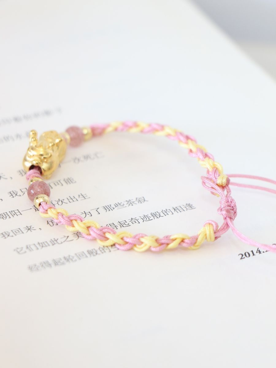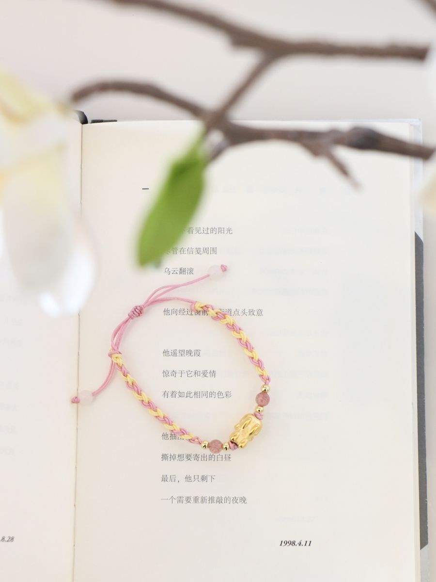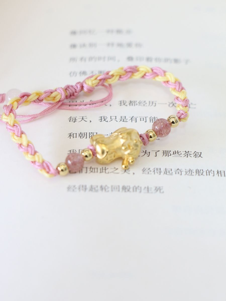 最近迷上了手链。 白皙的手腕上,佩戴上一个精致的手链会是多么的美好的事。 很多人喜欢穿金戴银,像金子,除了能提升自己贵气外,还能金生水给自己带来财运气运哦。 最近手腕上的这个貔貅宝宝手链,就是我大爱的一款手链。 相比于全金属手链,它用的是粉色绳编织成手链,加上水晶点缀,颜值感满满,低调又精致。 貔貅在光的照耀下,映射出迷人的光泽,加上硬金工艺打造,长时间佩戴也历久弥新,也不会变形哦。 礼盒包装...