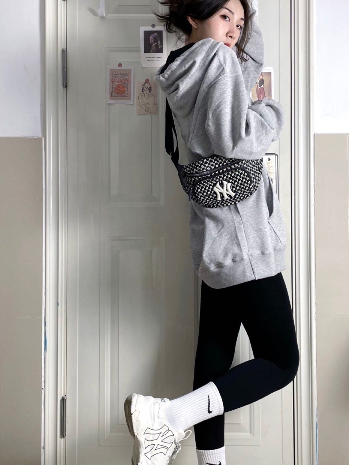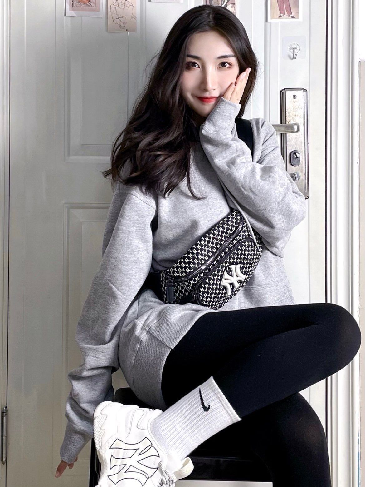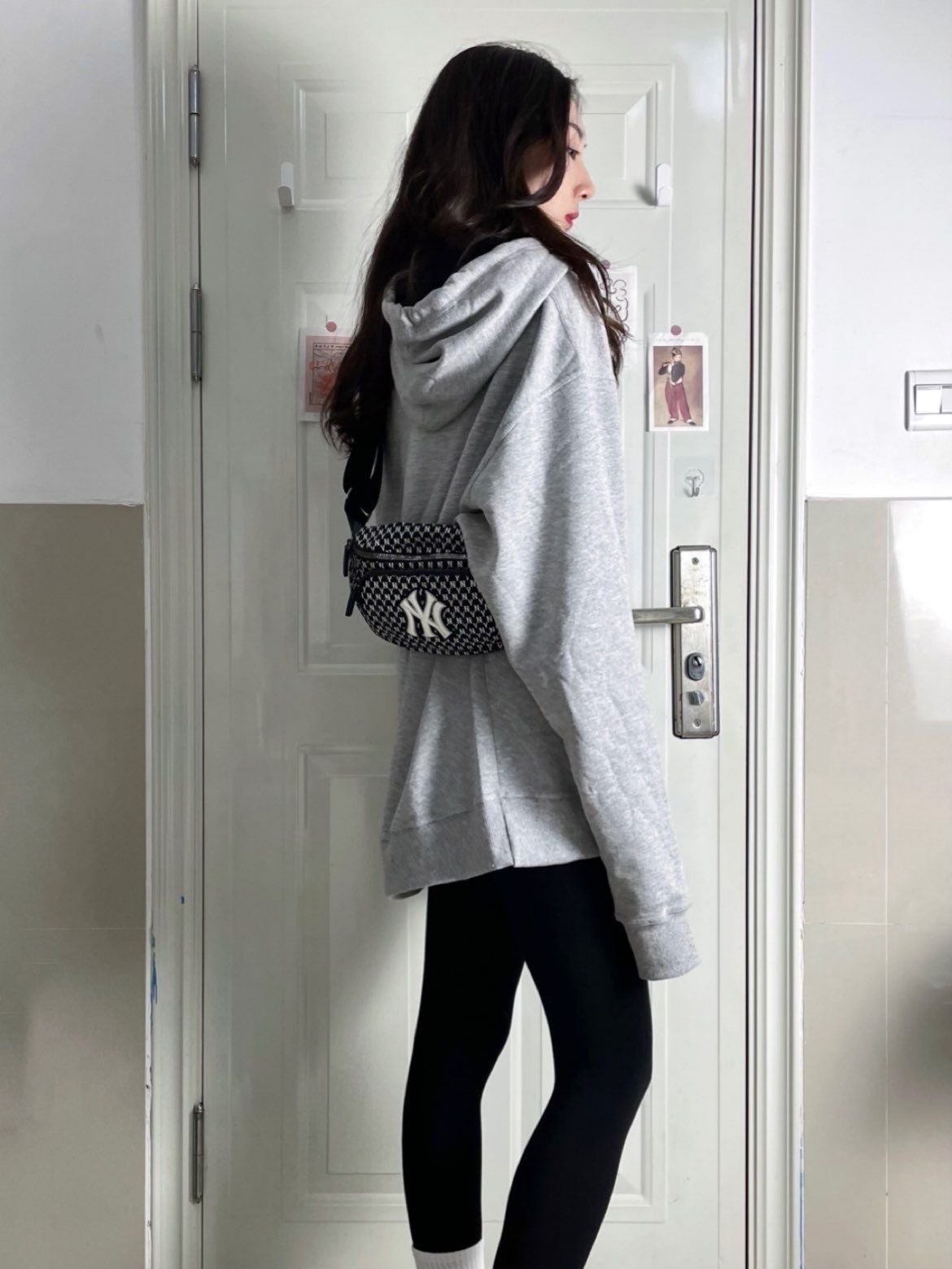 ✨上衣:灰色卫衣 ✨下装:黑色打底裤 ✨好喜欢黑白灰搭配的感觉,宽松的卫衣休闲又显瘦,遮住pp的卫衣直接搭配打底裤就好了。 ✨胸口浅灰色绣线缝线标低调做人😂 logo袖口蓝红白标醒目一些 随便穿穿就会很帅气 ✨身高164厘米体重52公斤 买L码了 确实是偏大一个Size 如果我买M号它也是宽松的 (图片来自博主:Hututu1)