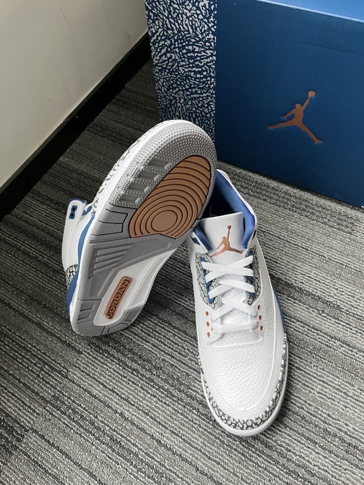 本篇笔记关联了Air Jordan 3 运动休闲鞋 潮流复古抓地支撑缓震合成革圆头 奇才/白色/蓝色等商品,为用户提供真实的使用体验和购买参考。