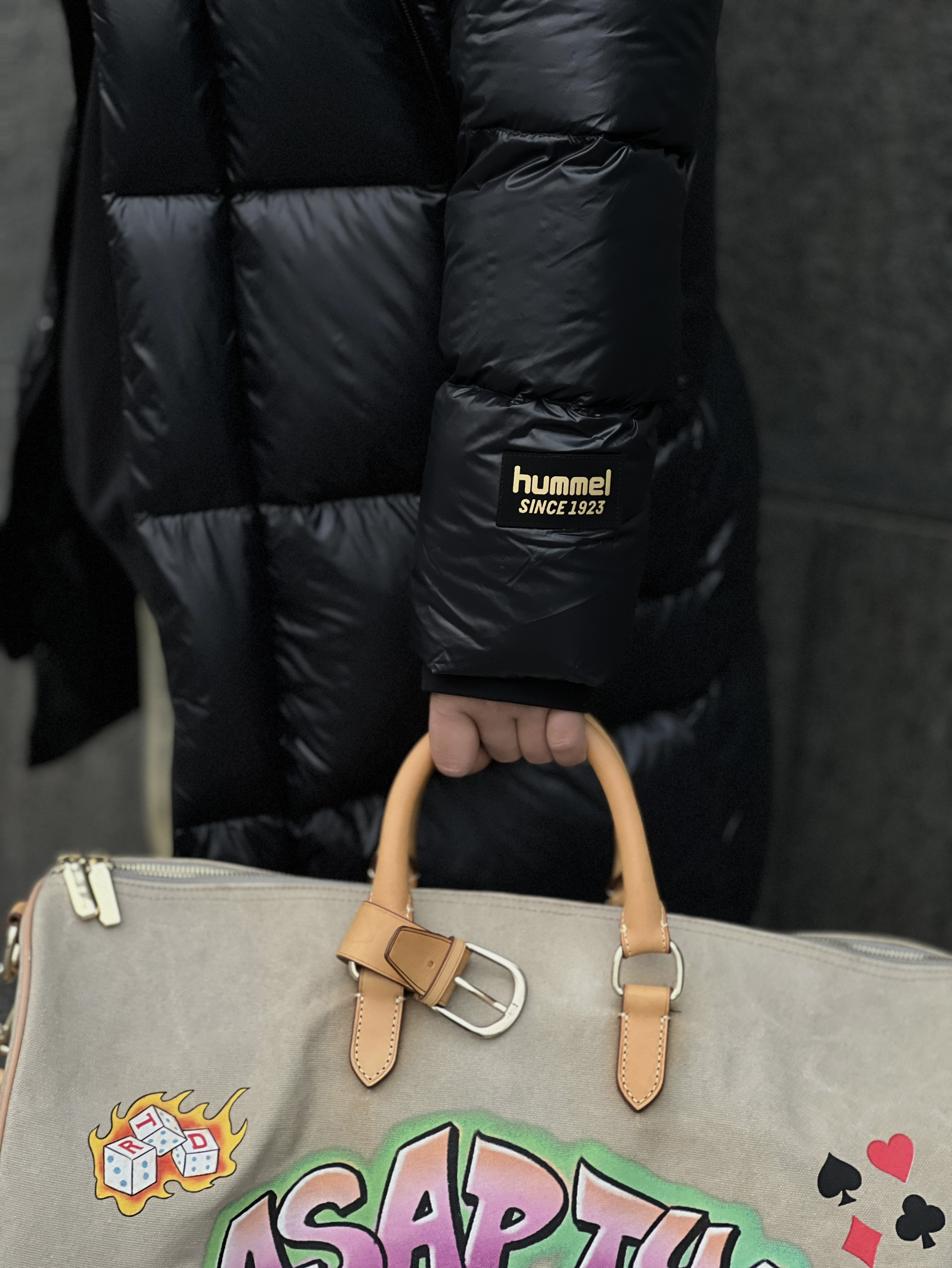 Hi、这里是有点懒的薯条🍟~ ☑️降温的冬季想必也只有羽绒服能够保护自己吧! 暖冬搭配,这次的高级感黑金真的赢了! 🔘这款简约长款hummel黑金配色的羽绒服在细节上真的超赞的!超轻薄的整体效果,穿搭起来不会很厚重👍,防水面料柔软性十足!加上可以背带的设计,室内温度高不用考虑该怎么存放,直接一键当背包🎒就行了! 黑色打底搭配水洗牛仔裤👖 该有的街头hood一点都不...