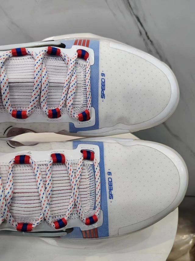 大白兔奶糖配色目前市售的闪击9应该一共有五个版本作为唯一的一双高帮版本颜值真的有一说一不错鞋面前侧材质没变 锁定系统改为袜套设计穿的时候确实有点困难高脚背需要试穿中底方面全面升级后的全掌霾结合 扦插TPu 脚感虽说不澎湃但是比闪击9低帮要好一些 大底为水晶底耐磨防滑稍会逊色橡胶底版本后跟方面还有兔毛的材质细节点缀