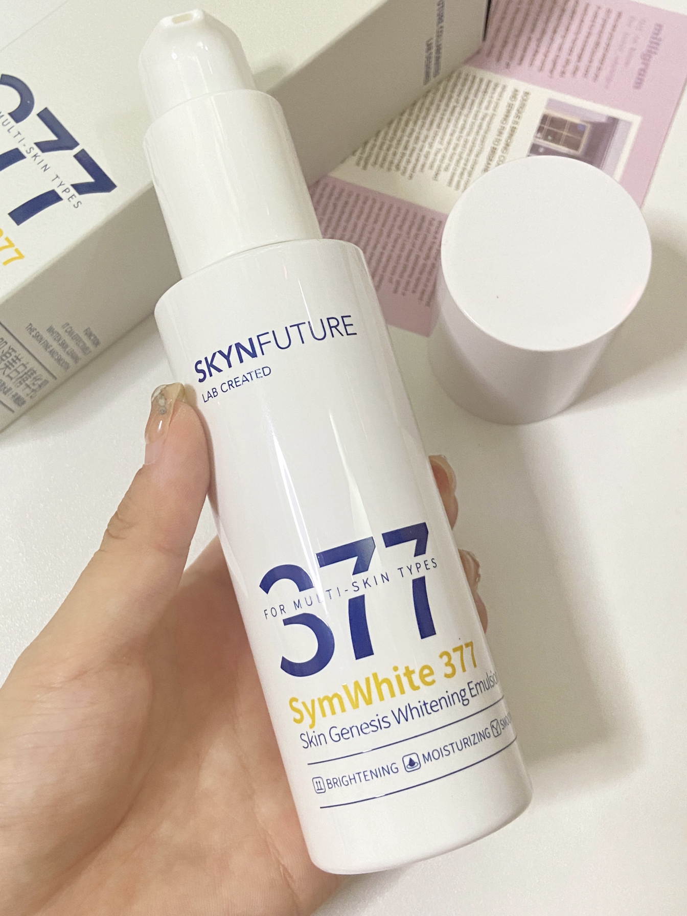 本篇笔记关联了Skynfuture/肌肤未来 377精华乳 淡斑提亮 【一代】100ml、【小样】肌肤未来 肌源美白精华乳 淡化斑点减少暗沉 20ml等商品,为用户提供真实的使用体验和购买参考。