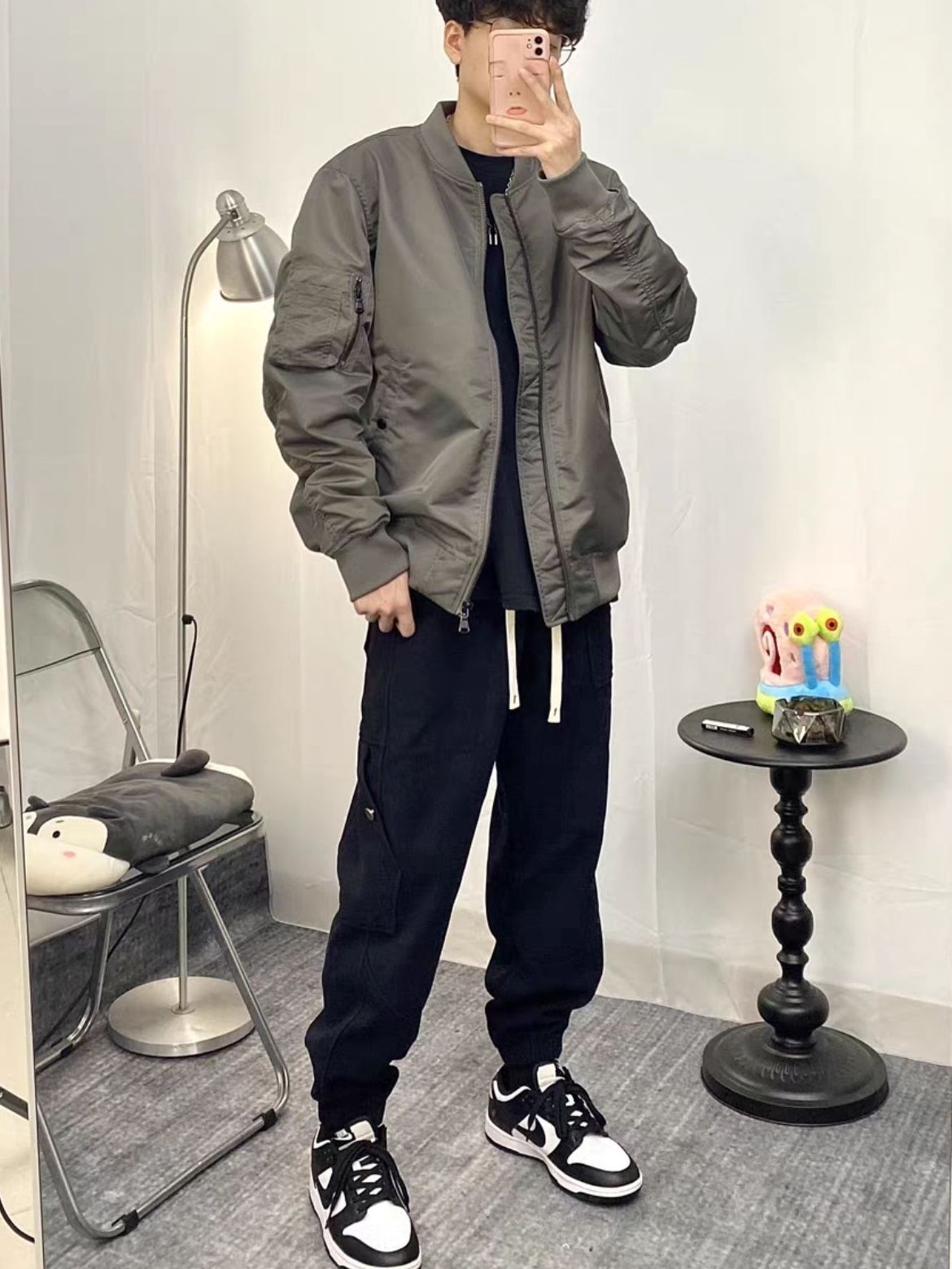 今年真的很流行这种机车夹克呀!加了复古刺绣的元素! 搭配工装裤和NIKE板鞋!上身一样的黑色内搭调色 美式复古风拿捏!穿上谁分得清你和一米八大帅哥啊 晒晒酷飒男孩宝藏外套--美式复古棒球服 南方这几天穿刚刚好 图源网络侵删
