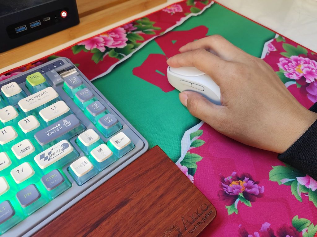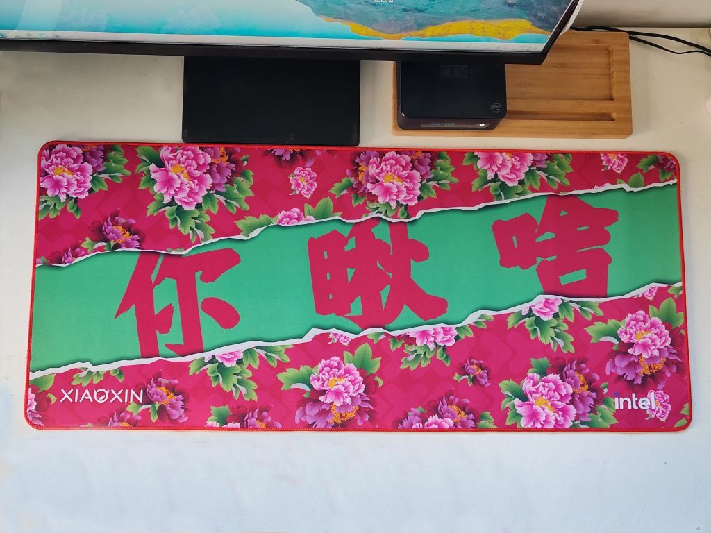 要说整活还得是联想小新,前几天收到了联想小新发过来的鼠标和鼠标垫,一股东北大碴子的味道。 鼠标完全是东北大花袄的风格,鼠标还算中规中矩,手感也很舒适,灵敏度还挺高,日常拿来办公也足够了。 两者放在一起似乎有点不协调,但也不影响使用。