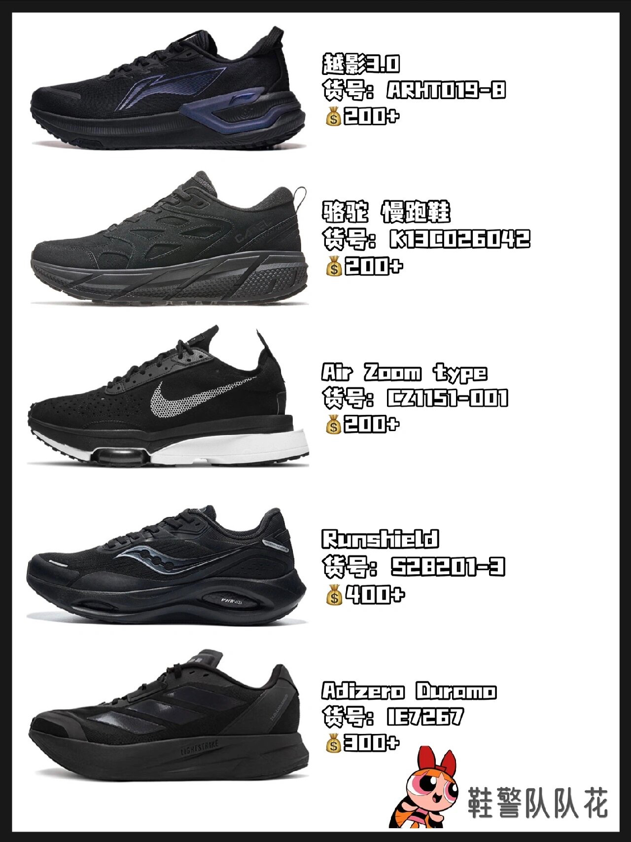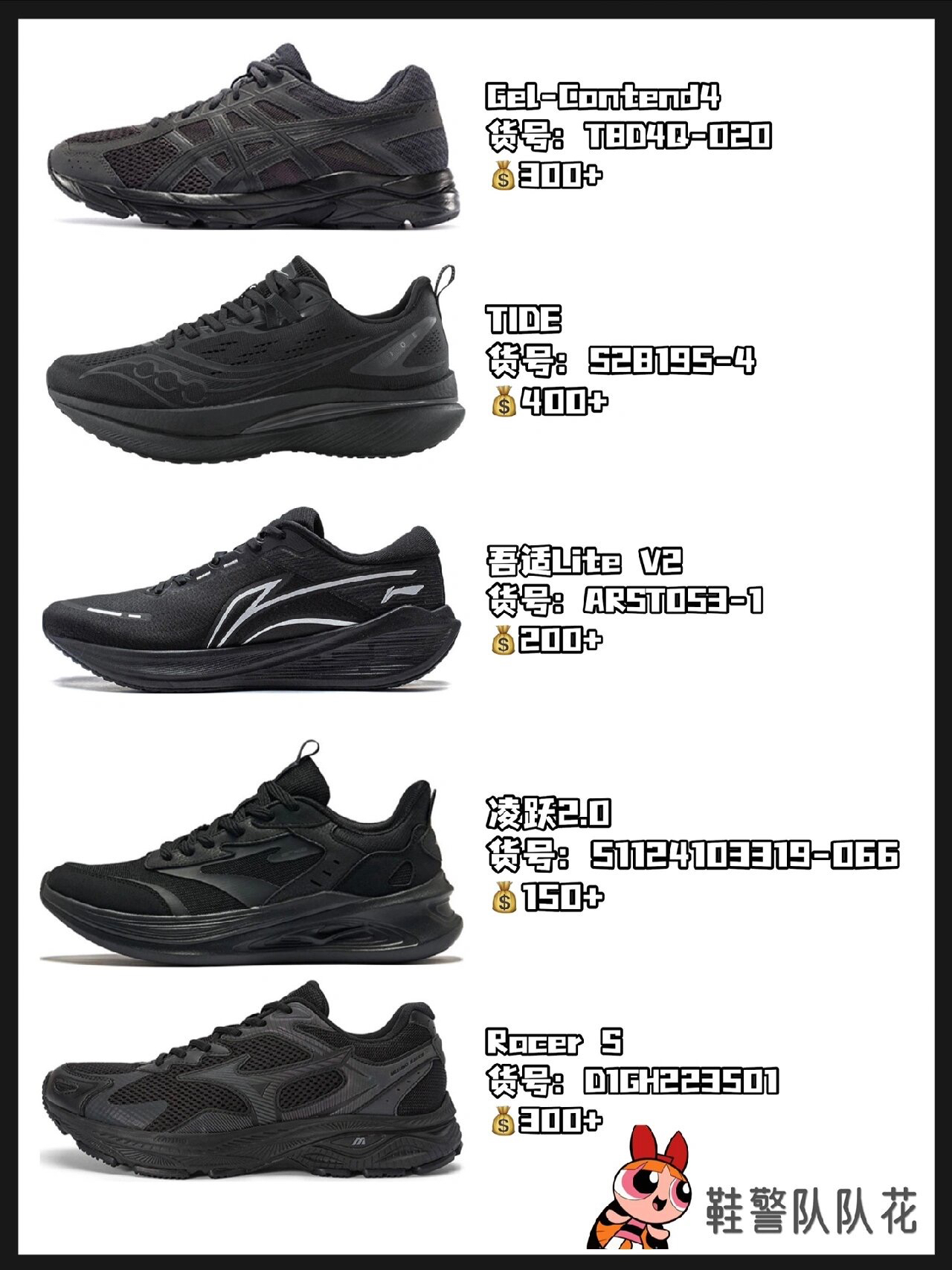 黑色给人的感觉是高贵,沉默,寂静,高深莫测,象征着稳定,严肃,冷酷; 潮流的人说黑色代表神秘,前卫的人说黑色代表酷,成熟的人说黑色代表庄重; 这一波有25双各品牌跑鞋,价格都在500内。颜值、性价比、功能性兼备。 我喜欢美津浓,你喜欢哪一双呢? 图源自博主@鞋警队队花 侵权删