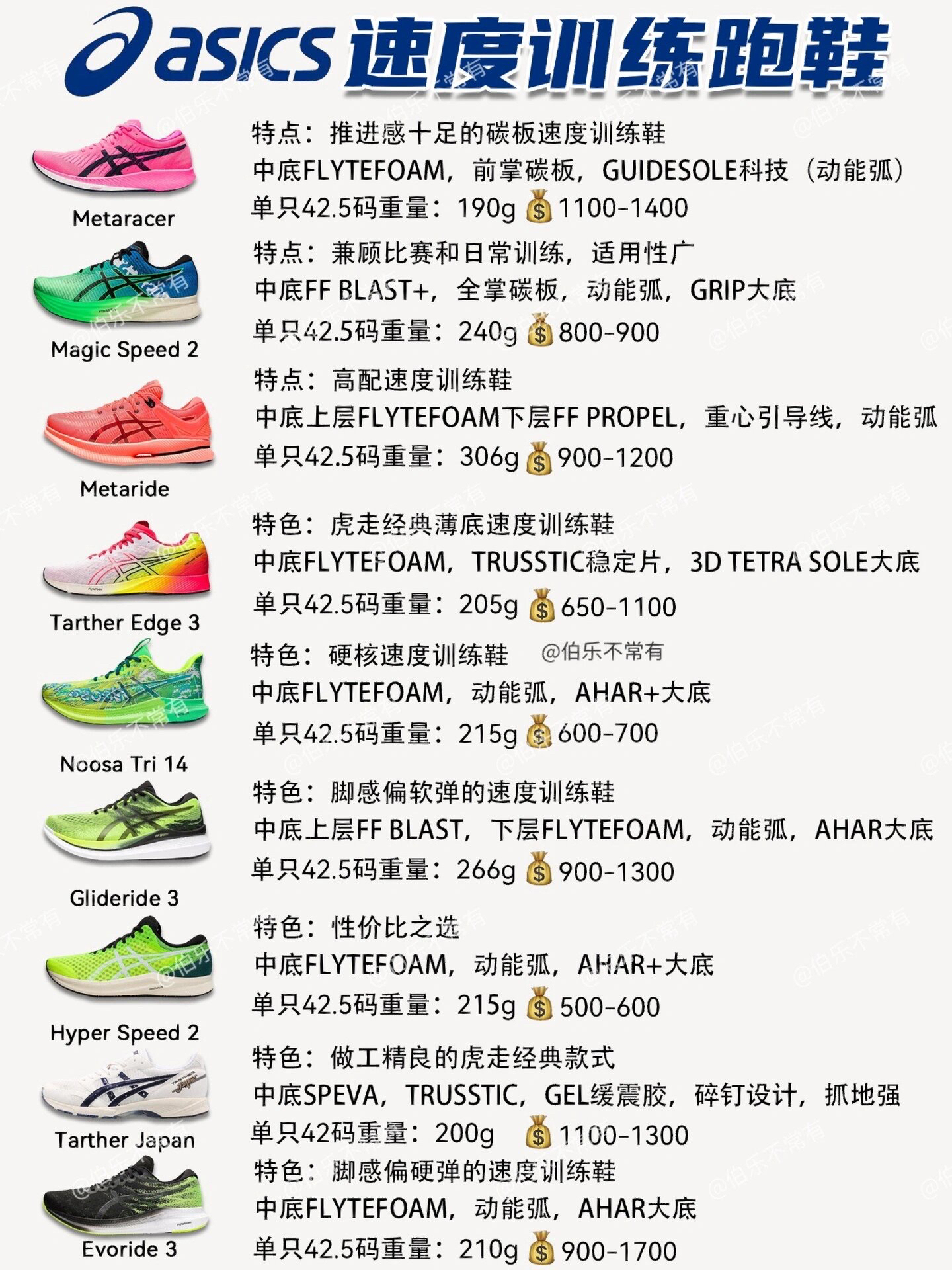 亚瑟士作为“四大跑鞋品牌”之一 日常运动中真 的少不了它! ! 除了专业的运动性能外,性价比也超高 而且每一款鞋都能够在日常中很好的搭配! ! 根据使用场景,将其跑鞋划分为6大类 宝子们快冲! ! 1⃣️竞速比赛 Metaspeed edge+ Metaspeed Sky+ Sortie magic rp6 tarther RP3 2⃣️速度训练 Metaracer Magic Spee...