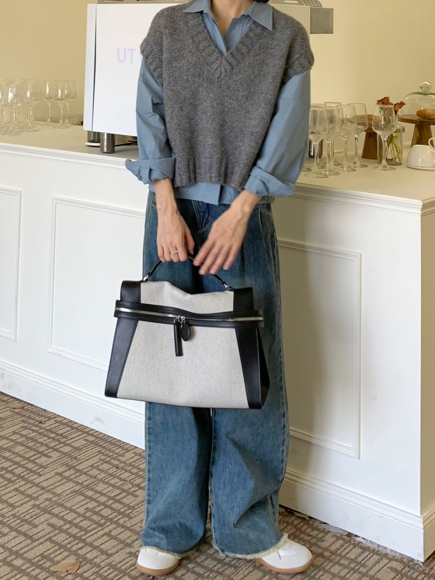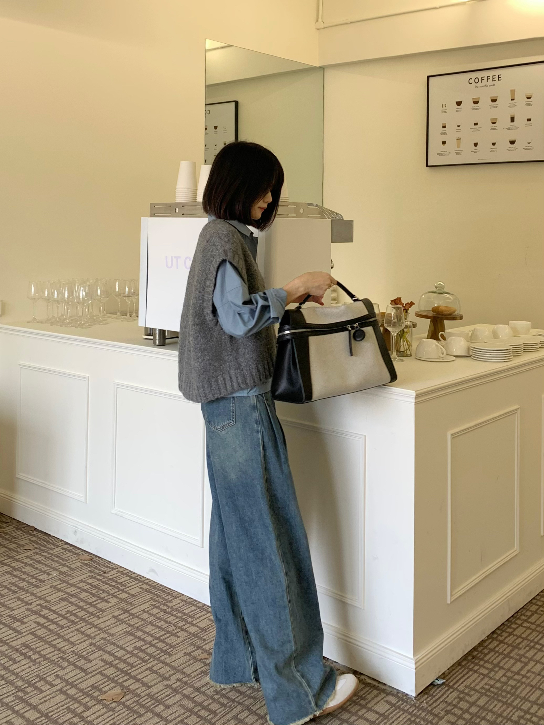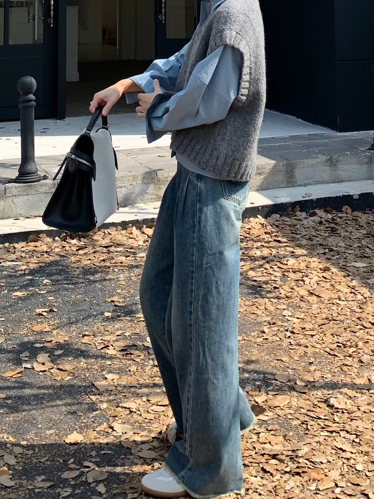 灰色马甲搭配蓝色衬衫真的好好看啊 身高|体重:168/92 穿搭风格:韩系穿搭