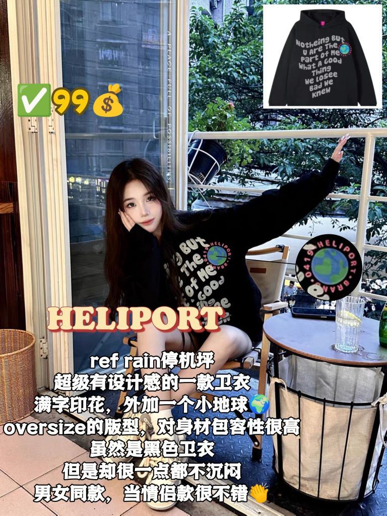 秋冬季节真的是囤卫衣的季节啦! 我找到几款百元里的平价卫衣 而且质量和颜值都很过关 学生党、小情侣买来穿完全ok👌 1⃣HELIPORT ref rain停机场 超有设计感的一款卫衣 满字印花外加一个小地球🌍 oversize版型,对身材的包容性很高 虽然是黑色,但一点不沉闷 2⃣INSstudios 小Logo三条杠条纹加绒卫衣 奶黄色设计 400g摇粒绒面料,手感舒适,面料柔软 上手很有重...