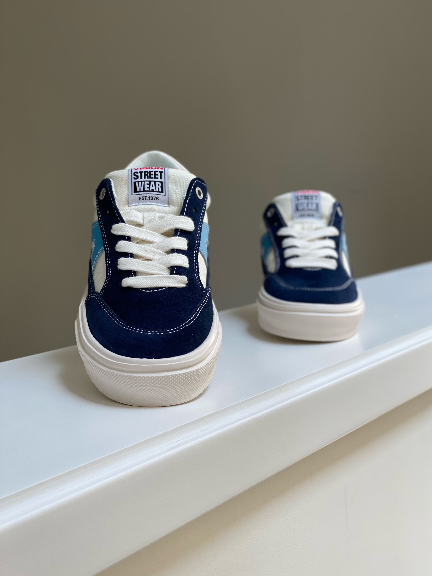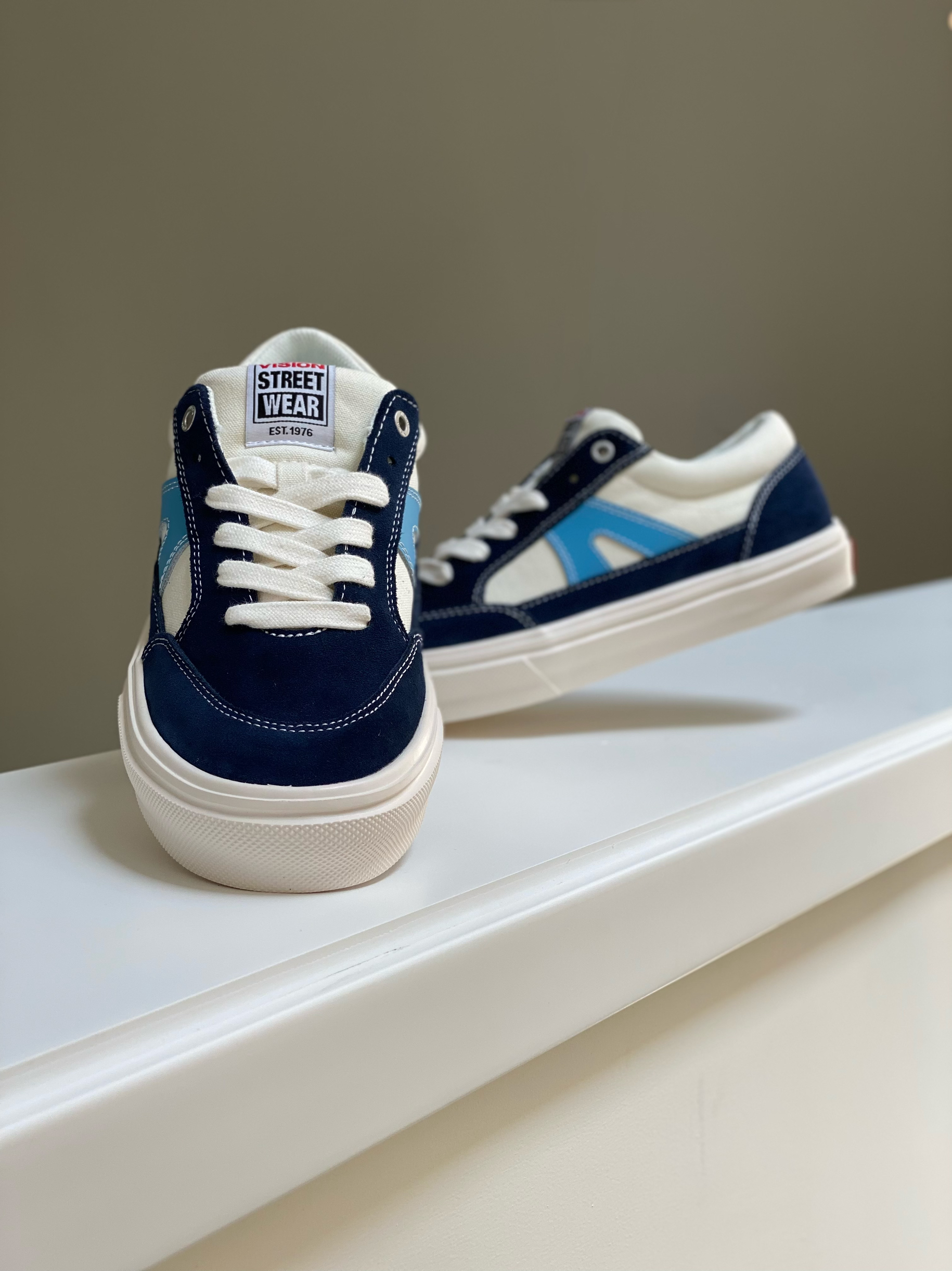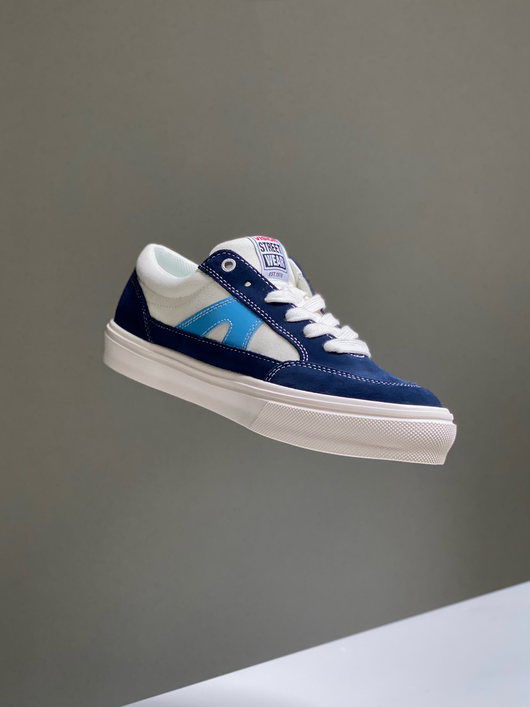 整双VISION STREET WEAR STICK, 采用 卡其色反毛皮与军用帆布打造。搭配白色皮 质”倒v“侧标点缀。质感颜色都做了提升。松 紧带固定的鞋舌使得穿着时不易跑偏,包裏感 更佳! Ortholite材质的中底鞋垫增加了鞋子整体穿着的柔软性和舒适性。融入品牌识别性的“v”字硫化橡胶大底纹路及六角纹路和三角波浪纹路设计特殊纹路的橡胶材质耐磨性。 STICK鞋款的鞋盒也是相当有趣,通过以...