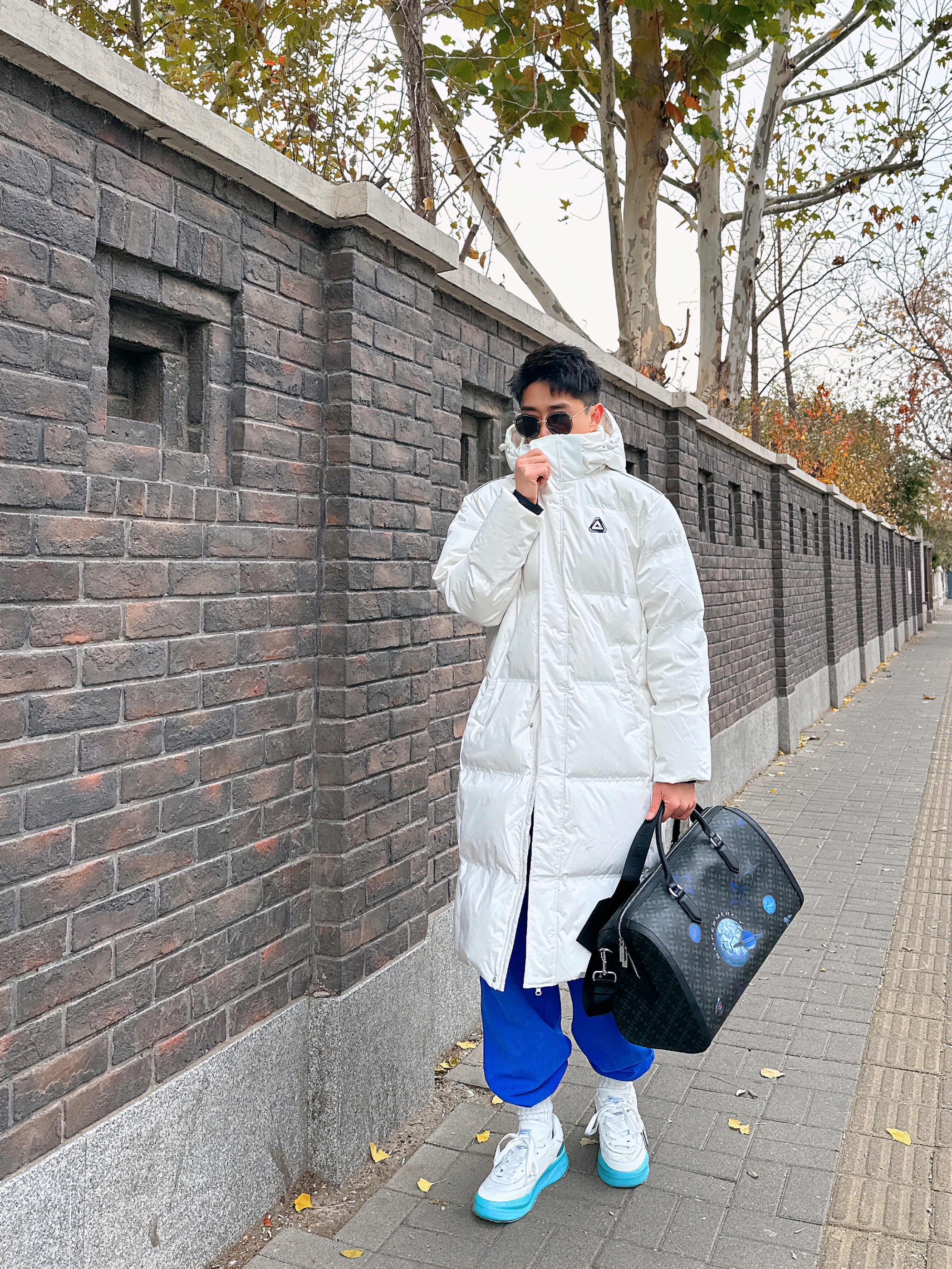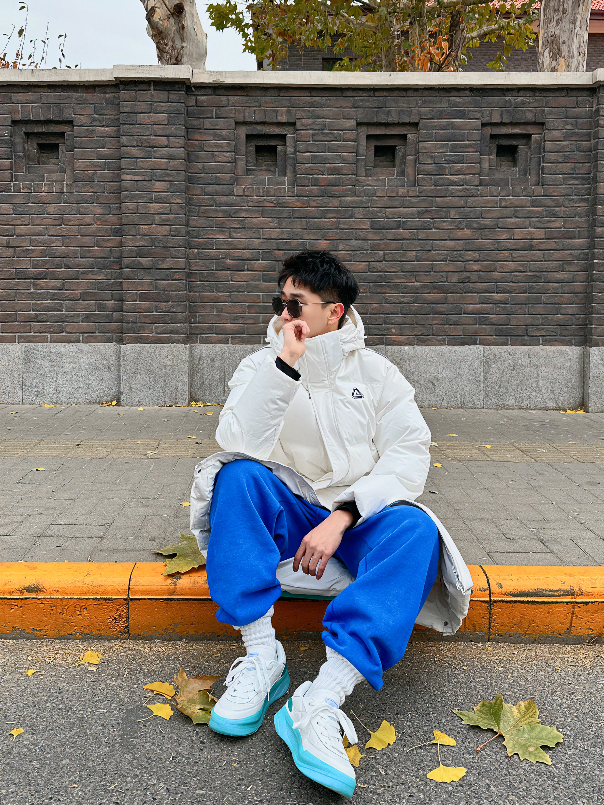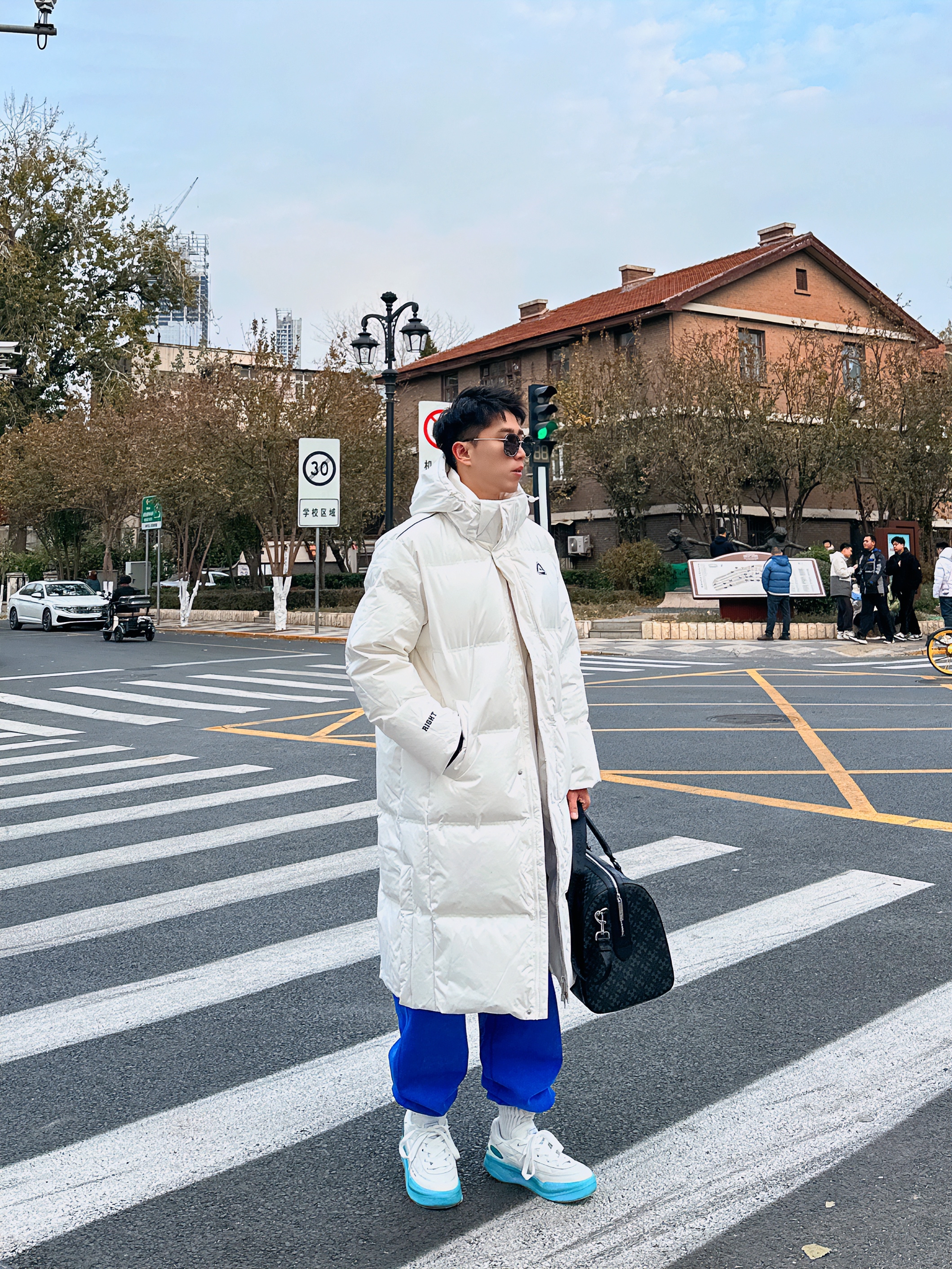 都说大地色系适合秋冬🍂蓝白色的雪系也不差 白色长款羽绒服➕宝石蓝卫裤 浑然天成的冬季运动风 少年感十足 鞋子是今天搭配的点睛之笔 ✔️ 白色鞋面➕极光蓝鞋底 梦幻又漂亮 ✨ 内里柔软 羽绒充填 不光中看还中用 不要总是深色系美拉德啦 偶尔也要亮眼一些 毕竟年轻就要多姿多彩嘛 🌟 — 🥼:匹克 👖:Stussy 👟:LOXKI 💼:SUPERMERCY