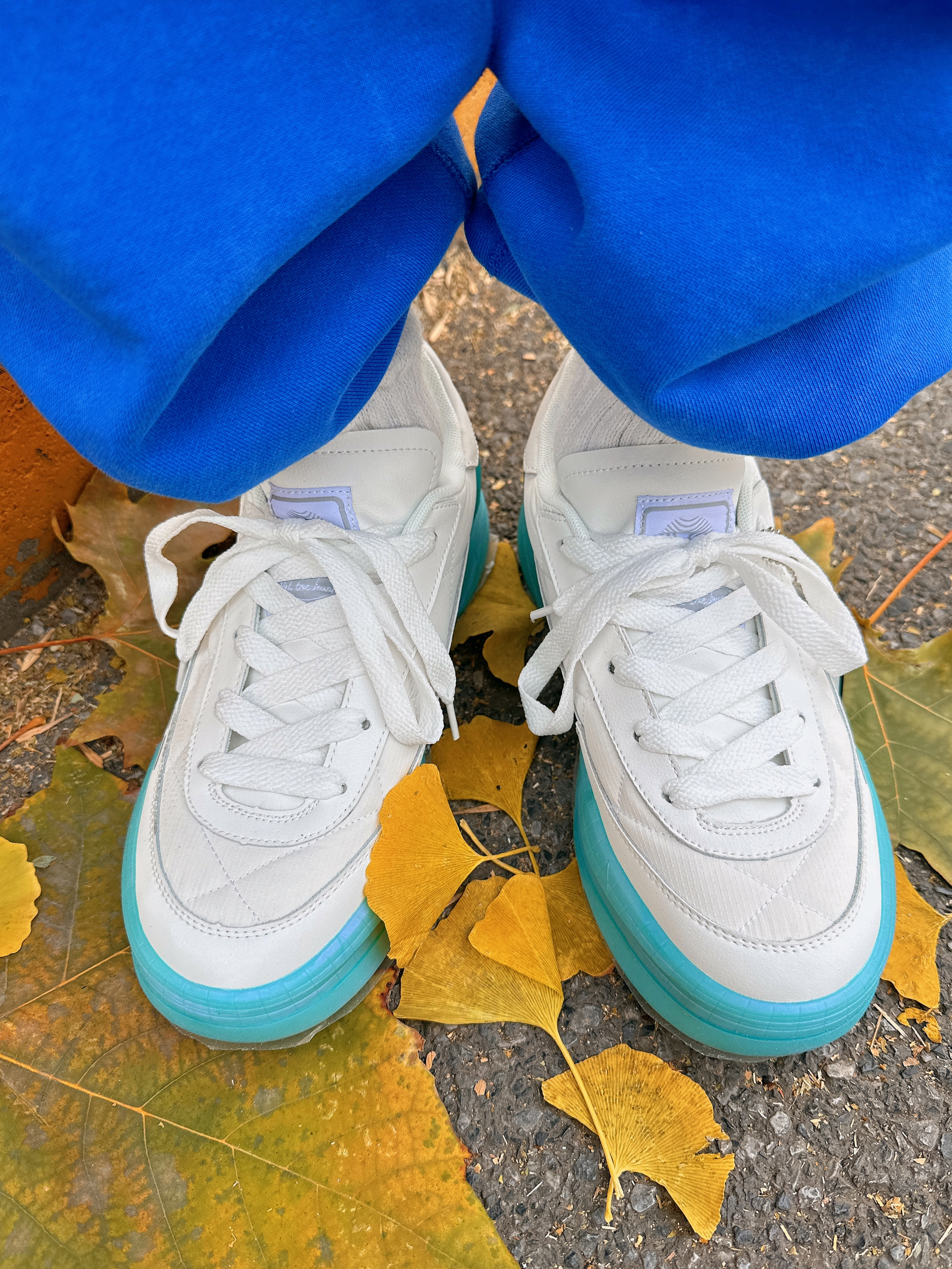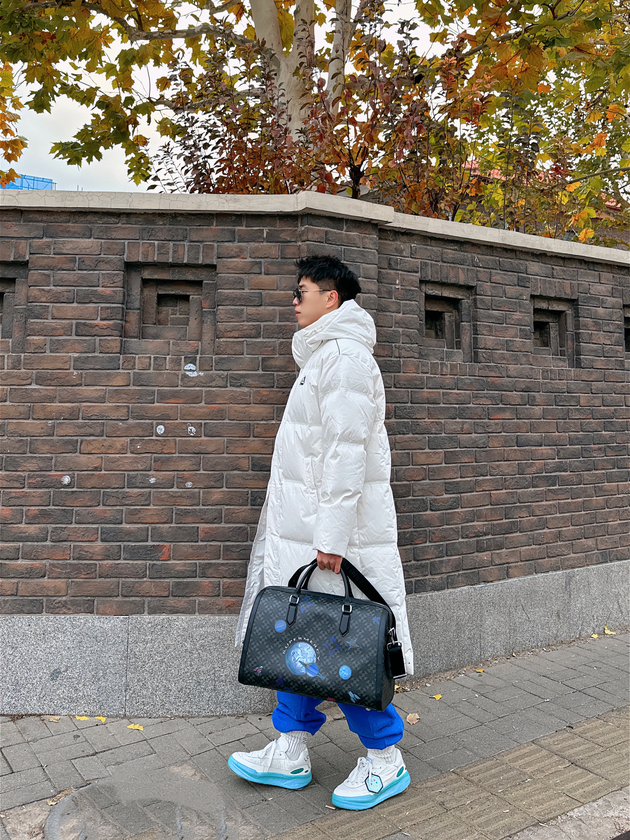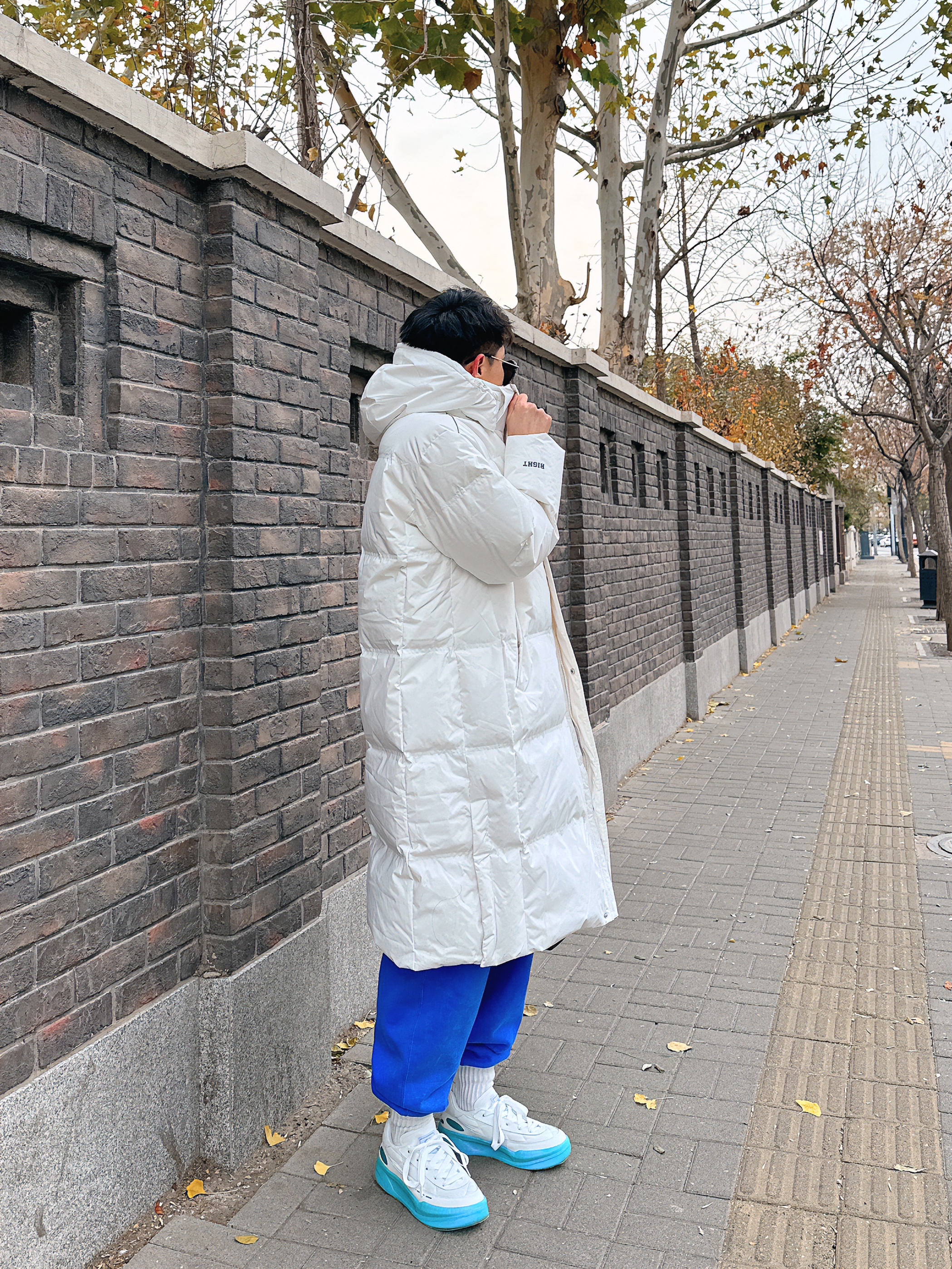 都说大地色系适合秋冬🍂蓝白色的雪系也不差 白色长款羽绒服➕宝石蓝卫裤 浑然天成的冬季运动风 少年感十足 鞋子是今天搭配的点睛之笔 ✔️ 白色鞋面➕极光蓝鞋底 梦幻又漂亮 ✨ 内里柔软 羽绒充填 不光中看还中用 不要总是深色系美拉德啦 偶尔也要亮眼一些 毕竟年轻就要多姿多彩嘛 🌟 — 🥼:匹克 👖:Stussy 👟:LOXKI 💼:SUPERMERCY