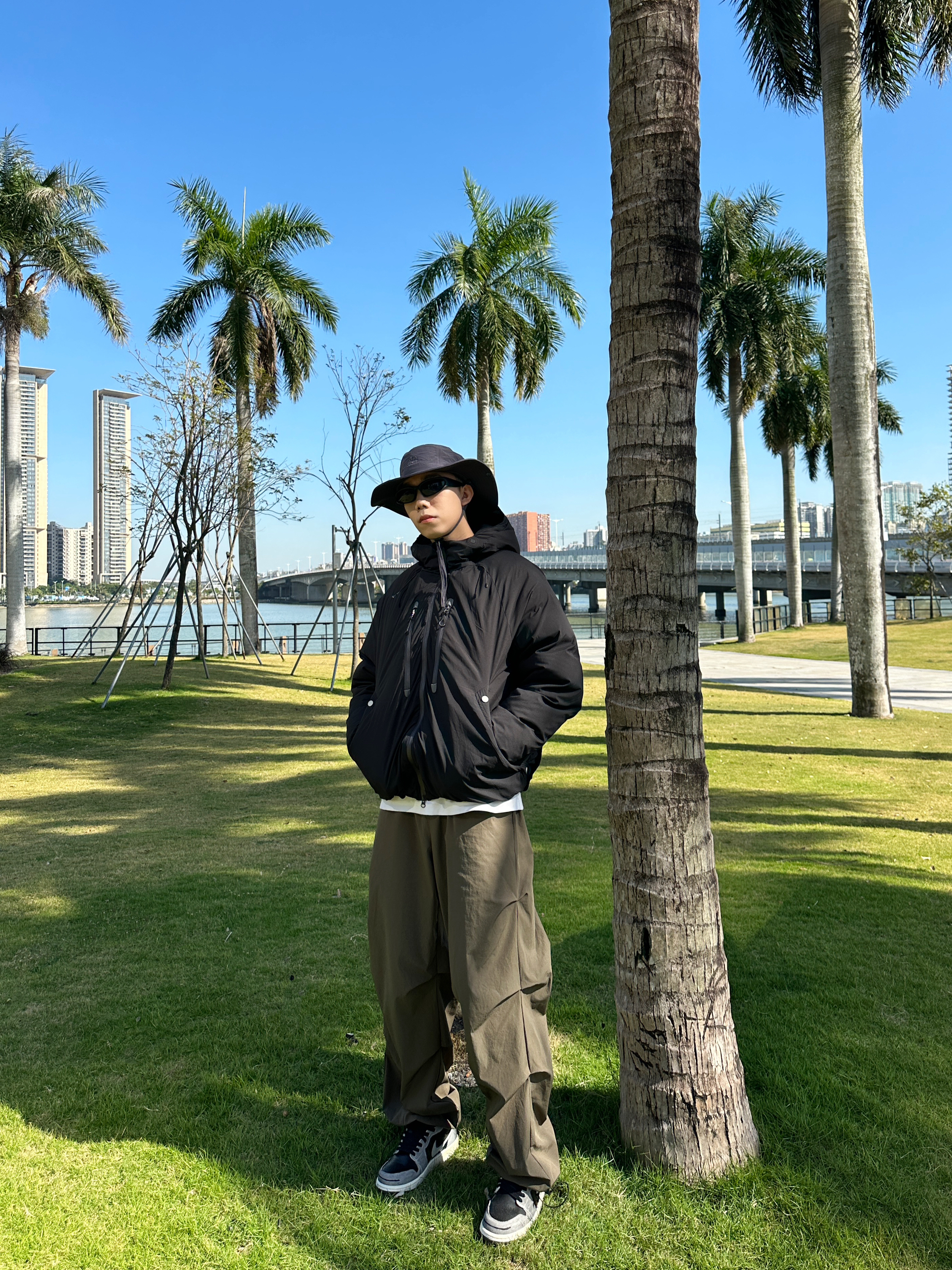 - 好久没出门晒太阳了喂! 今天难得出门,好好穿一下~ 黑色解构棉服外套➕棕色伞兵裤👖 渔夫帽➕墨镜➕书包等配饰也安排一下! 出门穿上这双喷墨渐变高街Air Jordan 1 复古配色简约而不失高级感,十分百搭哦😯 那么今日份秋冬户外穿搭就分享到这啦👋