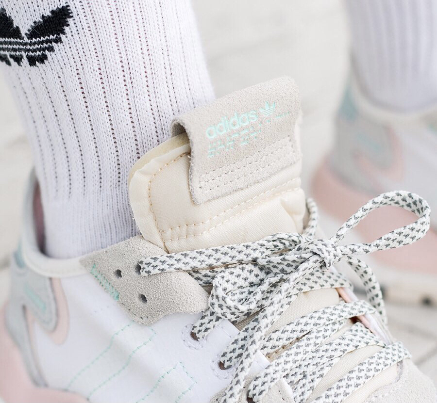 鞋名:Adidas originals Nite Jogger 冰晶粉 外观及细节: 该鞋款是运动了Boost中底科技打造的复古跑步鞋,鞋子面使用了网眼布与皮革材料搭配组合而成,两侧标志性的三道杠是用了蛋黄材料制成,并使用车线勾勒,在灯光照射下反光效果明显,后跟镶嵌有TPU稳定模块,提升鞋款整体的稳定性,中底使用了boost缓震科技,具有十分不错的舒适度,大底选用了多彩色的耐磨橡胶材料,提升...