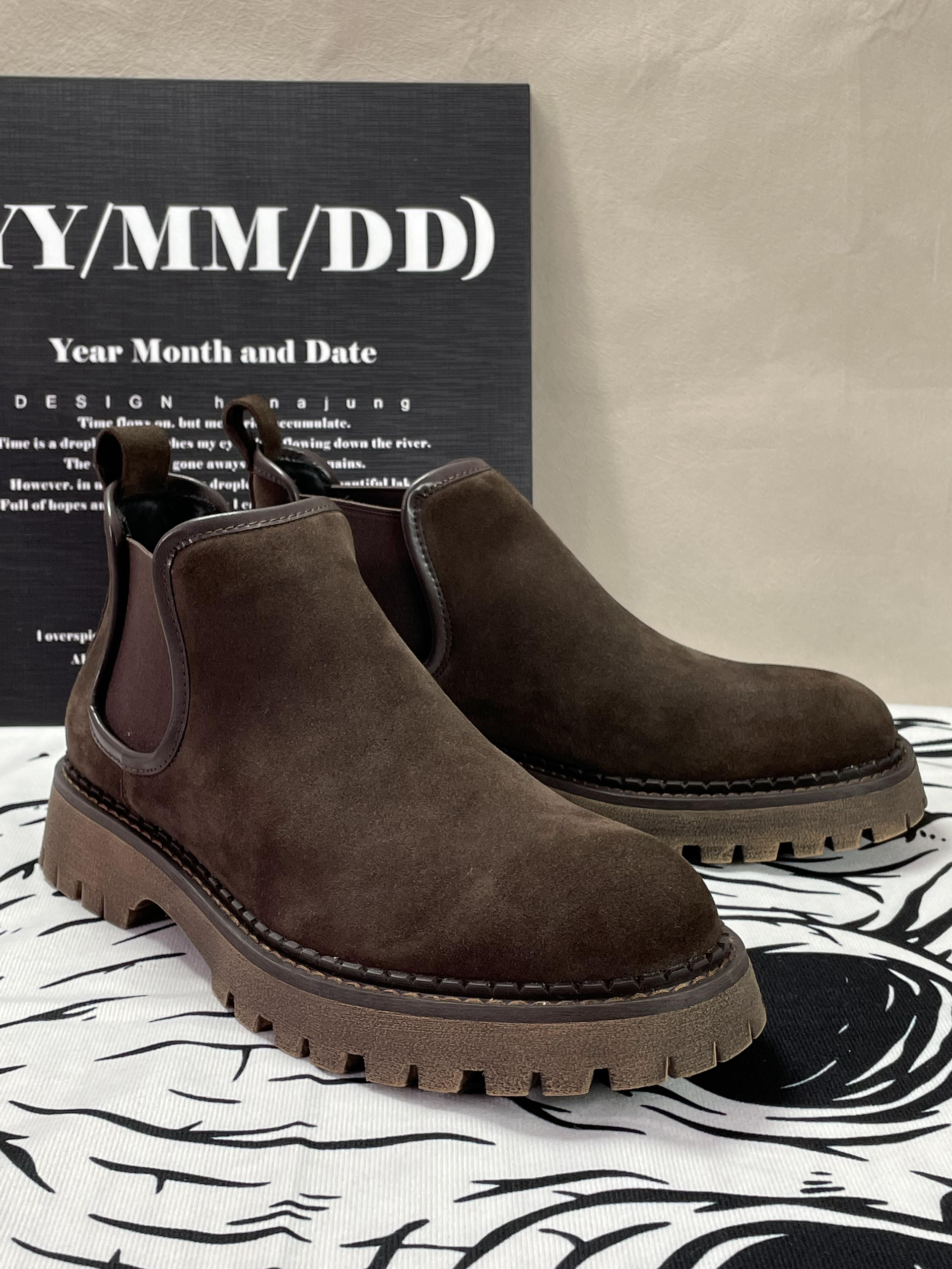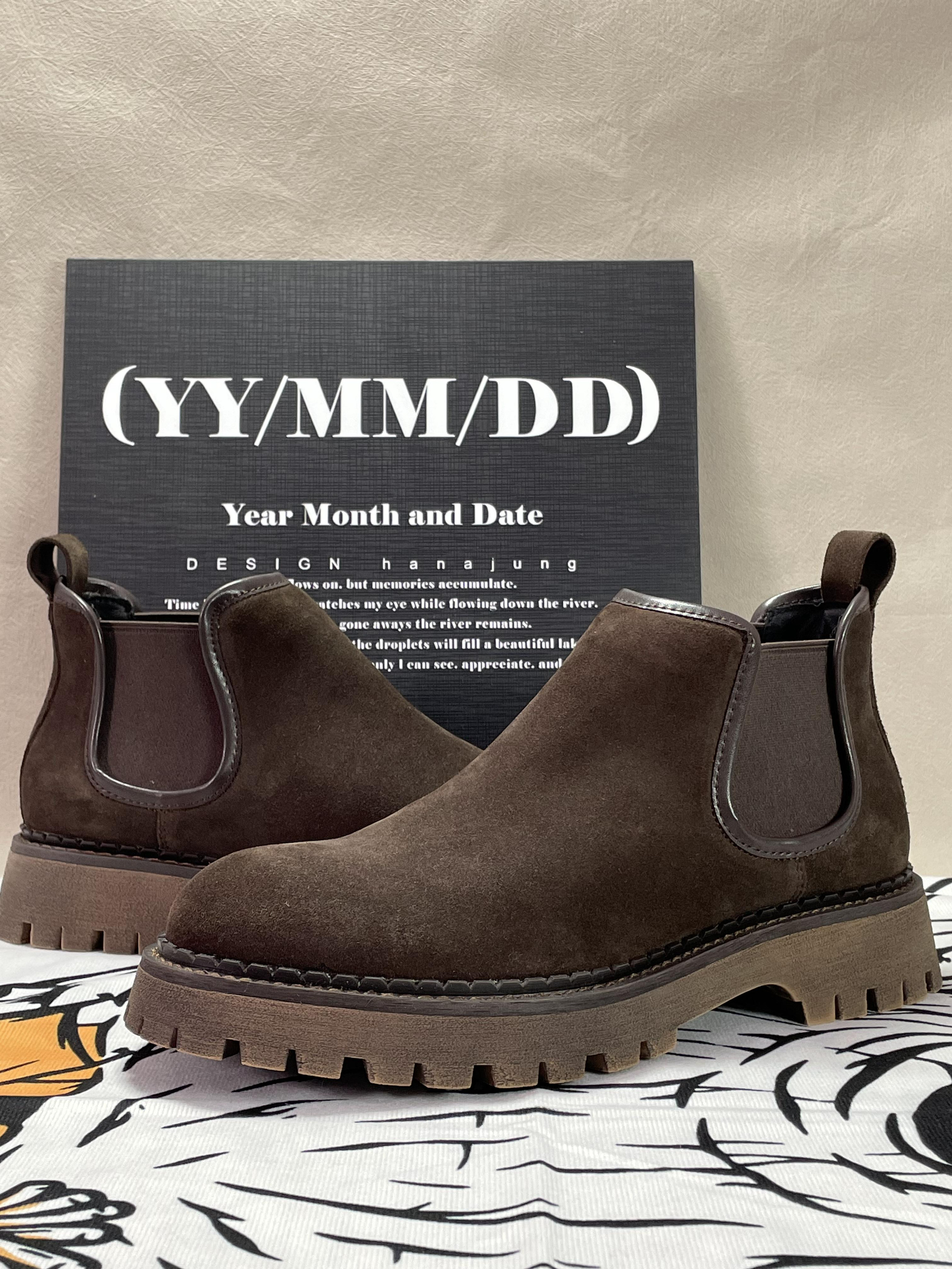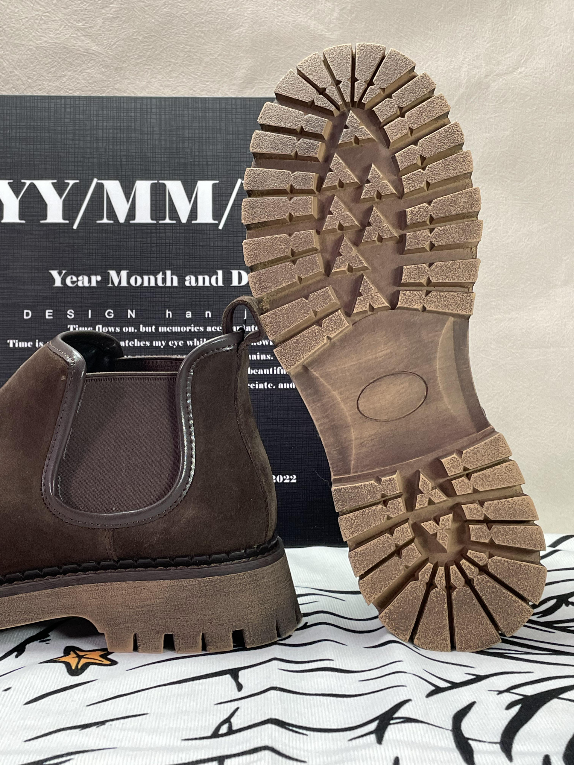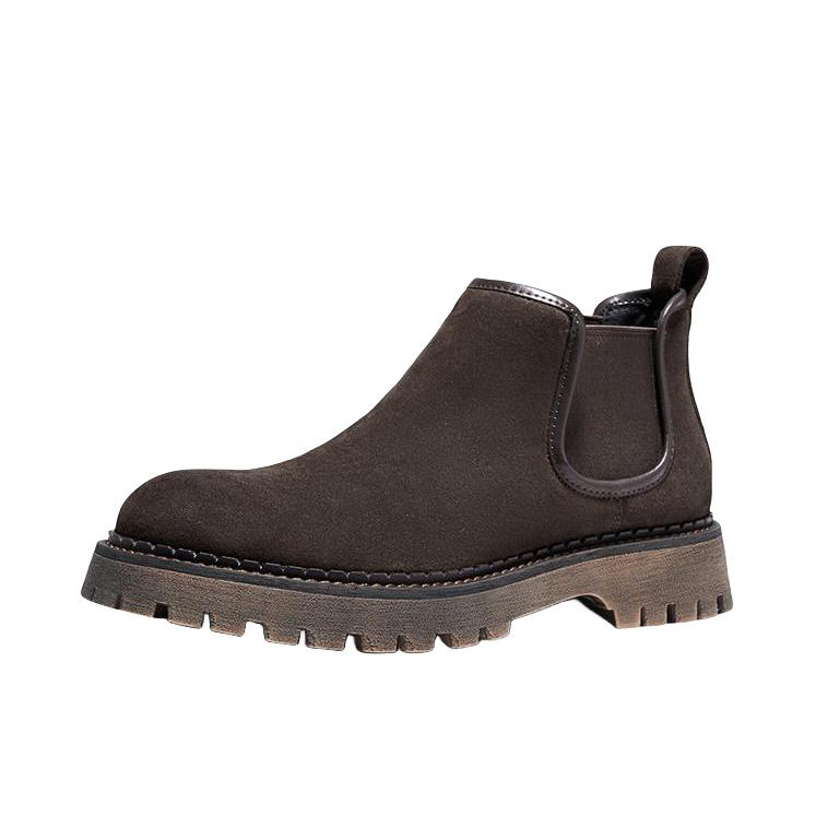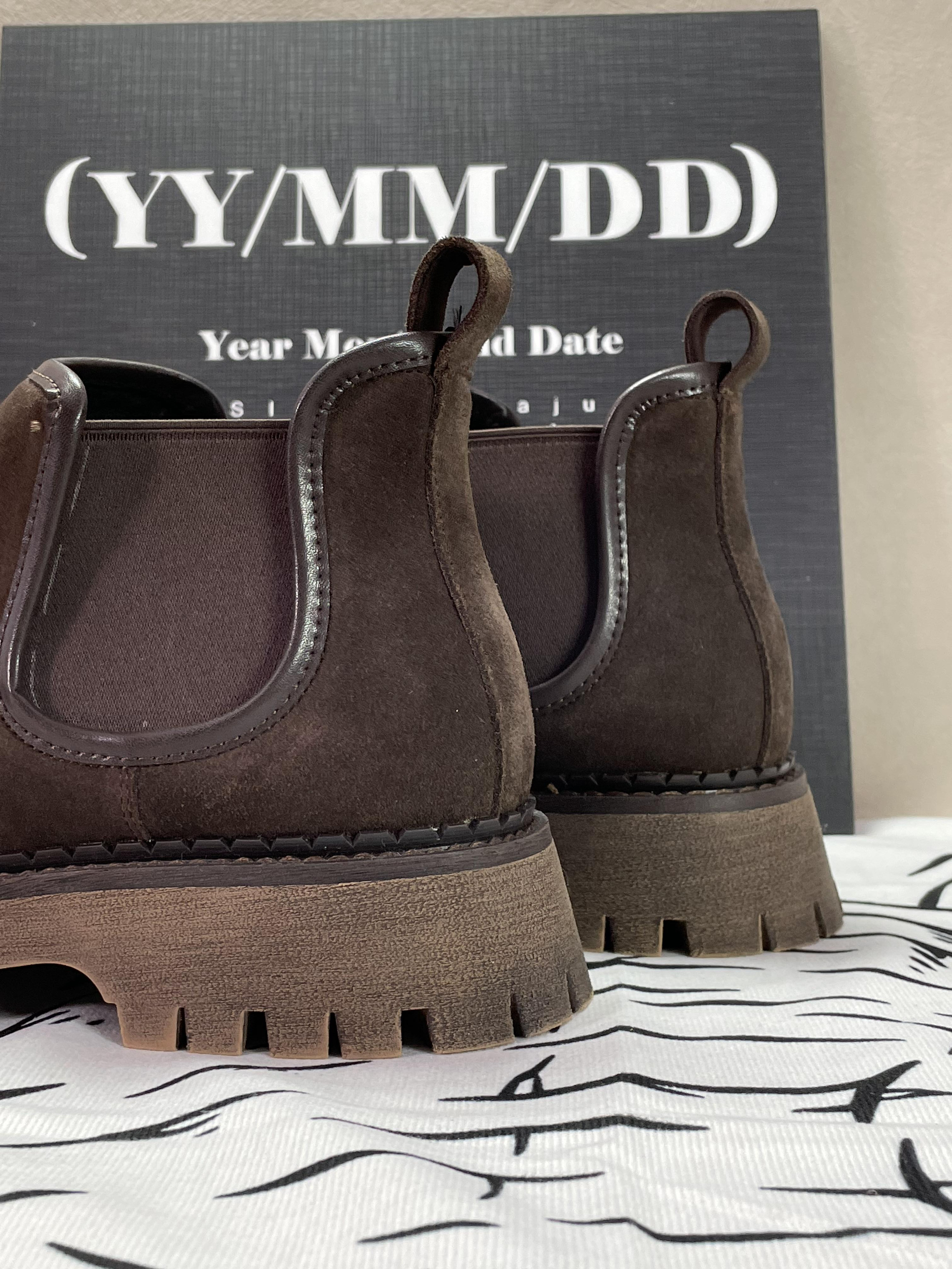 哈喽朋友们大家好呀,又是高冷同学全新一期的好鞋推荐!今天呢给朋友们带来的是一双切尔西马丁靴,这双鞋子应该是型男的标配吧!🤓 整双鞋子的颜值还是可以的,棕色的鞋身,整体看着特别的有质感!说到切尔西,虽然鞋子的设计看着并不复杂,但是越简单的款式,它的用料就越考究!🥰 鞋子采用的是牛反绒面,这个皮面特别的细腻顺滑,触感真的很不错!😌在鞋子的鞋口侧面呢,也有一个松紧的材质,可以让我们更好的穿脱这双鞋子...