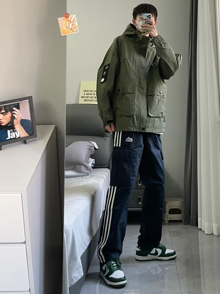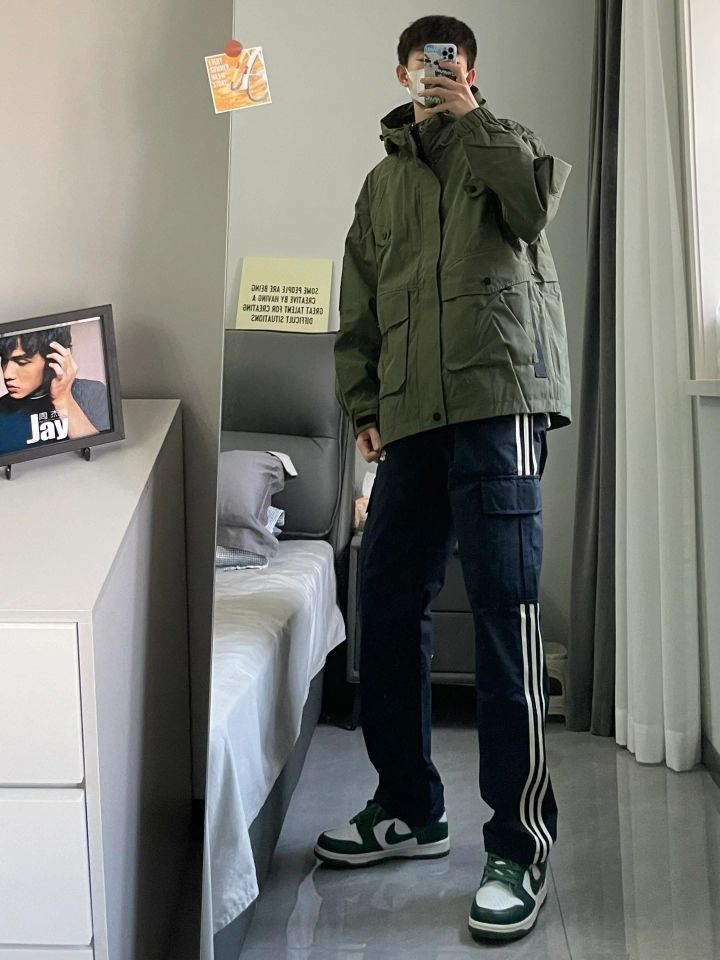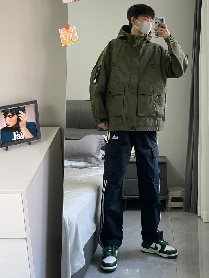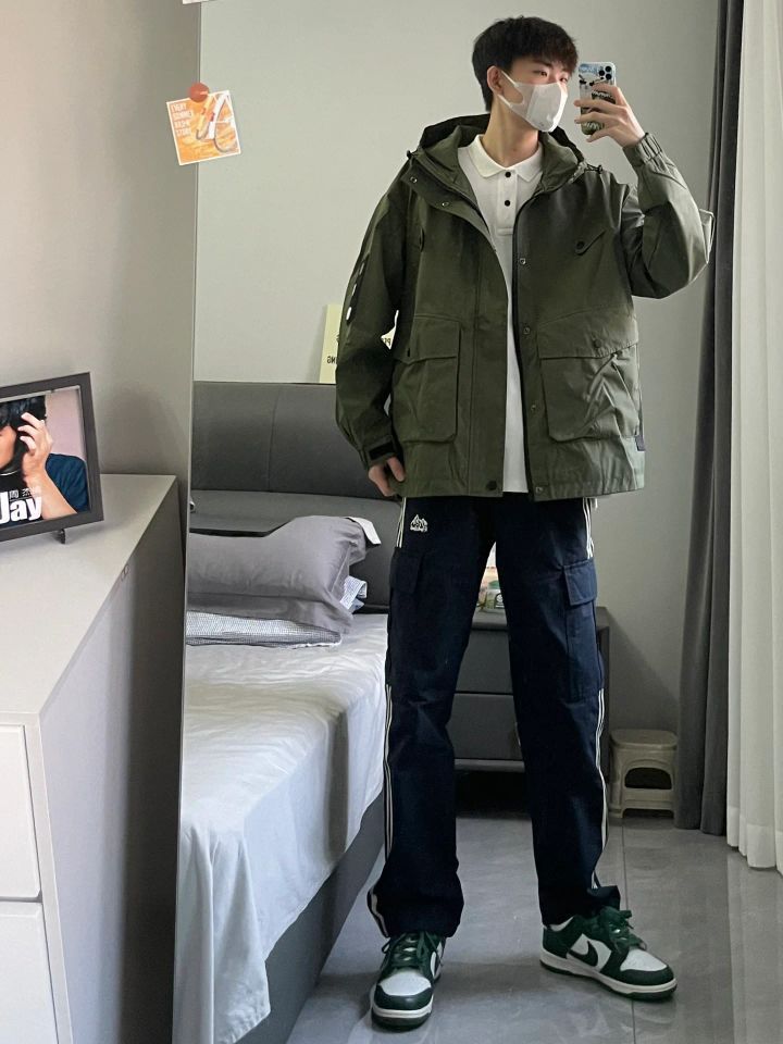 🫒饱和度不高的绿色系,视觉效果耐看 🌊防水冲锋衣搭配直筒裤,lemaire 既视感 🍂穿出秋季穿搭氛围感