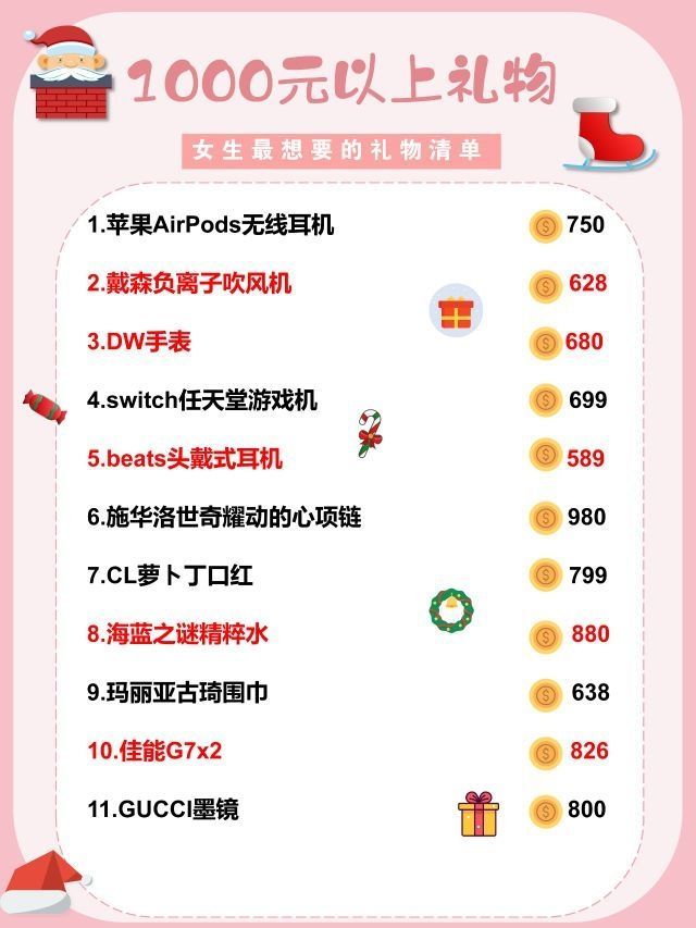 圣诞节要来啦!🎄🔔 大家可以提看一下给女朋友的礼物呀!🎁 还区分好了价格按着这个选不会出错!